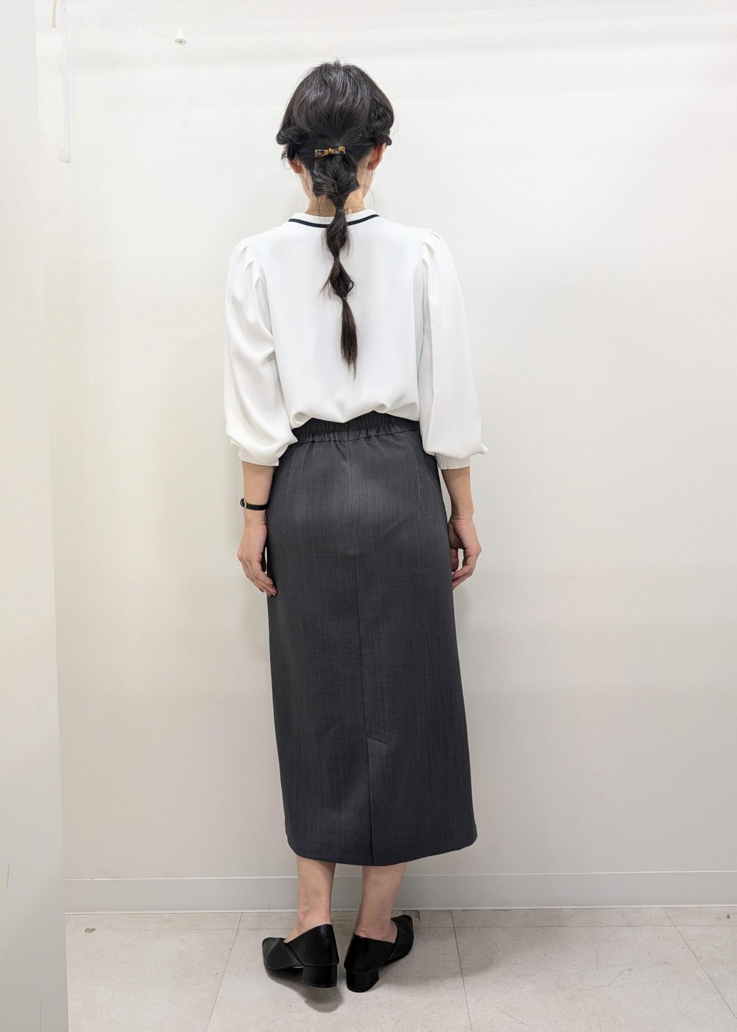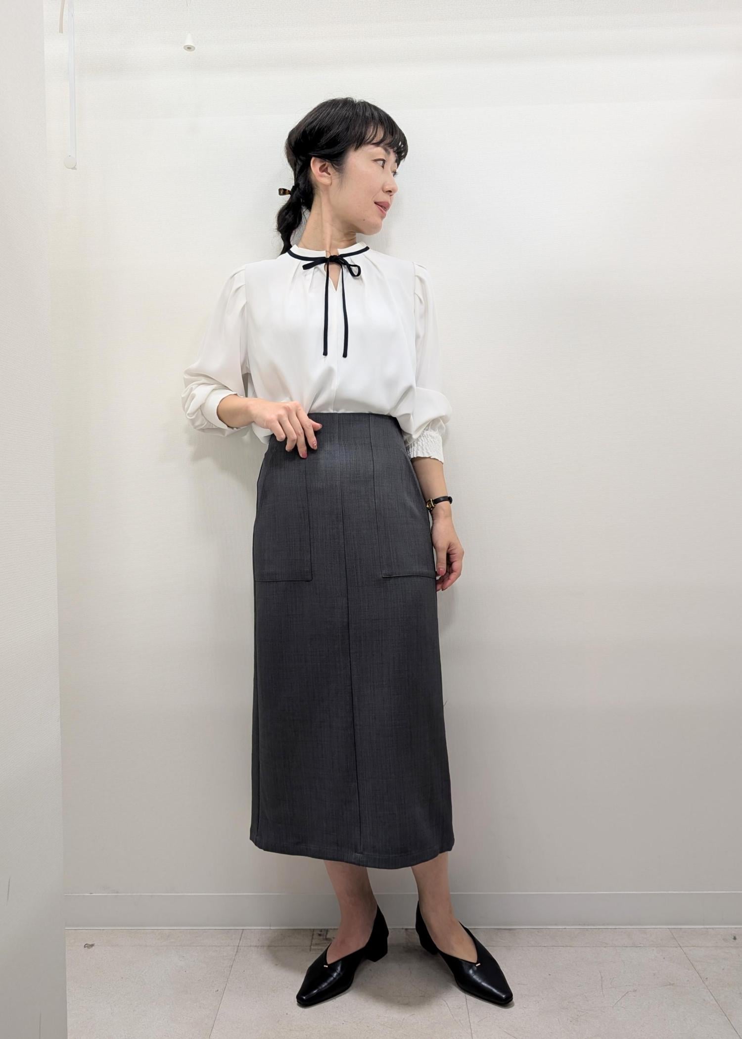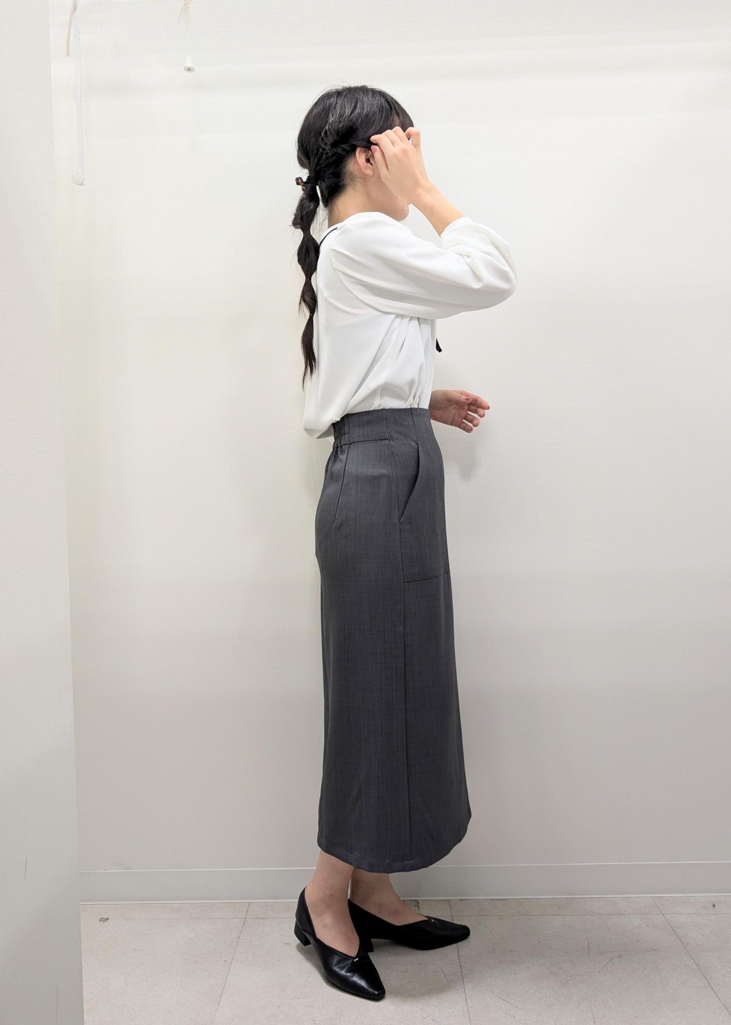 ROPÉ PICNICフロントポケットアイラインスカートチャコール / 38¥3,842レビュー私は骨格ウェーブでウエストに合わせるとヒップがきつくタイトスカートはLサイズを履くことが多いのですが、こちらはMサイズでウエストヒップともにちょうど良かったです!