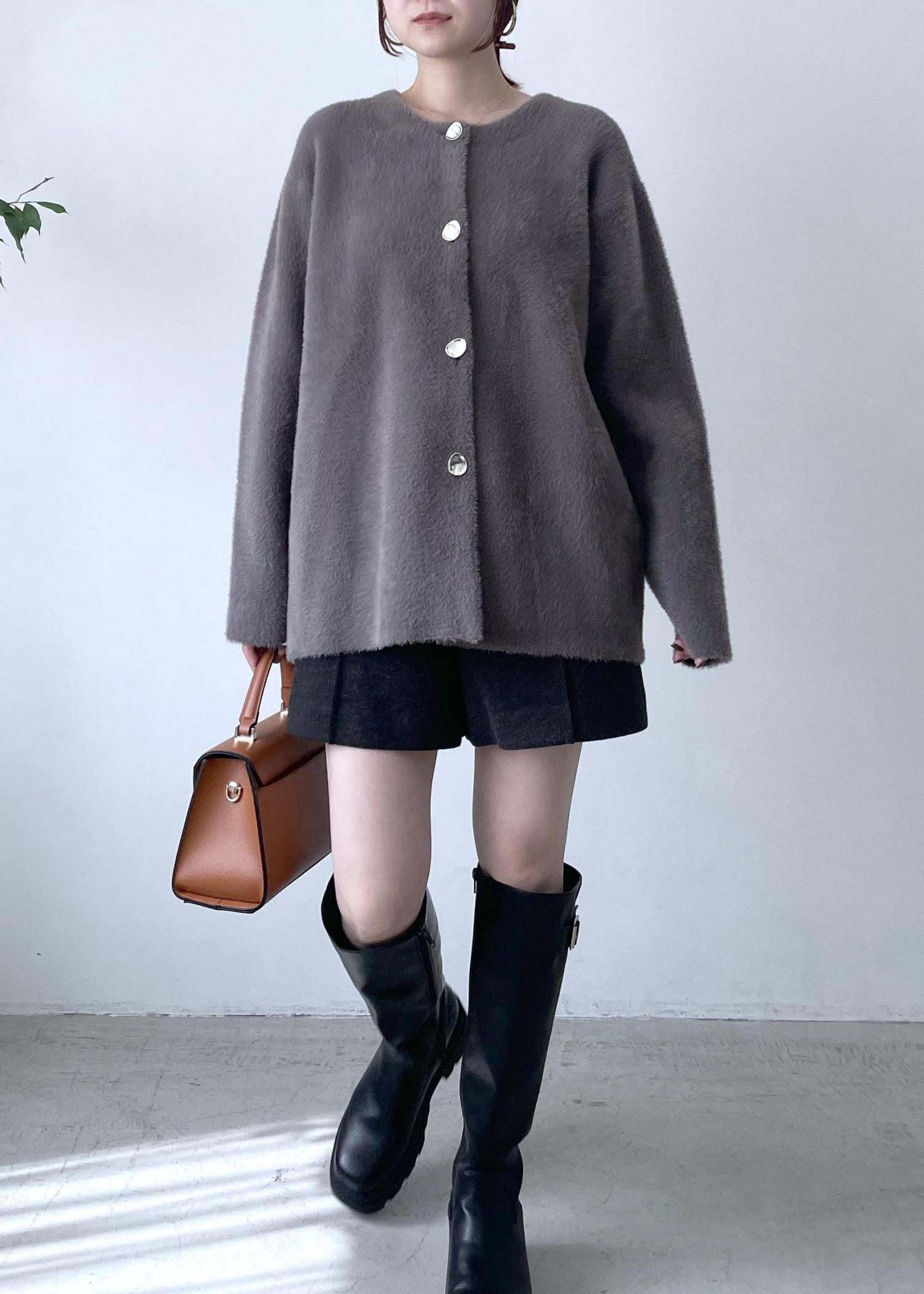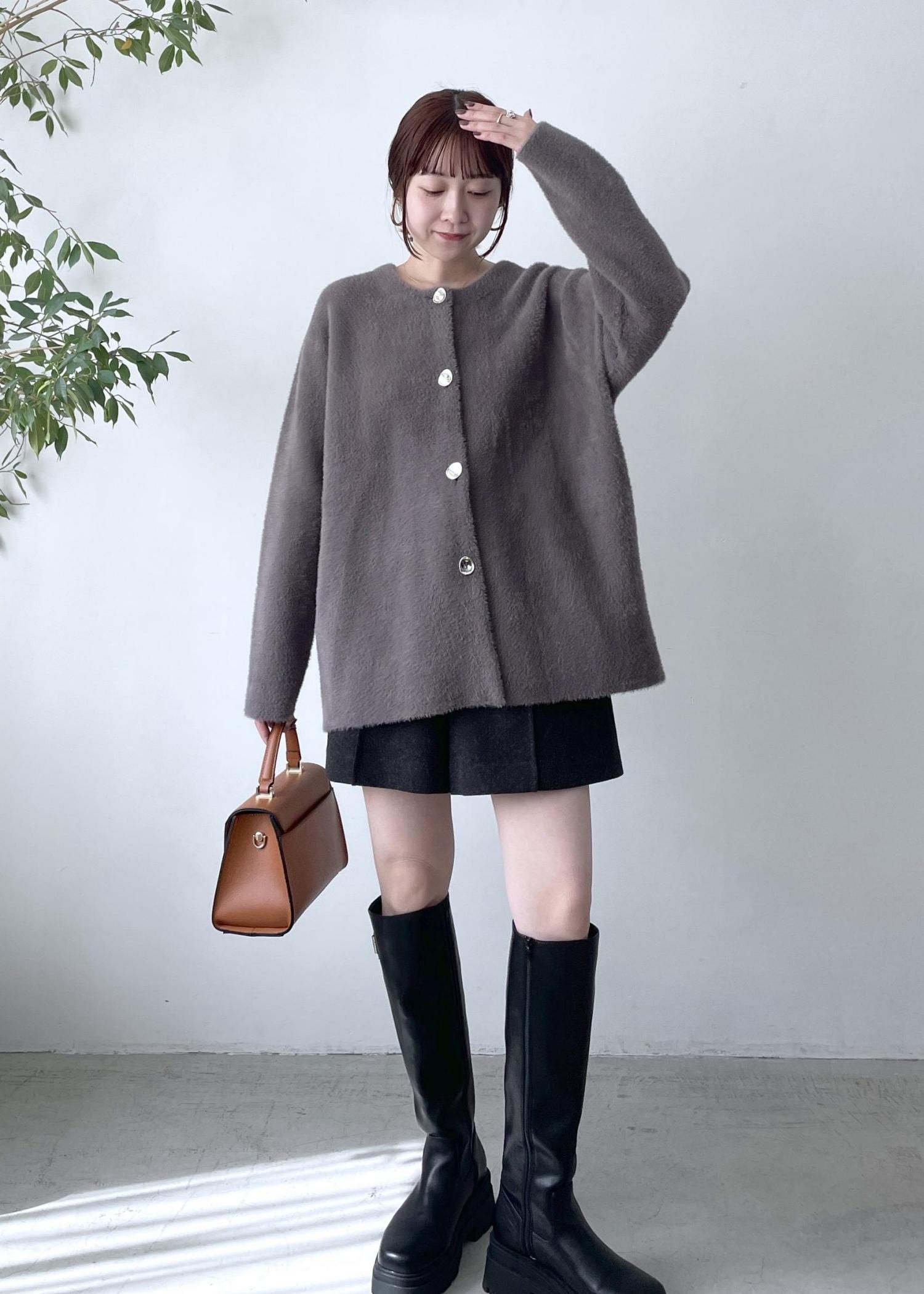 VIS接結メタルボタンミニフェザーニットコートブラウン / F¥9,999レビュー去年大人気だったニットアウター♡カーディガンとコートの間のような暖かさと軽さ、インナーやトップス次第でロングシーズン着用できます◎身長159cmでヒップが隠れる着丈、ゆるっと着れる大人可愛いサイズ感です。メタル釦と短めの毛足で程よい上品さもあります!