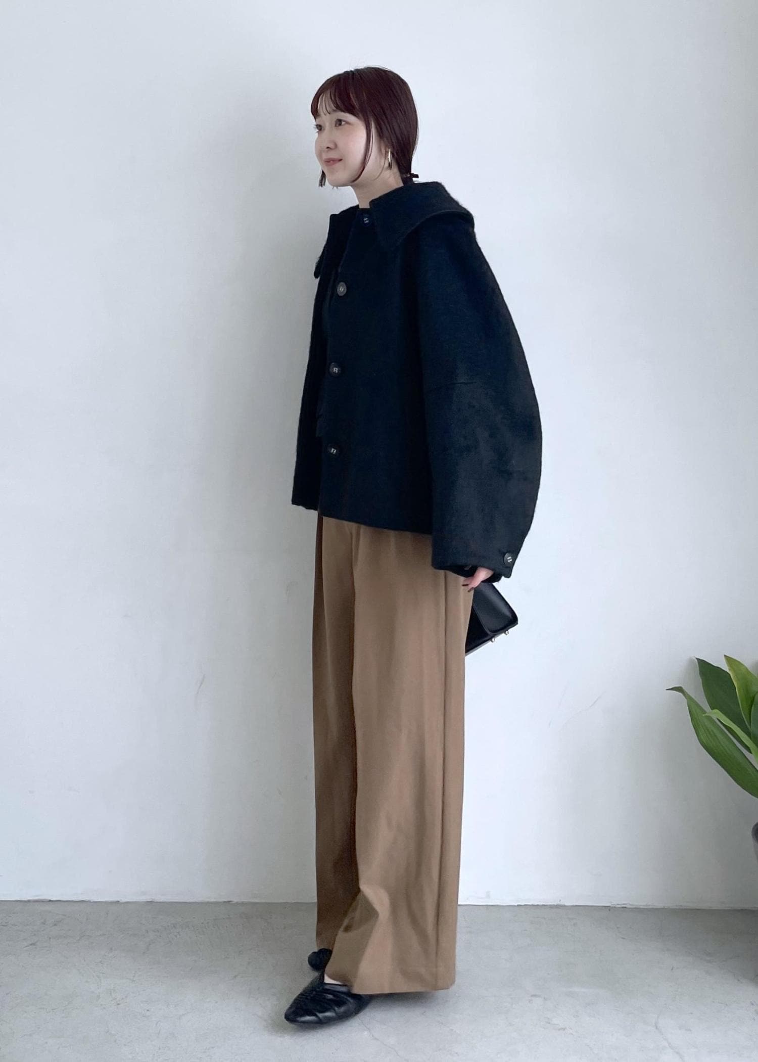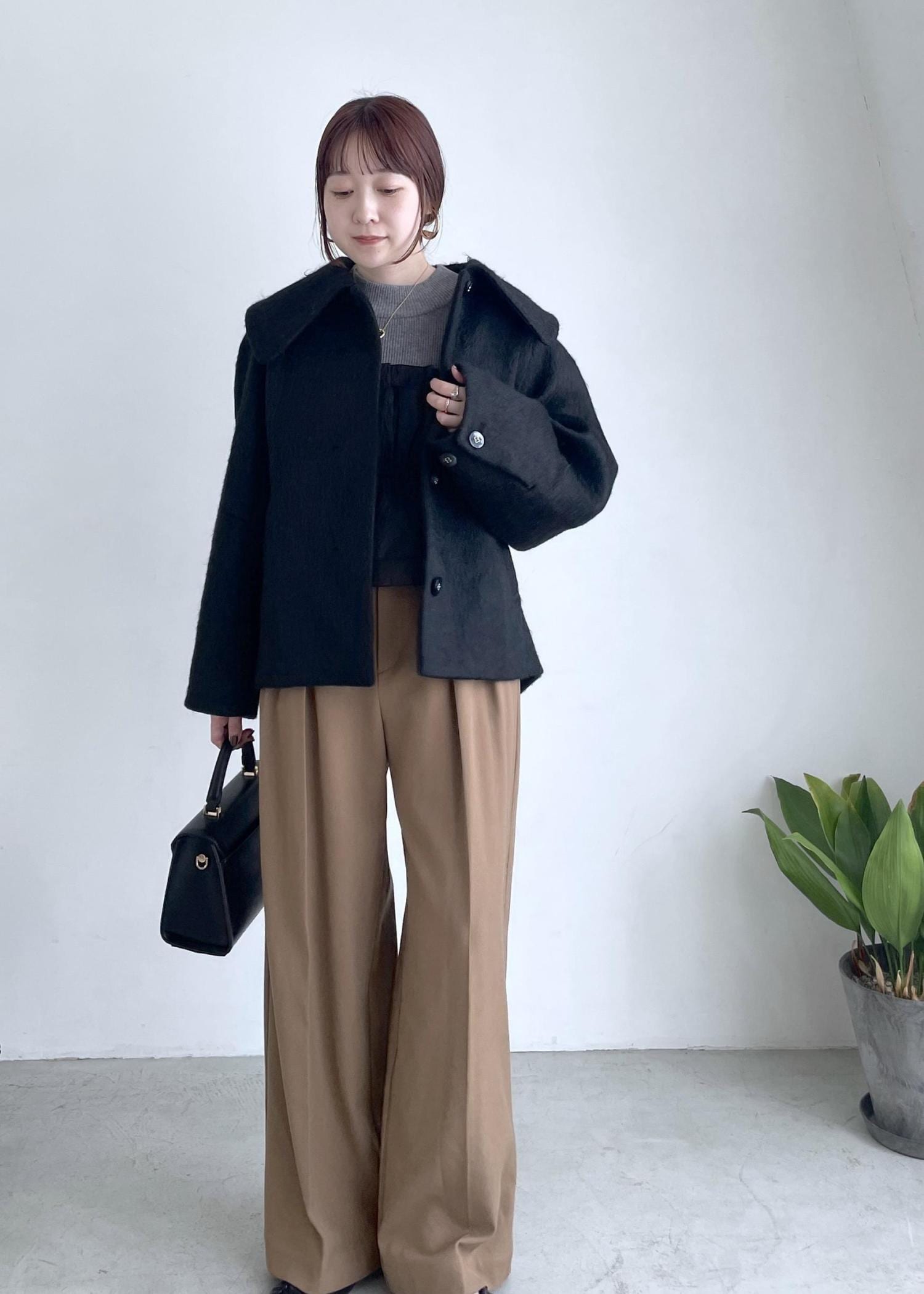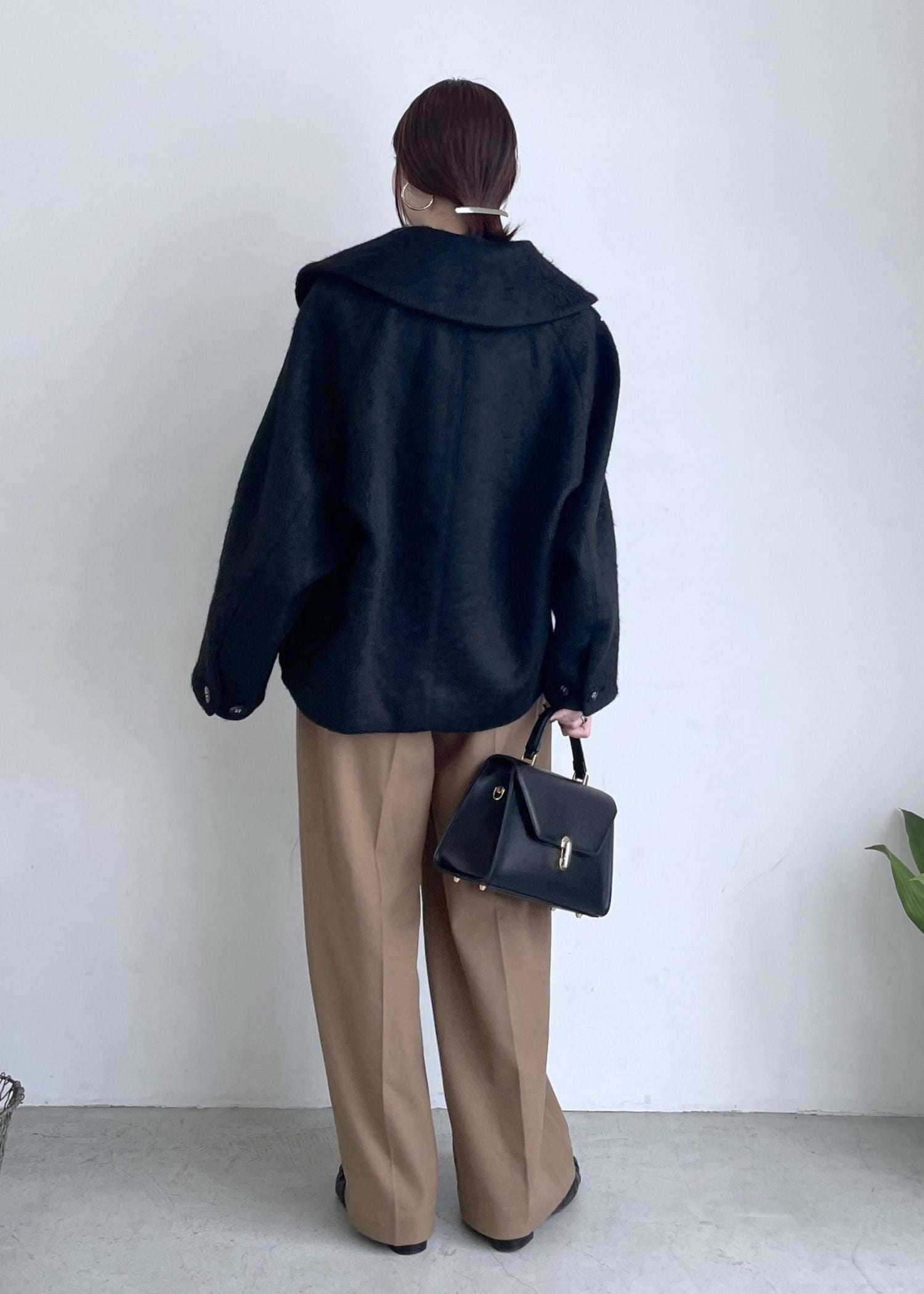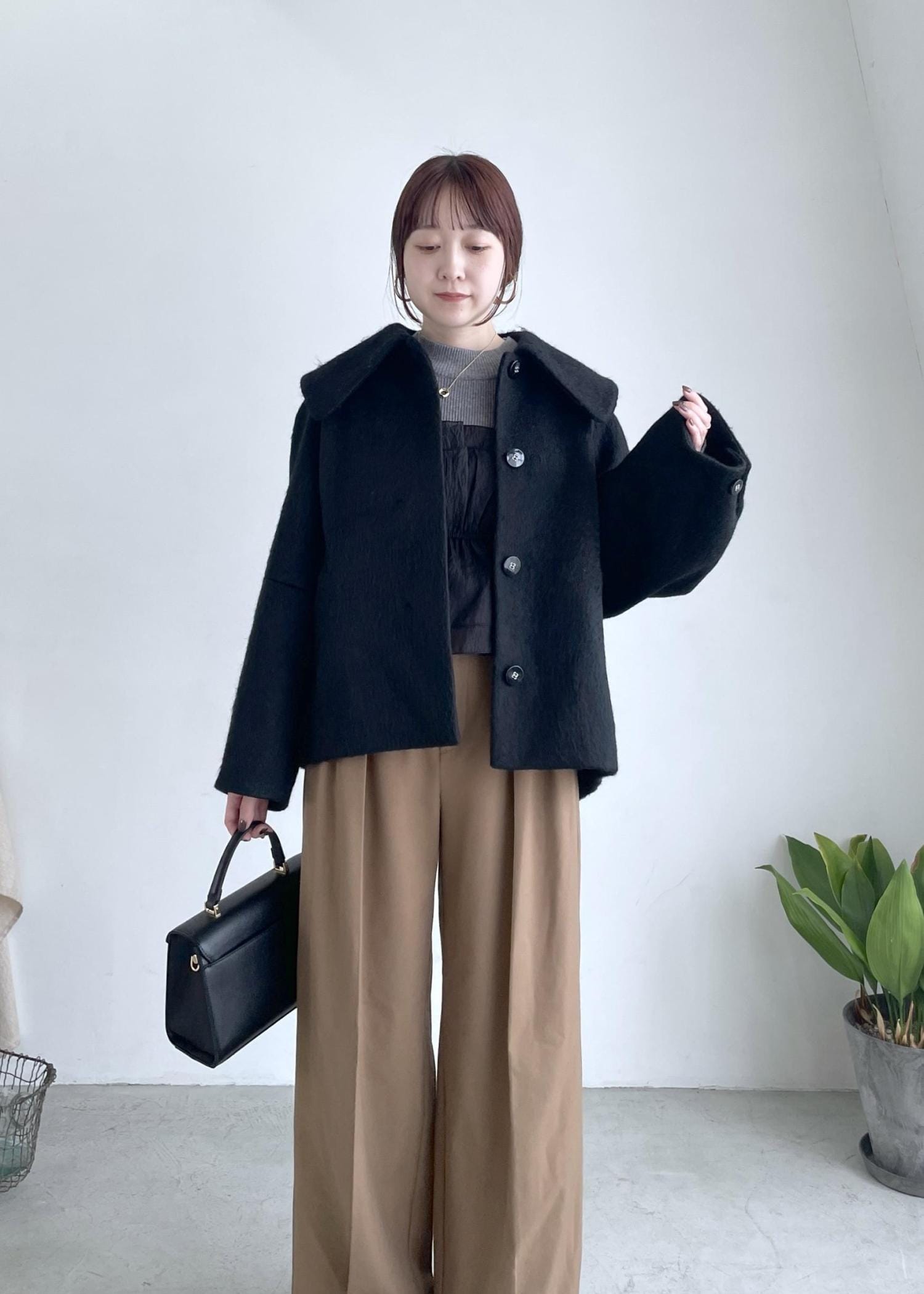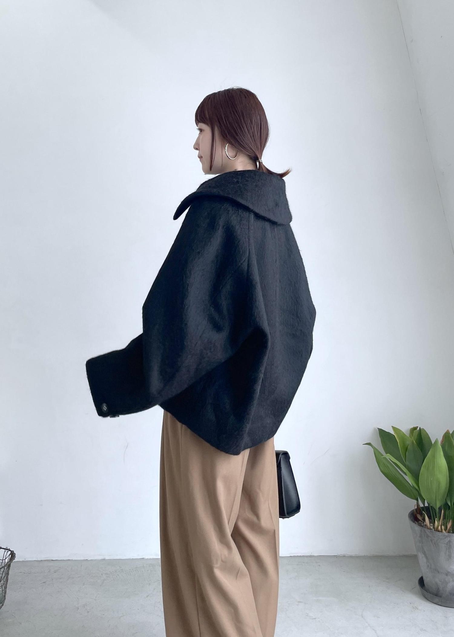 予約VIS【アウター総選挙1位】ビッグカラーモモンガシャギーショートコートブラック / M¥10,989レビュー大人可愛いビッグカラーショートコート♡身長159cm/Mサイズ着用で、ヒップがしっかり隠れる着丈。トレンド感あるゆったりシルエットで着用できました◎ウール混で暖かさがありながらさらっと羽織れる軽さもあります!