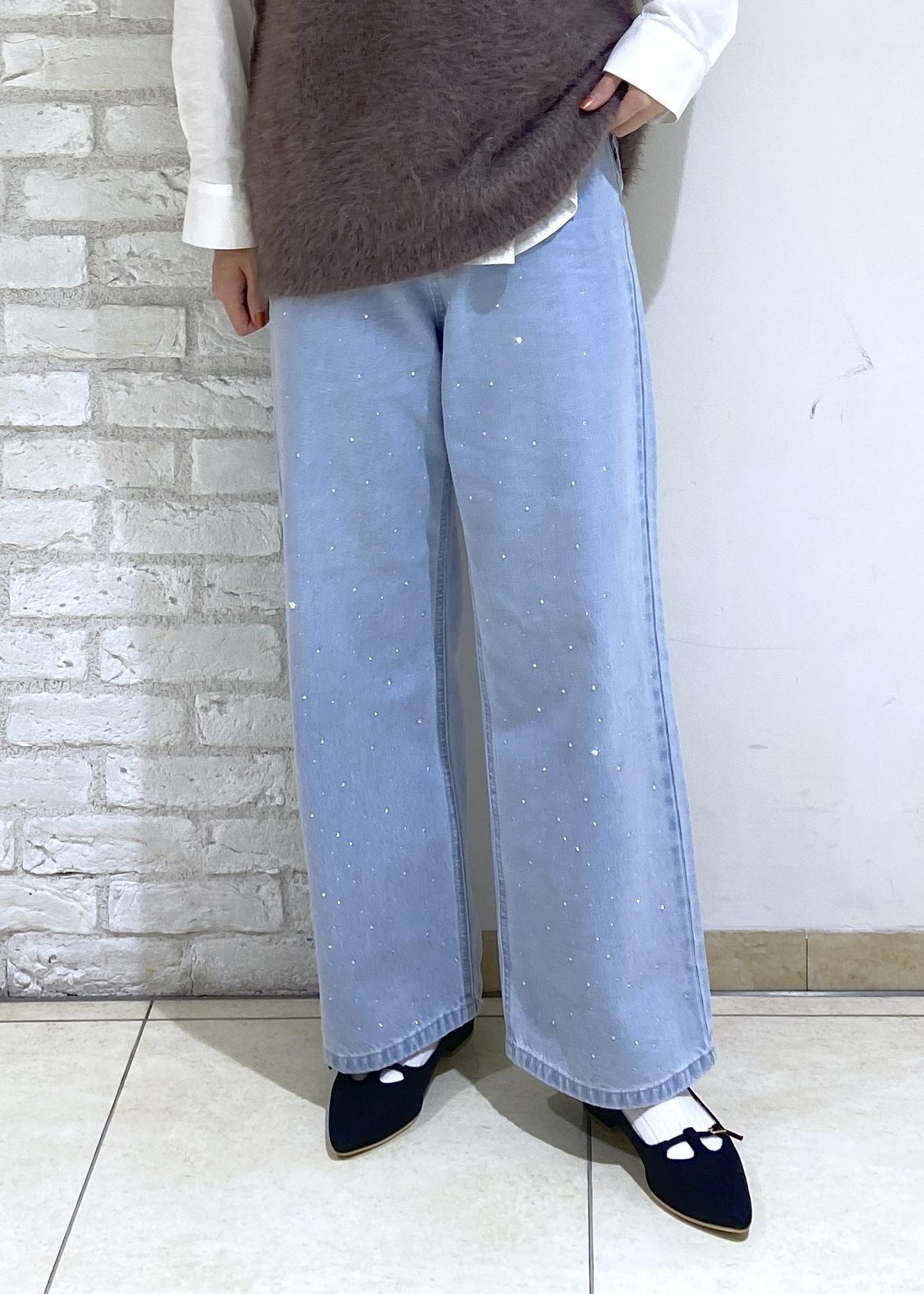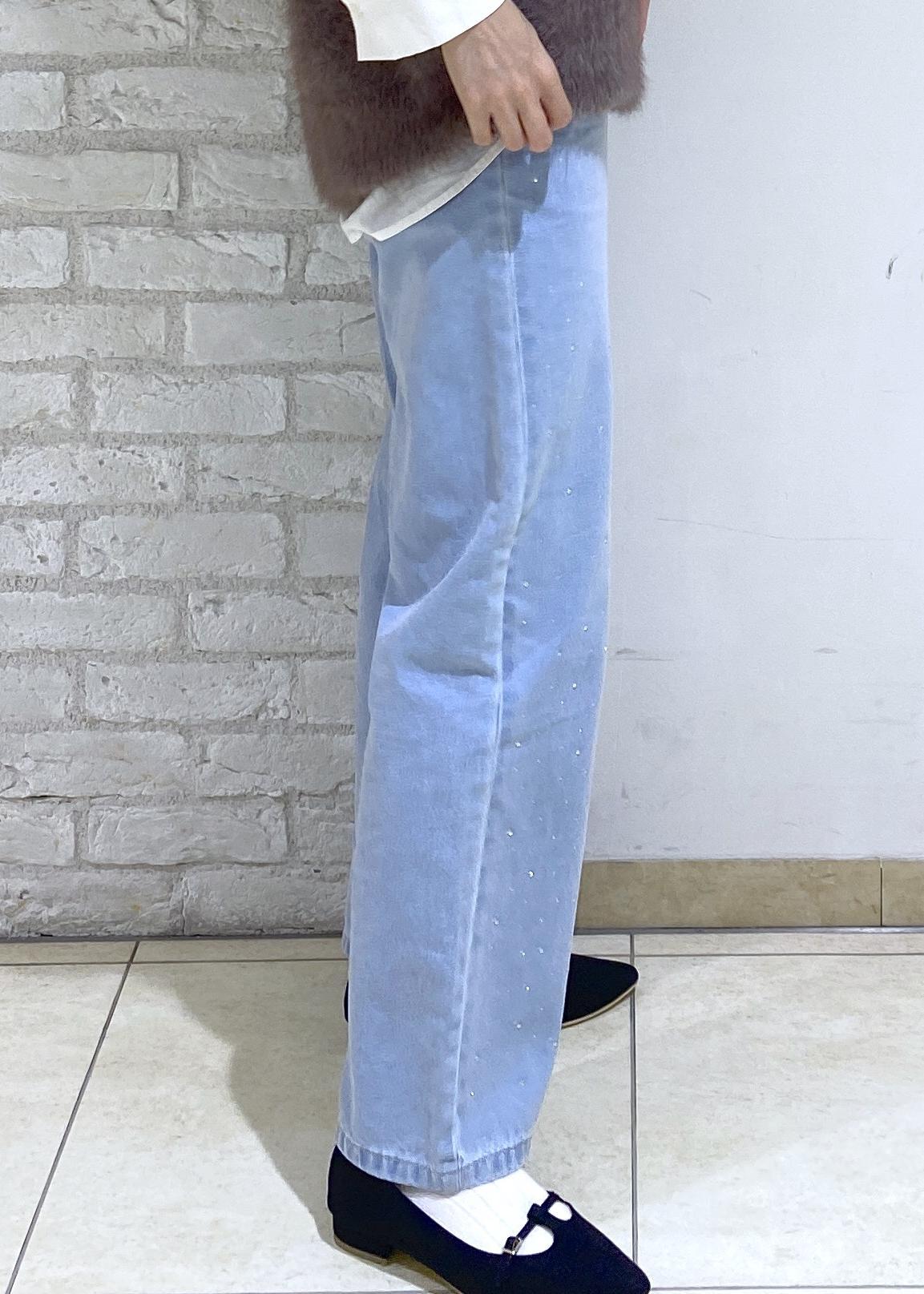 コーディネートに馴染んでくれるキラキラ感がポイントのデニムパンツです。 -