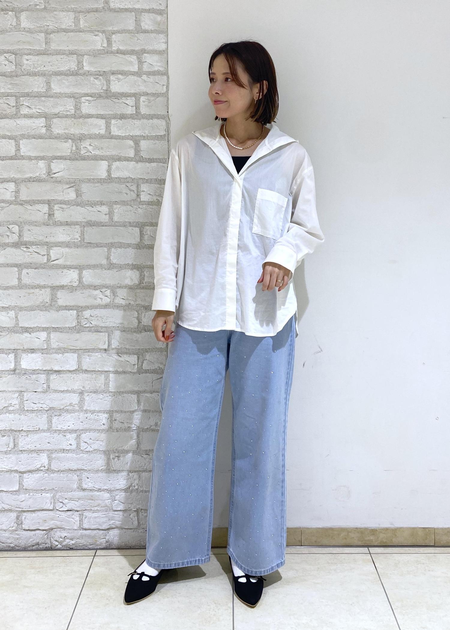 ビジューデニムを合わせて大人カジュアルなスタイリングに♪