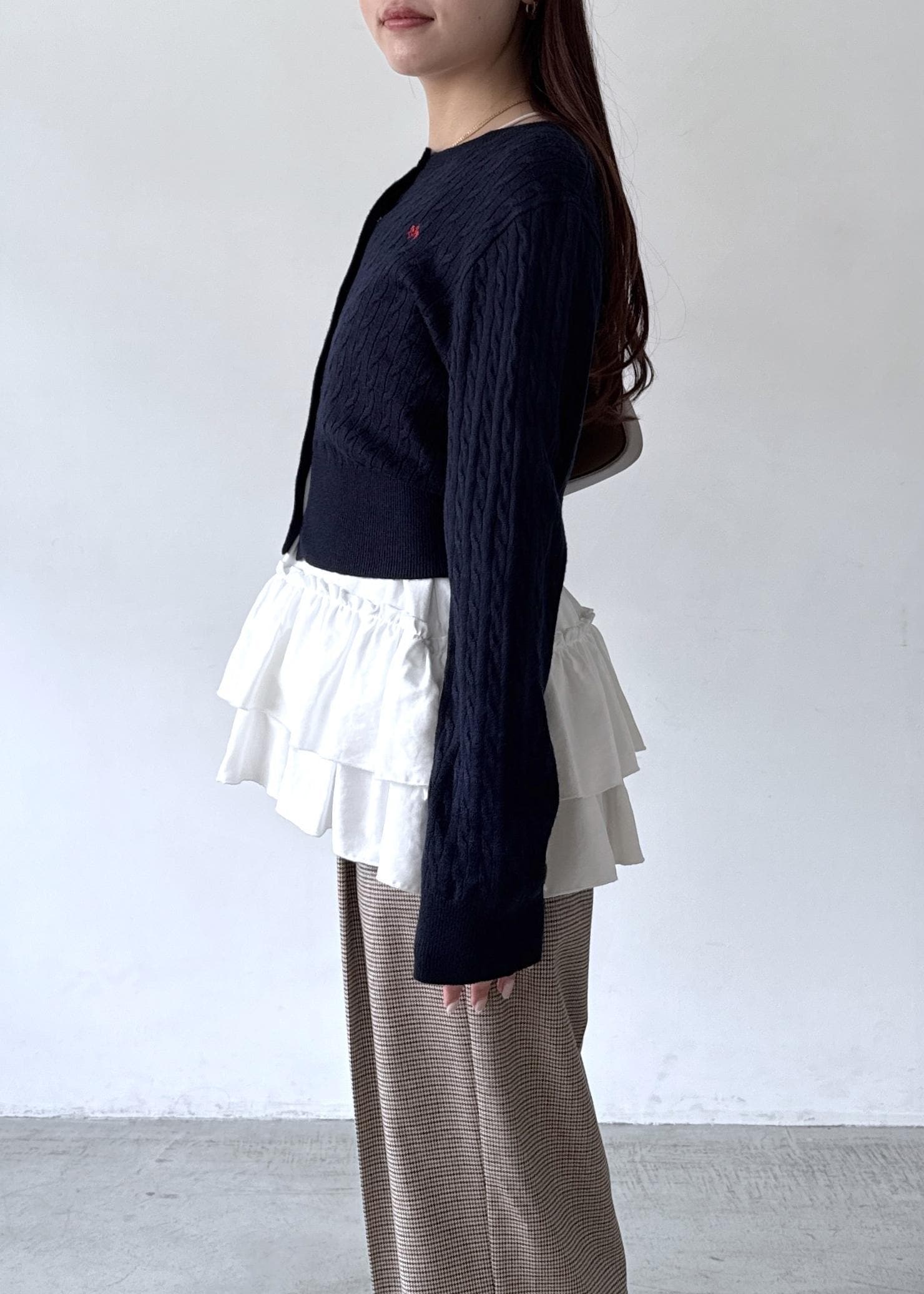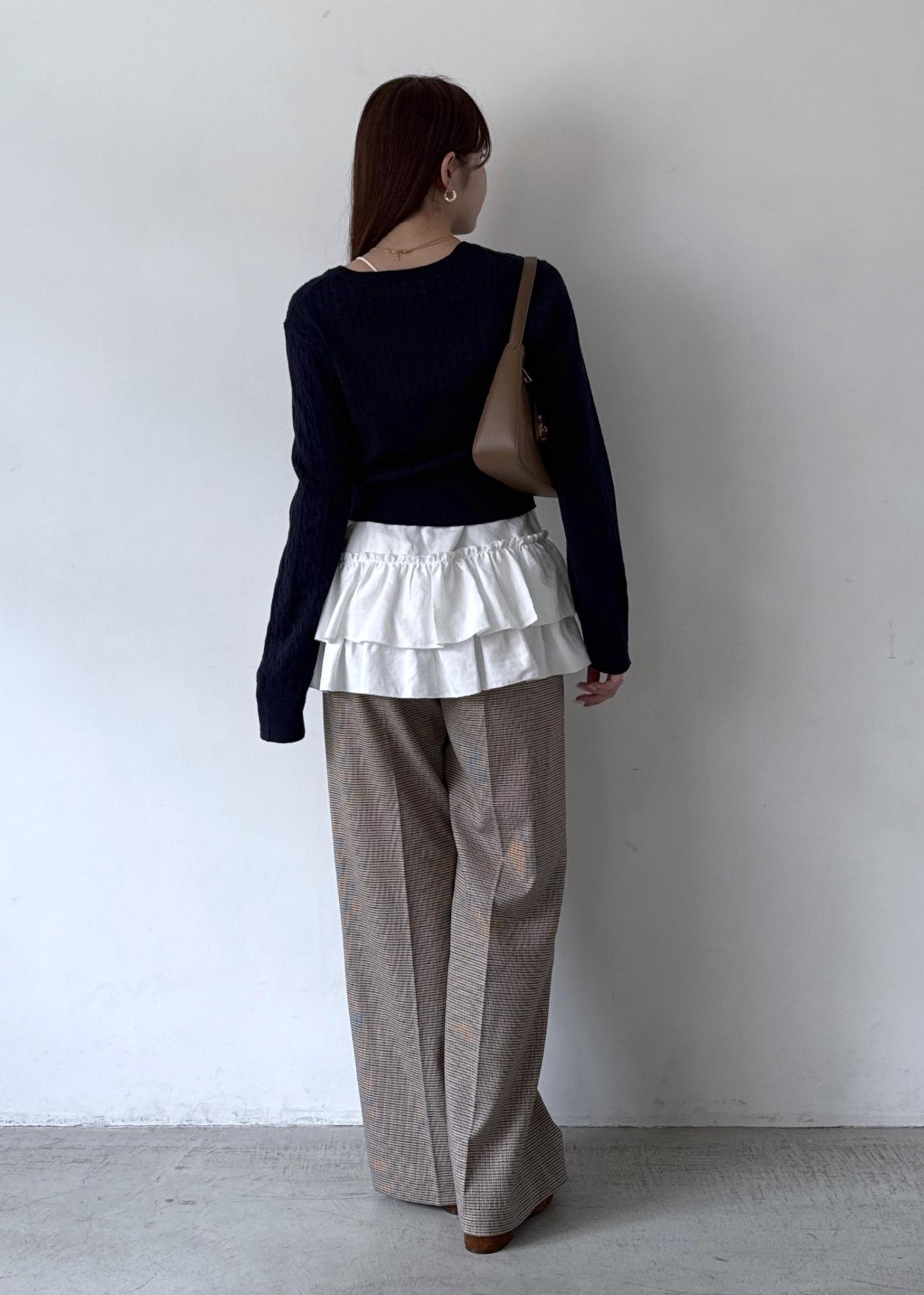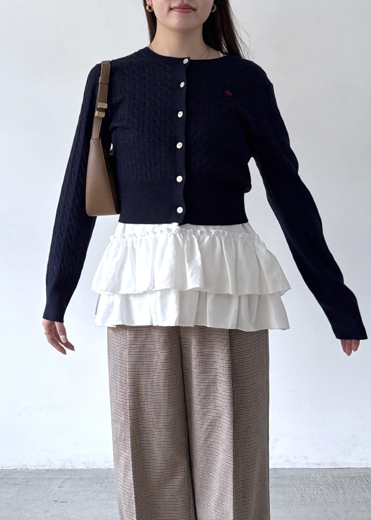 POLO BCS | VIS別注アイテムのカーディガンに、インナーにはフリルが可愛いトップスをちらっと見せて、こなれ感をプラスしたレイヤードスタイルに!