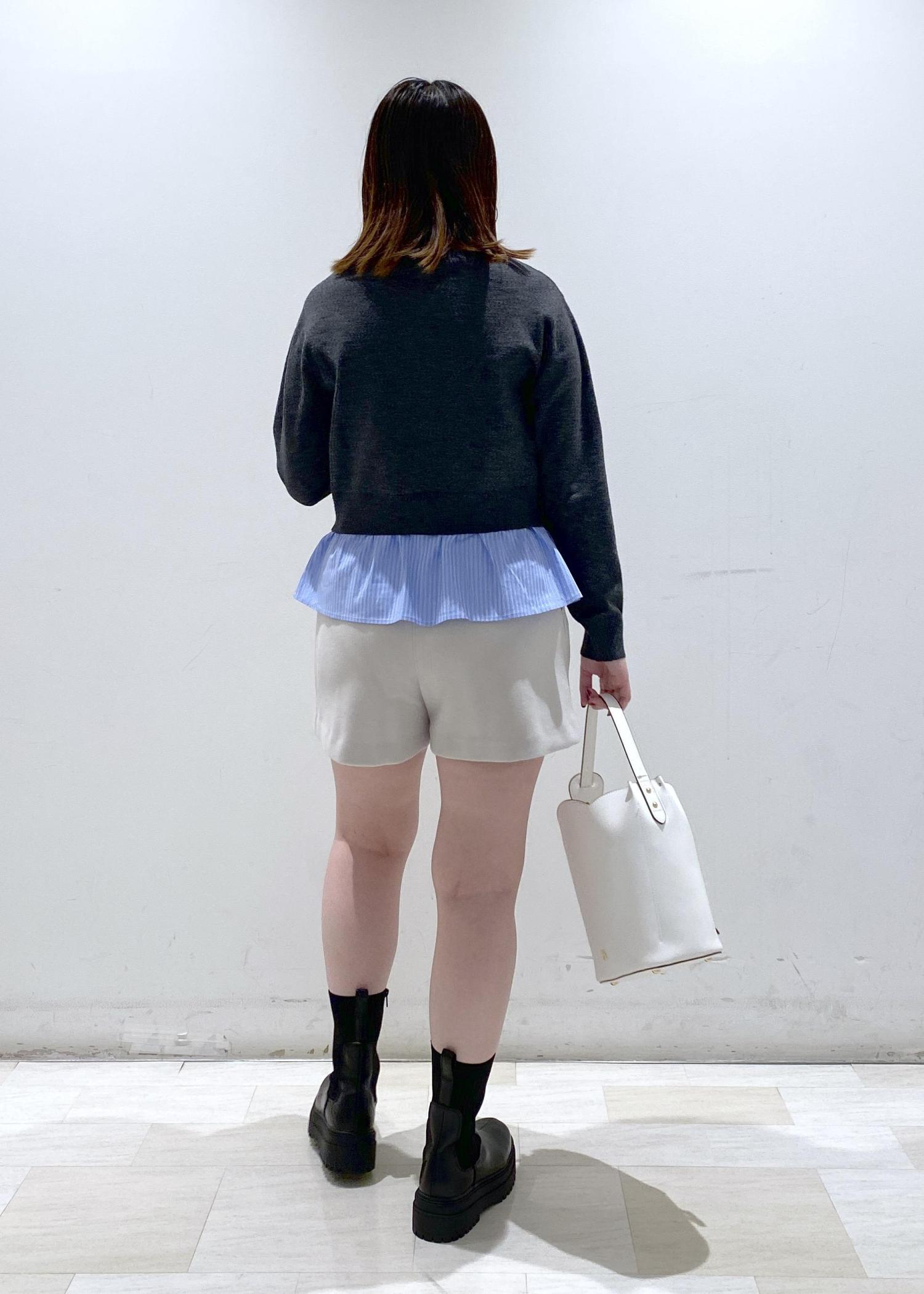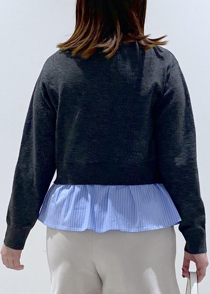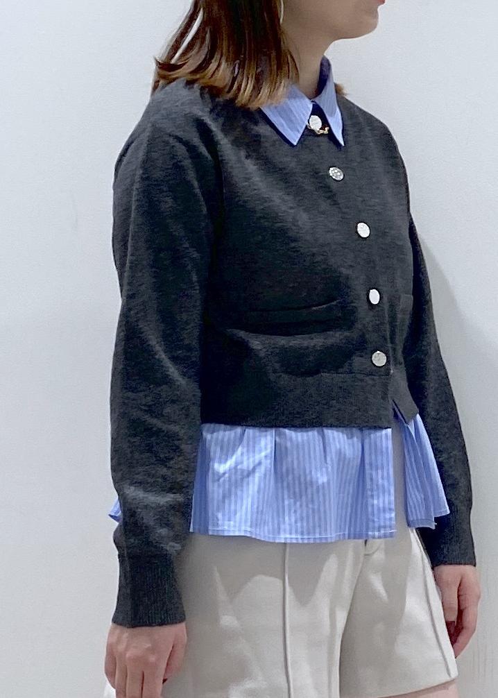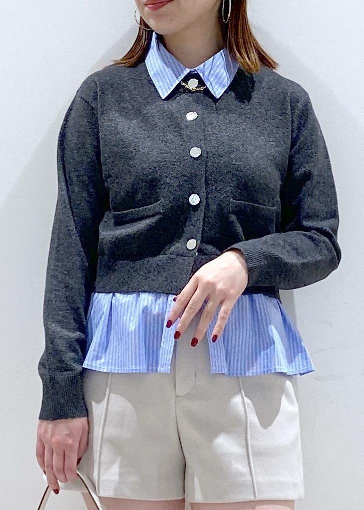 VISシャツレイヤード風メタルボタンカーディガンチャコール / F¥6,589レビューニットとシャツのドッキングトップスは