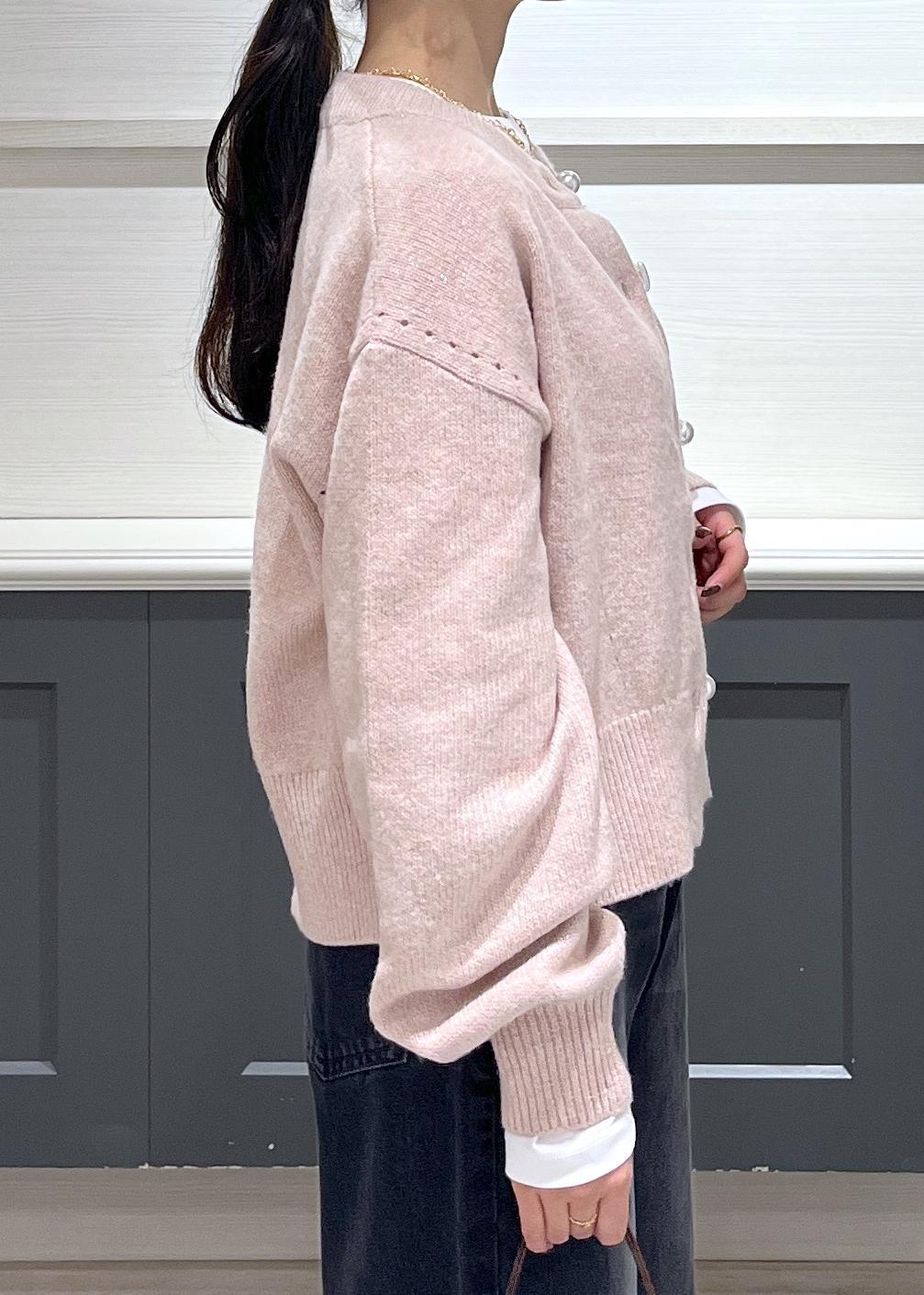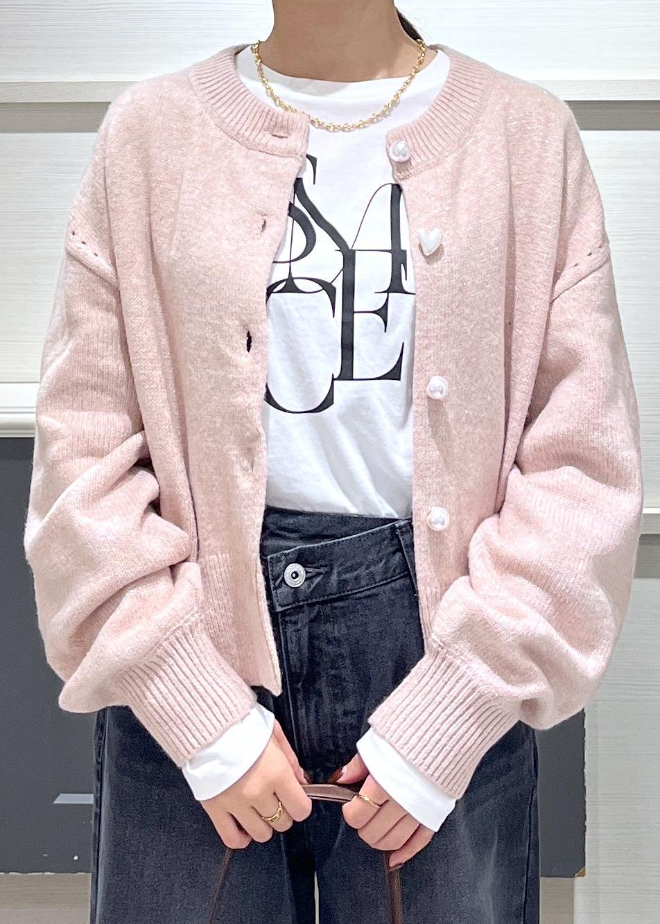 VISハートアソートパール釦ラメミックスカーディガン/イージーケア・一部WEB限定カラーピンク系 / F¥5,489レビュー156cmでヒップにかかる丈感でした!