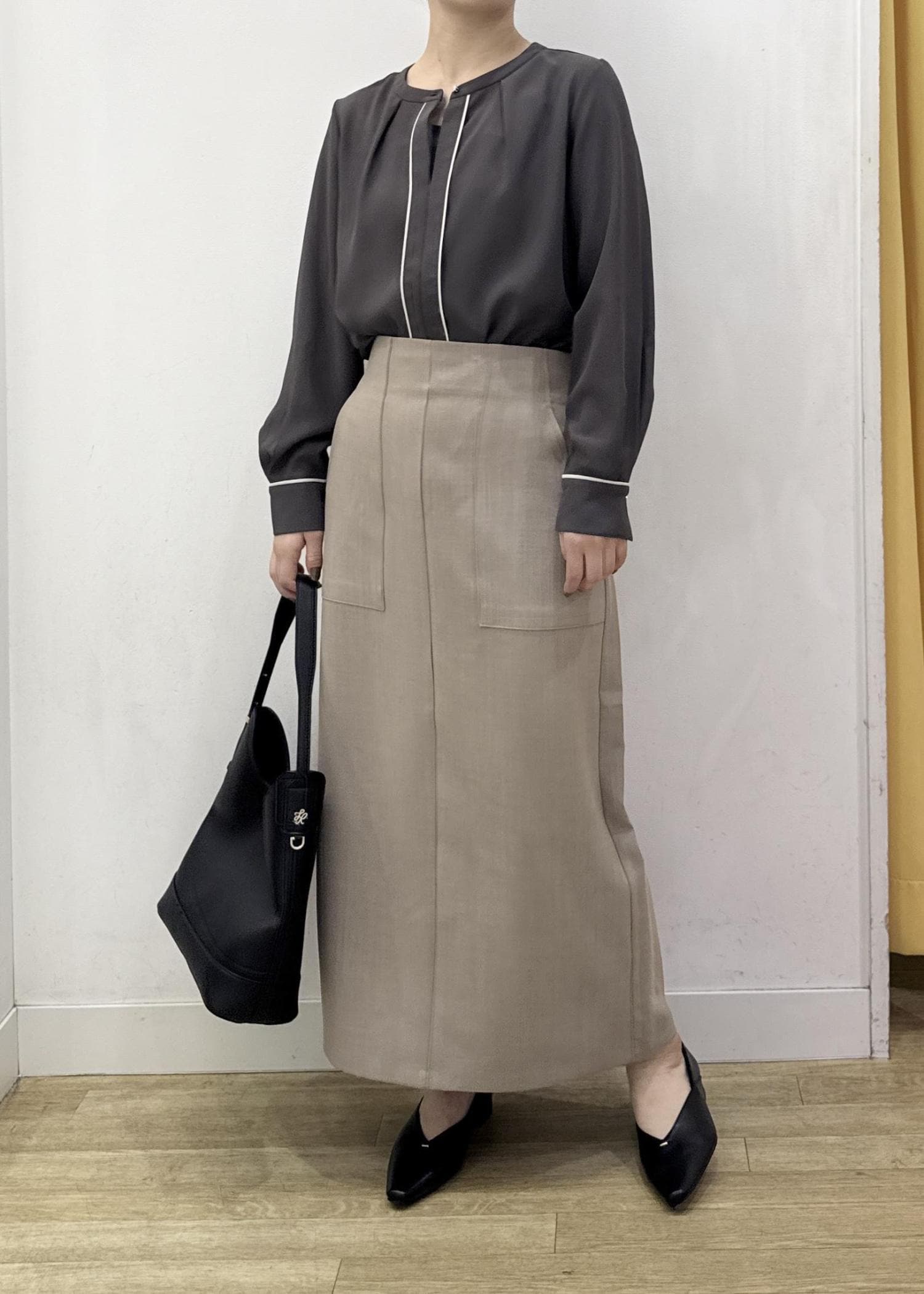ROPÉ PICNIC配色パイピングブラウスチャコール / S¥3,599レビューSサイズでジャストサイズで着られました。