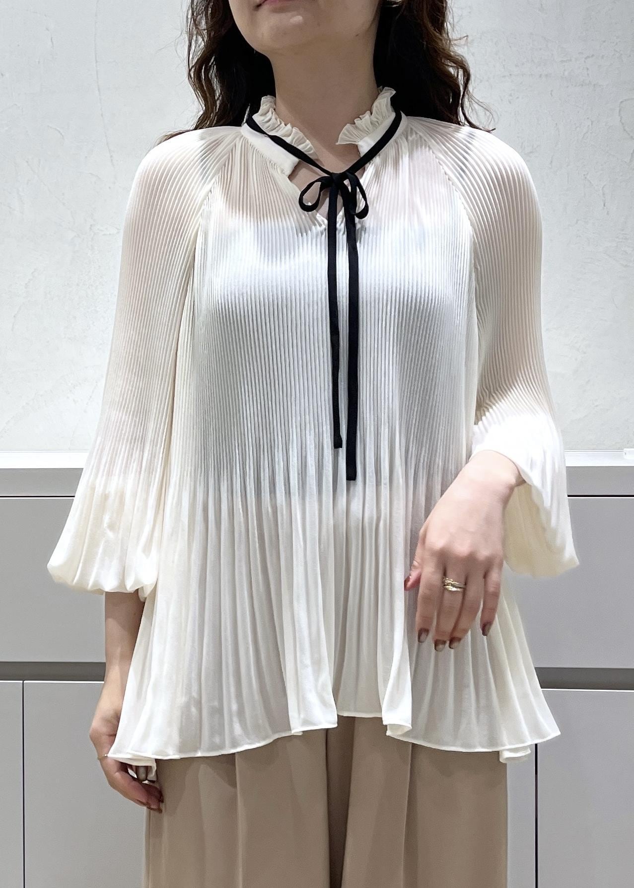 予約ROPÉプリーツデザインブラウス/イージーケアオフホワイト / F¥28,600レビューフリーサイズです。