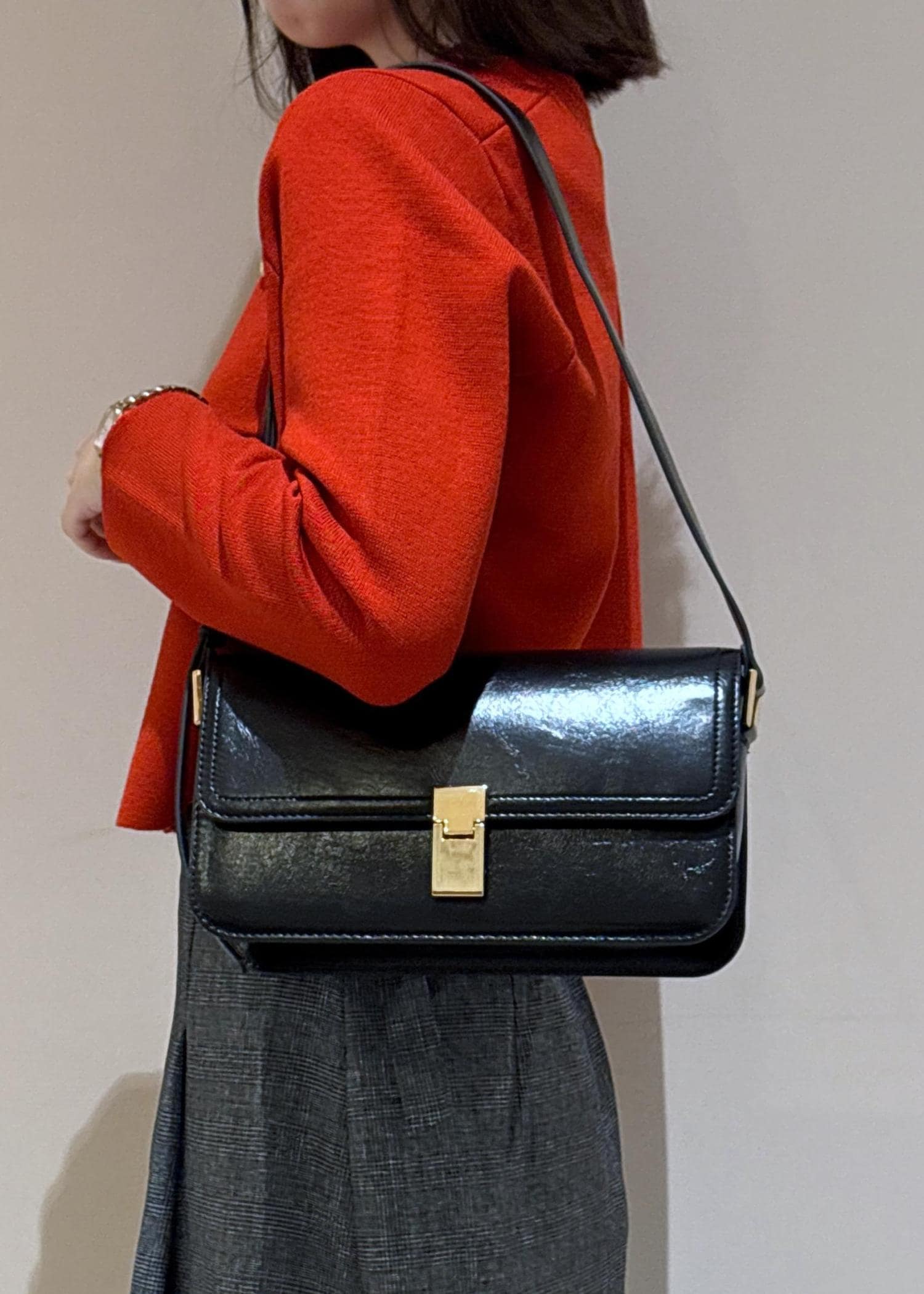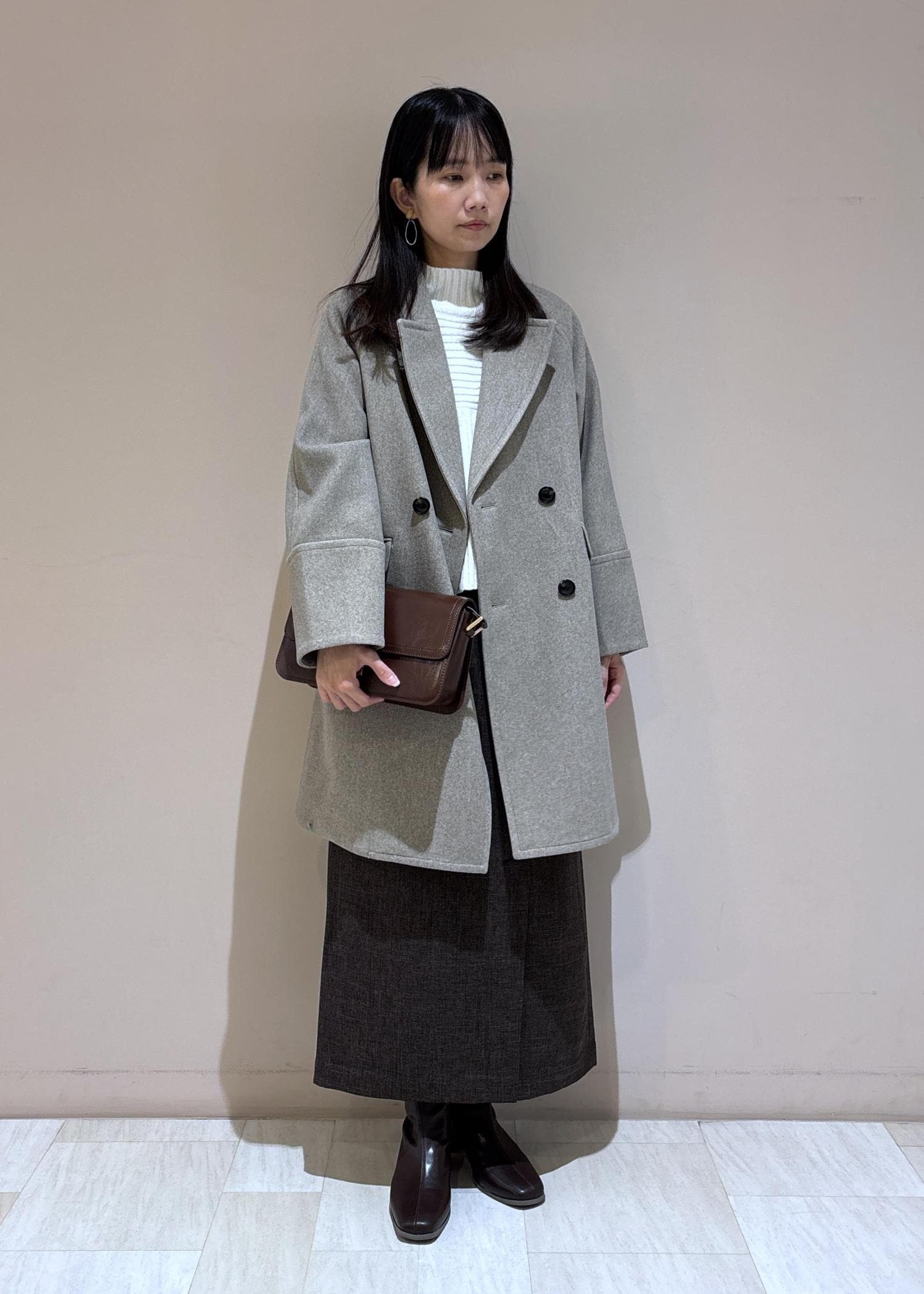 スカートと敢えて色味を揃えてバッグとパンプスもブラックにしました。