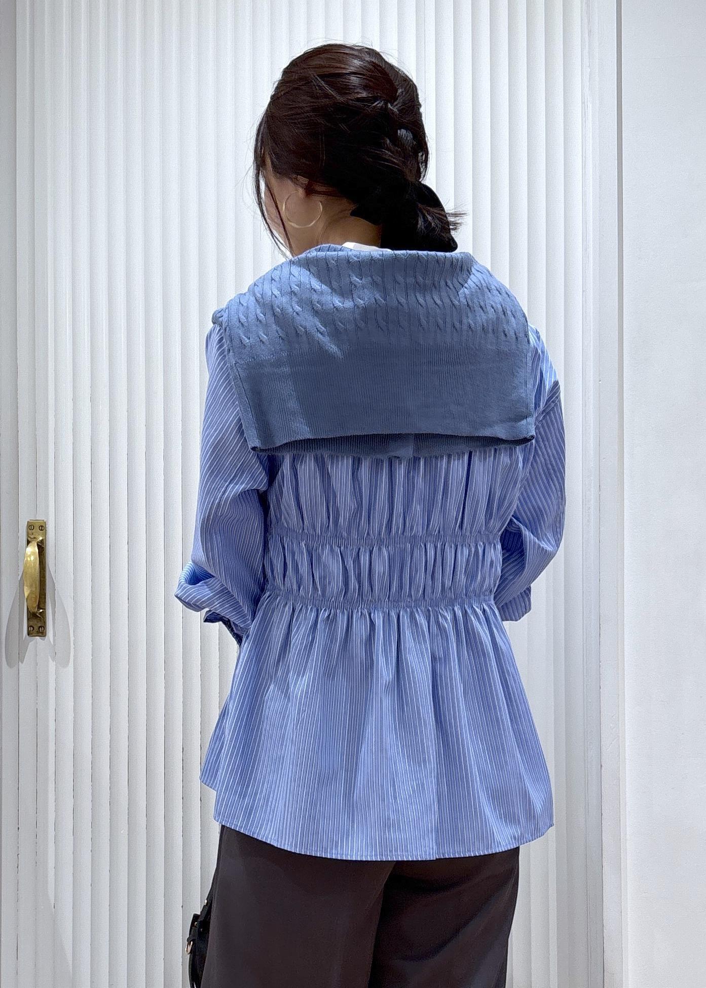 VISシャーリングデザインシャツブルー系 / F¥5,489レビュー身長164㎝、フリーサイズ着用です。
