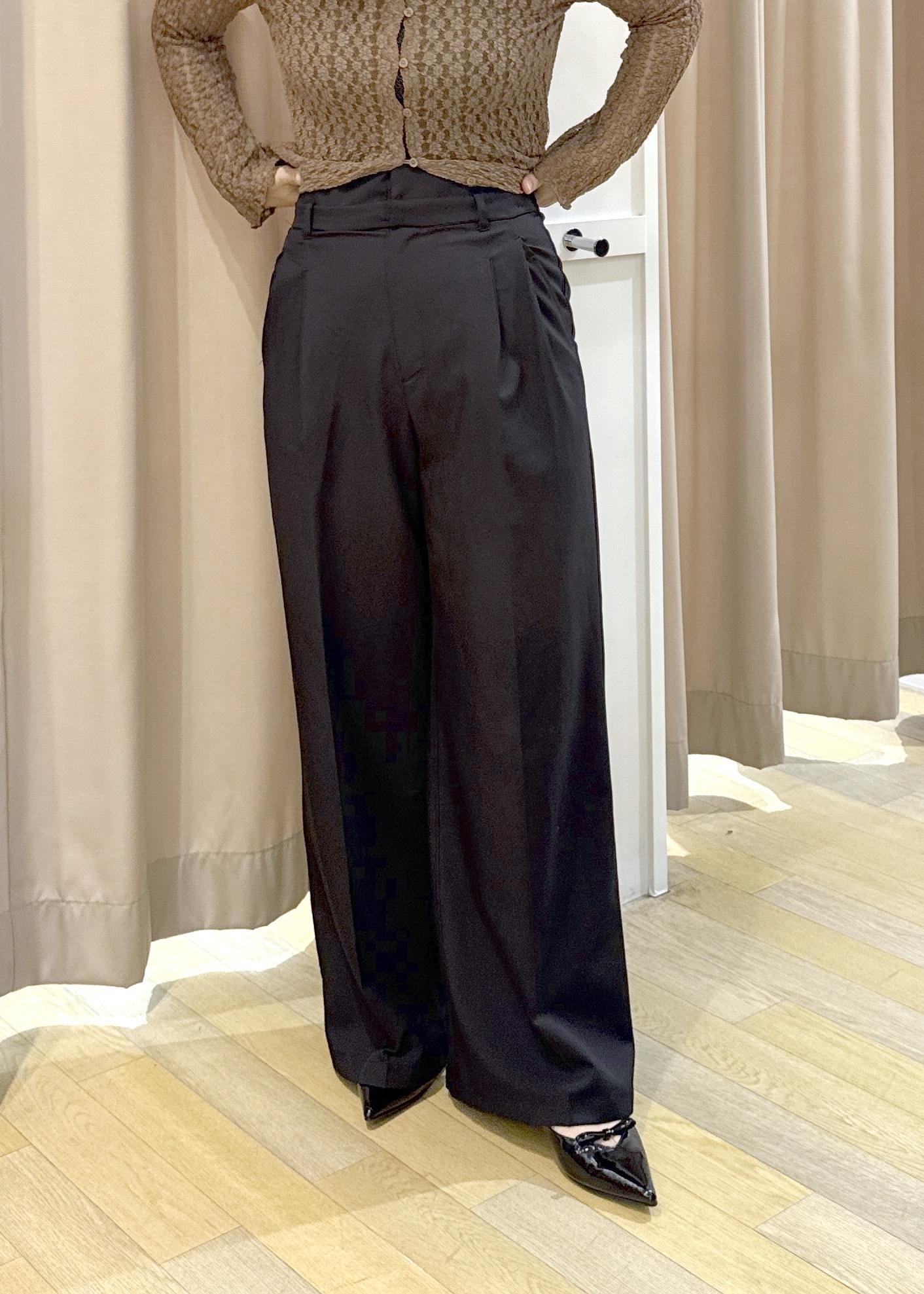 VIS【新色追加】【防シワ/接触冷感】ベルトディテールタックワイドスラックスパンツブラック / M¥6,589レビューサラッとしていて落ち感のある素材です!