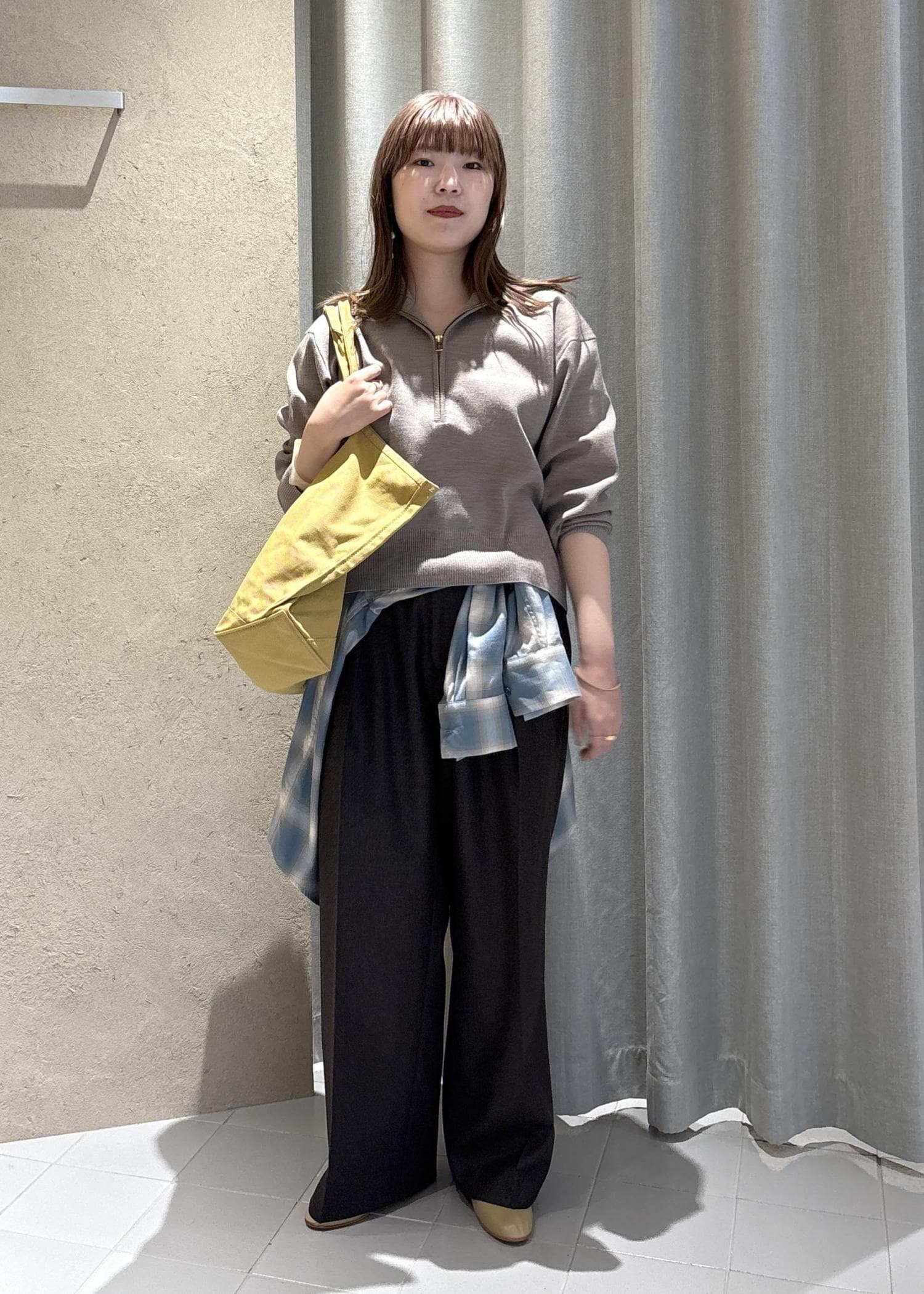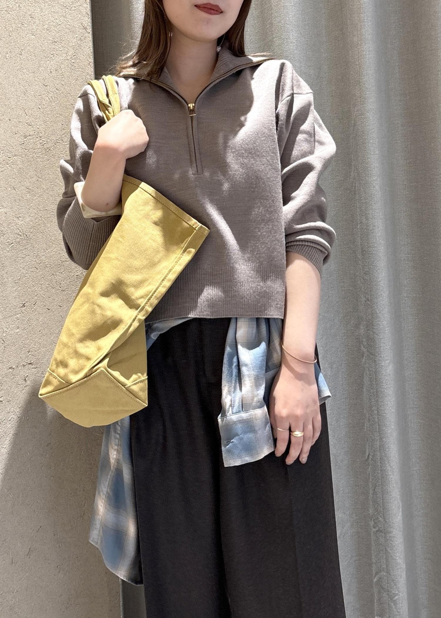 SALON adam et ropéハーフジップウールニットスウェットプルオーバーベージュ / F¥20,900レビューチクチクしたりなどはないので、キャミソールの上からでも着用可能です!首のジップでアレンジができるので、印象が変わりますね。
