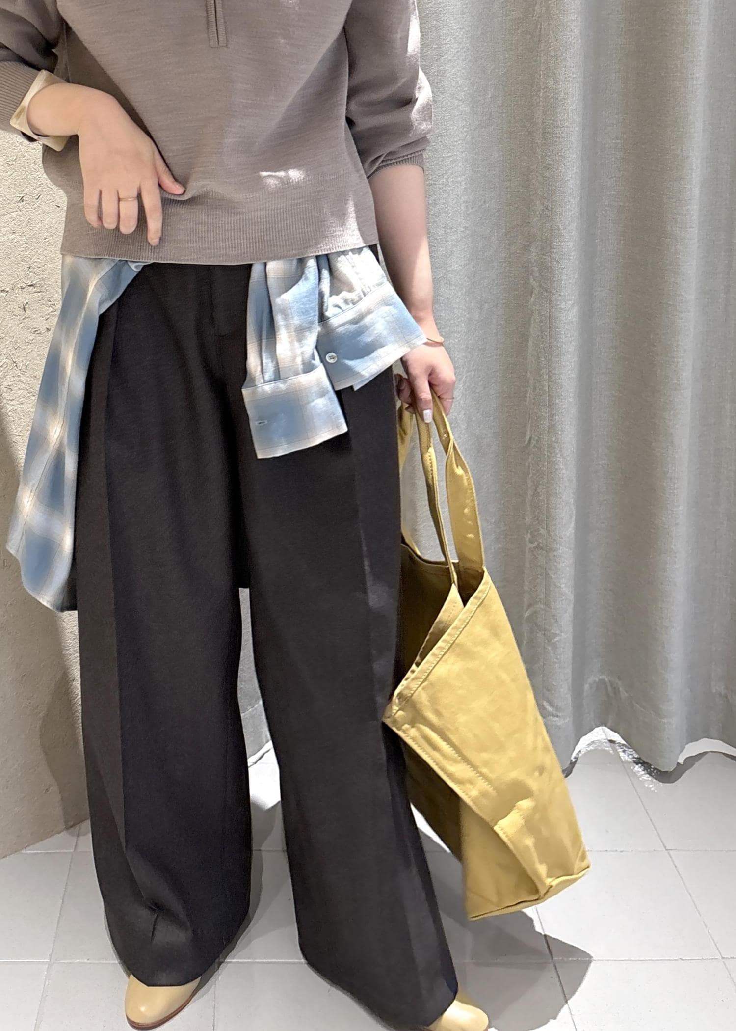 SALON adam et ropéウールタックワイドパンツ / セットアップ対応ダークブラウン / S¥24,200レビューウールがメインの素材ですが、裏地が付いているのでチクチクしないで着用できます。身長160センチでSサイズを着用し、くるぶしまで隠れる長さでした。ウエストは中にゴムが付いているので調節が可能です!