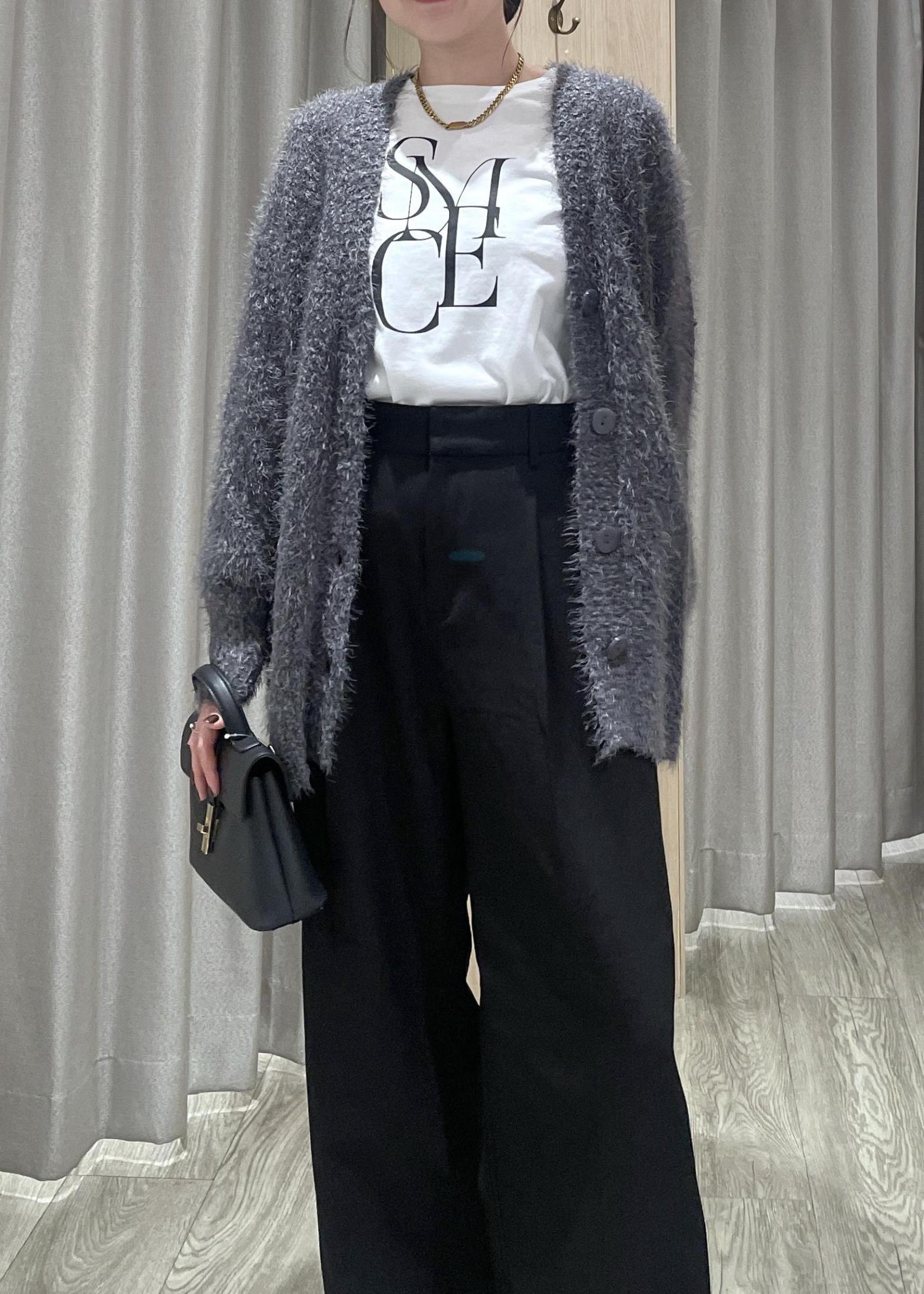 VISポップコーンヤーンラメフェザーニットカーディガン/WEB限定FSサイズスミクロ / F¥5,271レビューたっぽりとしたシルエットが大人可愛いカーディガン♡かなりゆったりとしたサイズ感ですが、首元はV開きなのでスッキリ見えもします。敏感肌ですがチクチク感は無く、キャミ合わせで自肌に当たっても大丈夫でした◎ラメ入りなので、普段のコーデに華やかさもプラスしてくれます!
