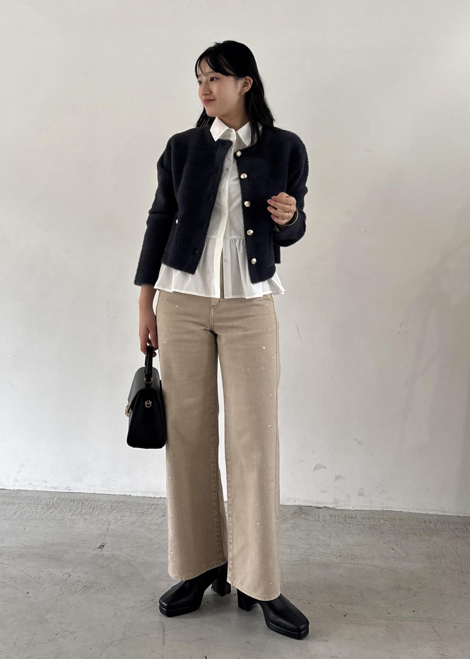 細すぎず太すぎずなストレートシルエットなのでバランスをとりやすく、トップスを合わせやすいです◎ -
