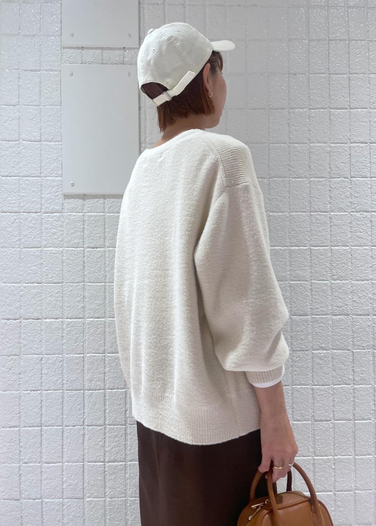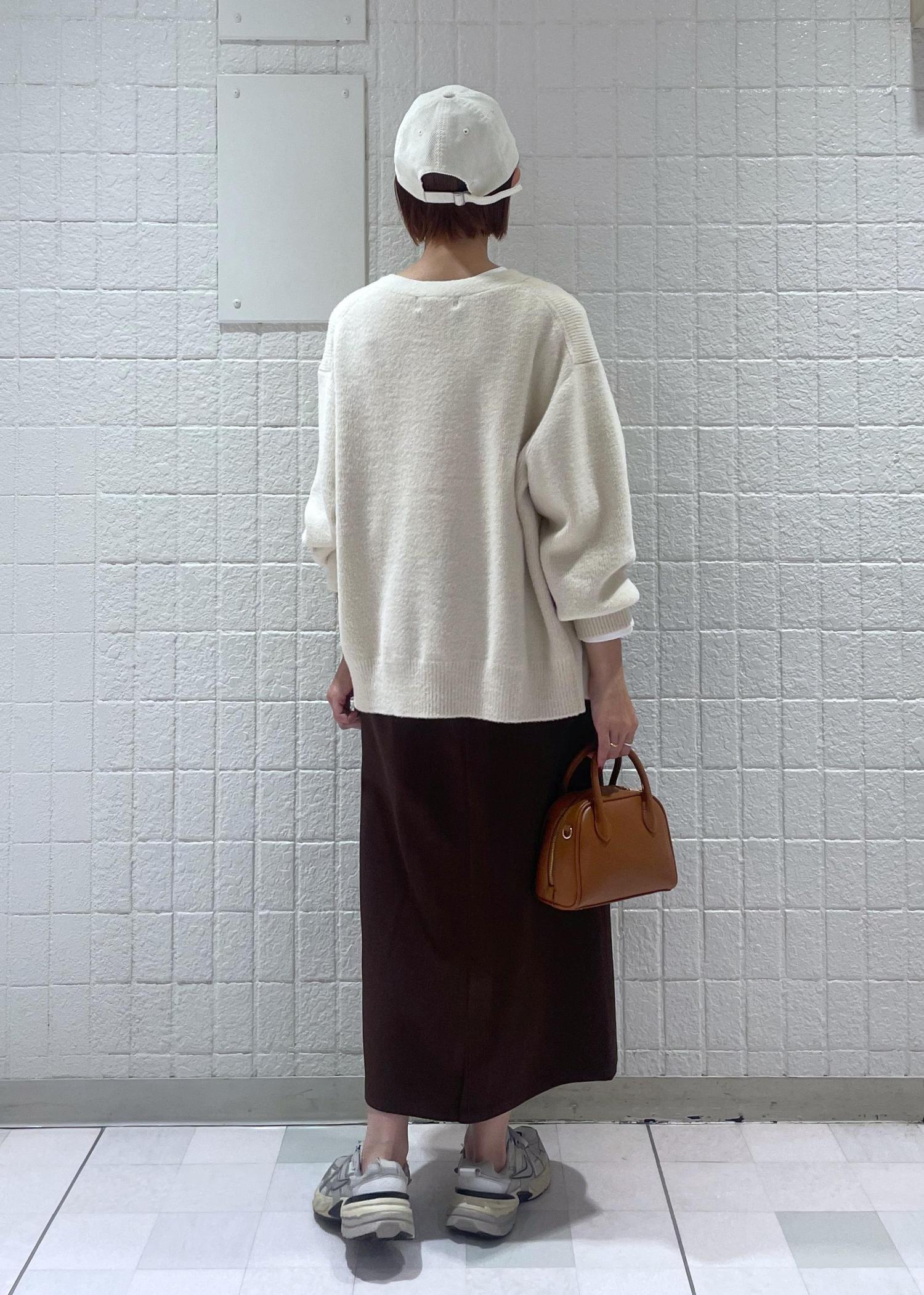 袖口、裾にかけて、緩やかにリブの入ったデザインなので程良くすっきりさもあります。 -