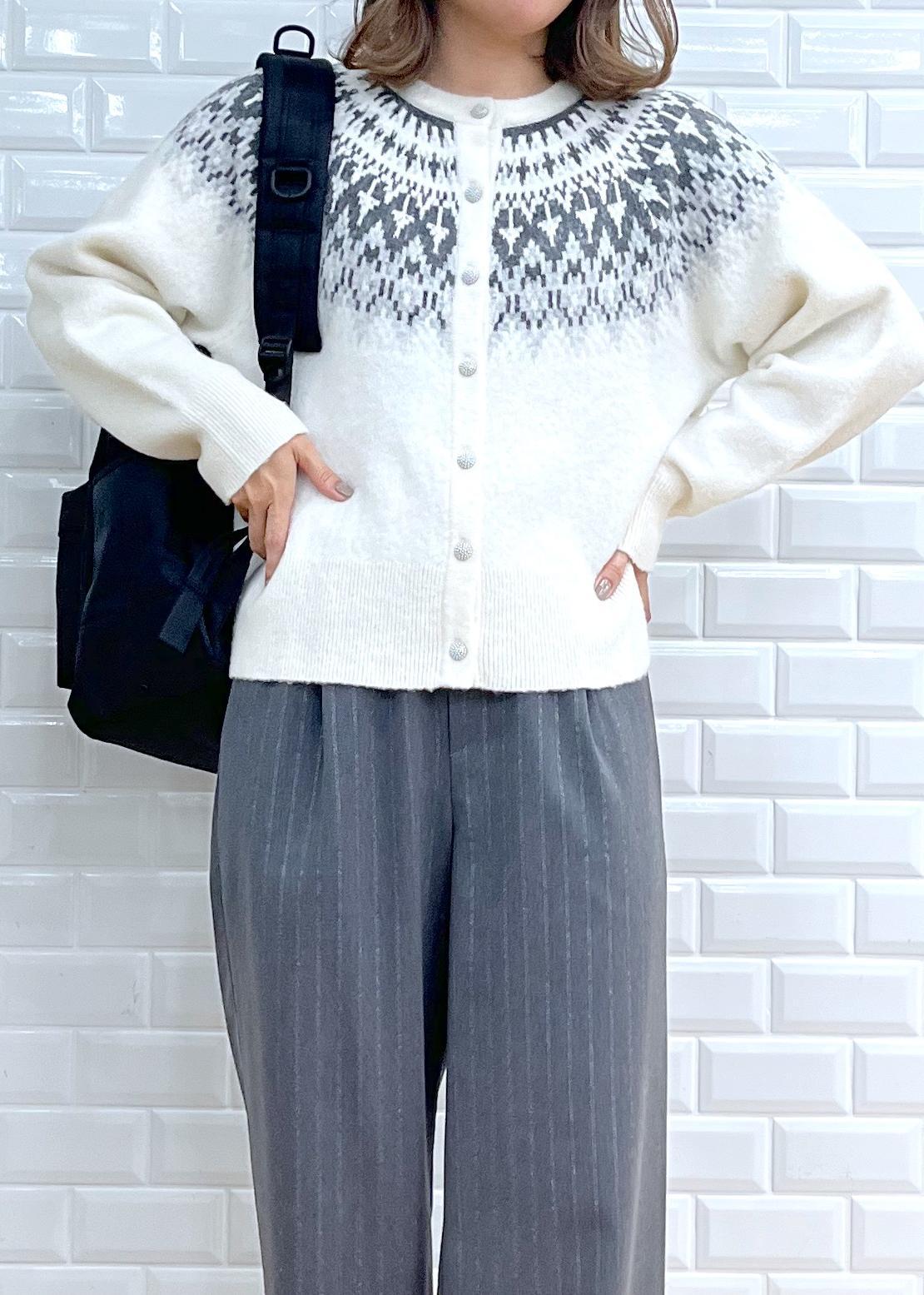 ROPÉ PICNICノルディック柄カーディガンオフホワイト / F¥4,796レビュー冬らしいノルディックデザインがかわいい一着。セーターに比べると少し薄手。