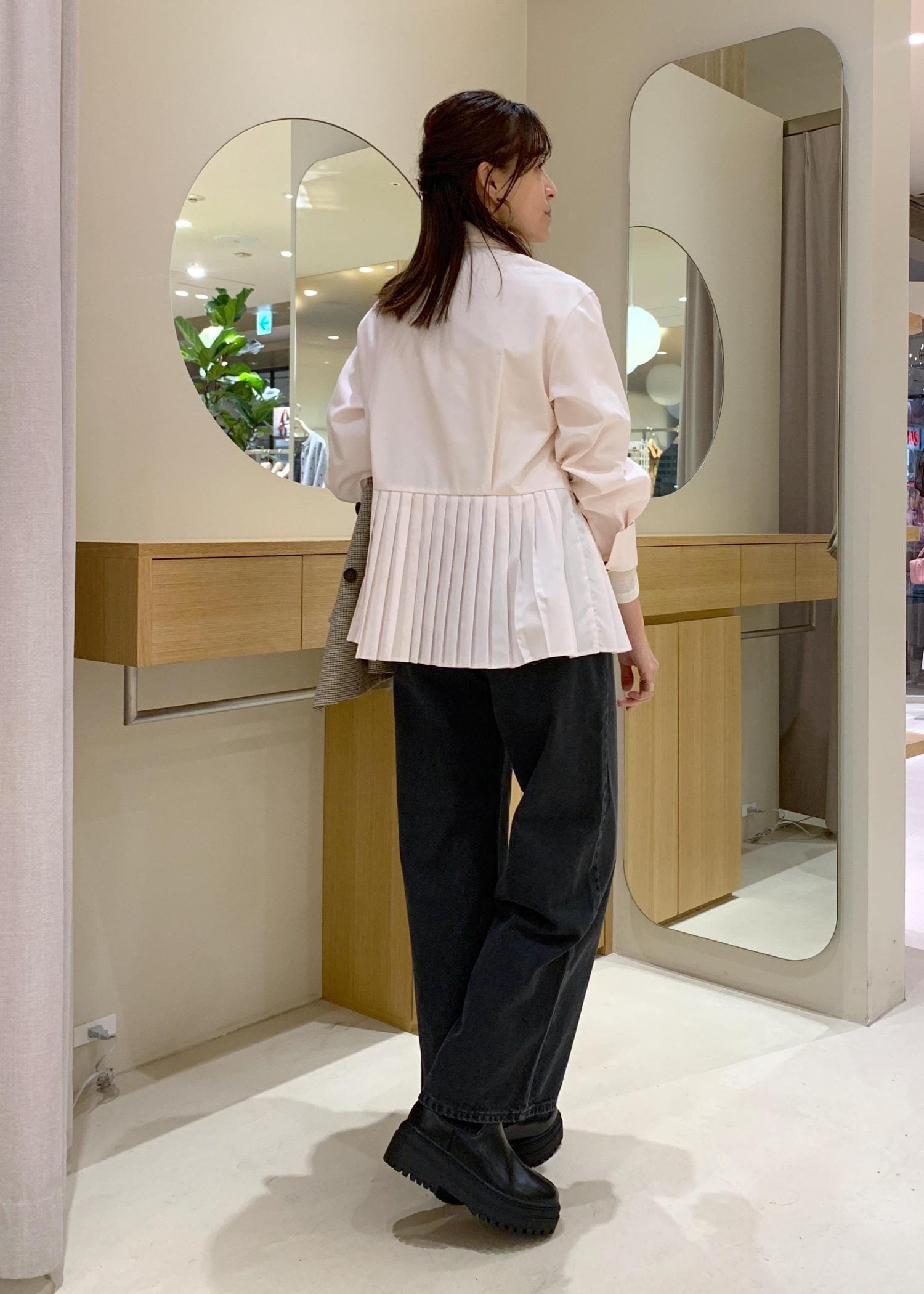 プリーツ仕様なので、腰回りの体型カバーにもなりヒップラインを気にせず着用できます!