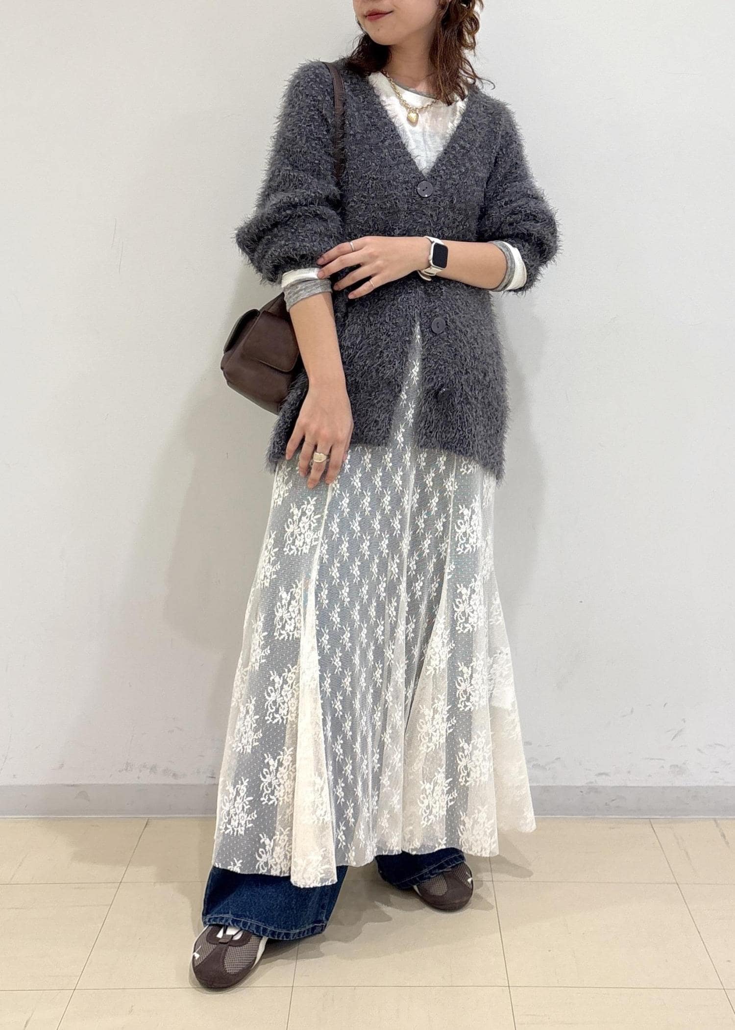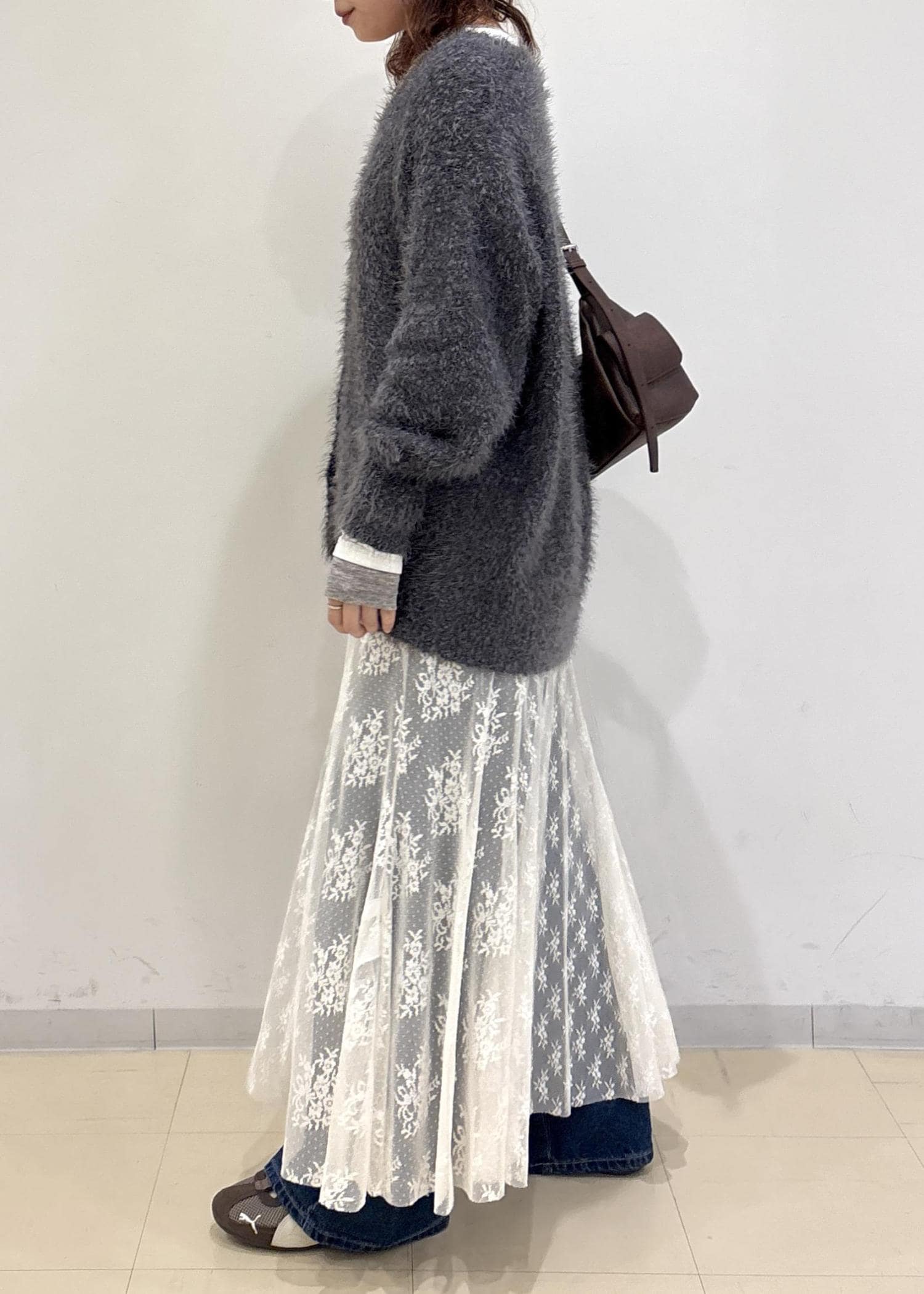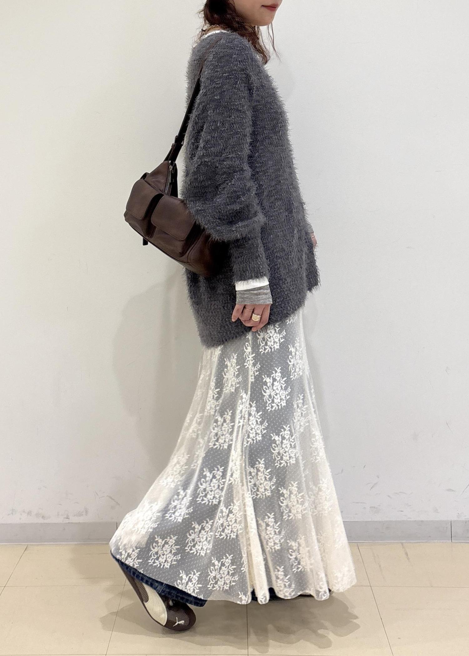 レース素材を入れることで女性らしさもプラスされ