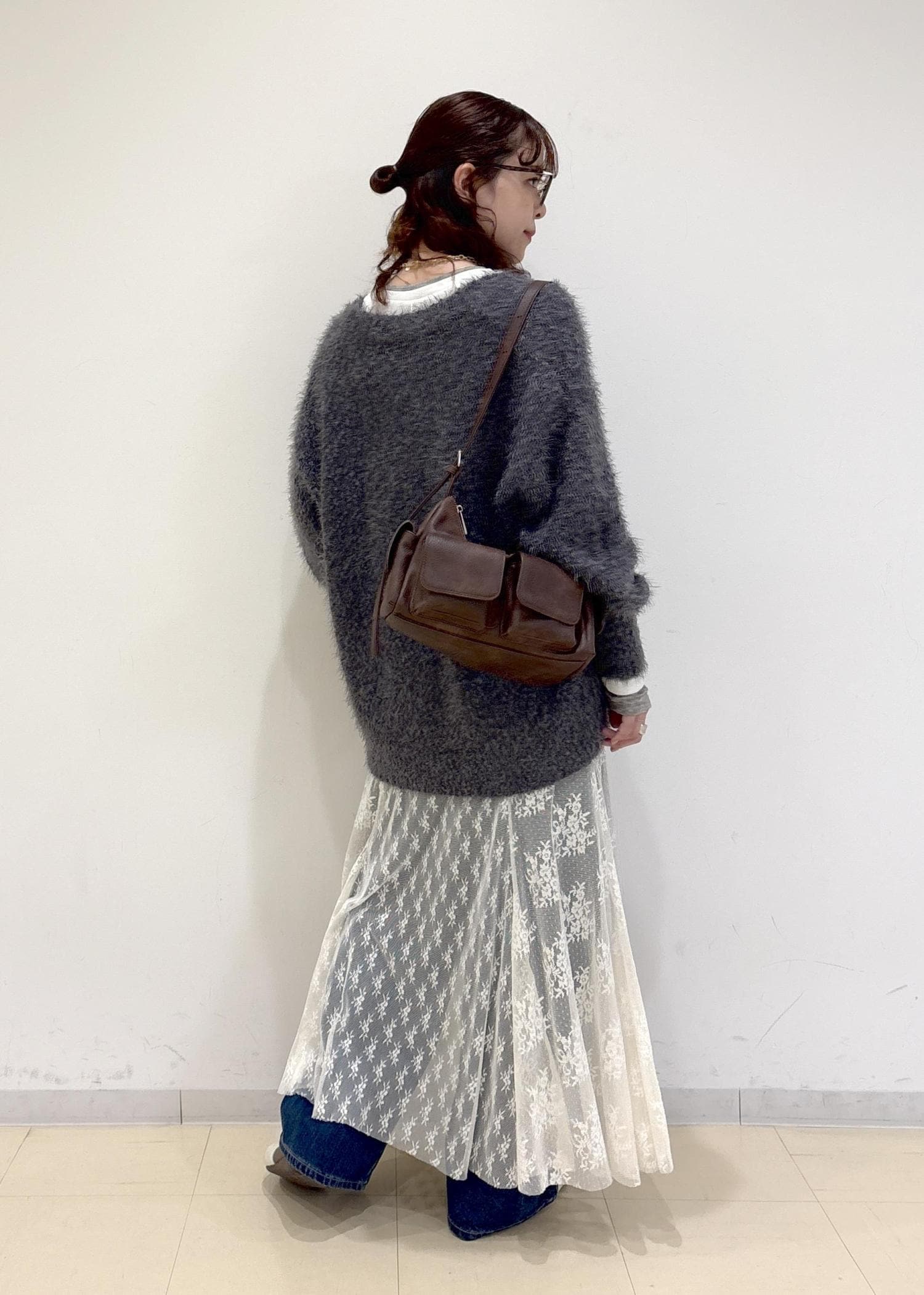 デニムにレーススカートをレイヤードさせたカジュアルコーデ!