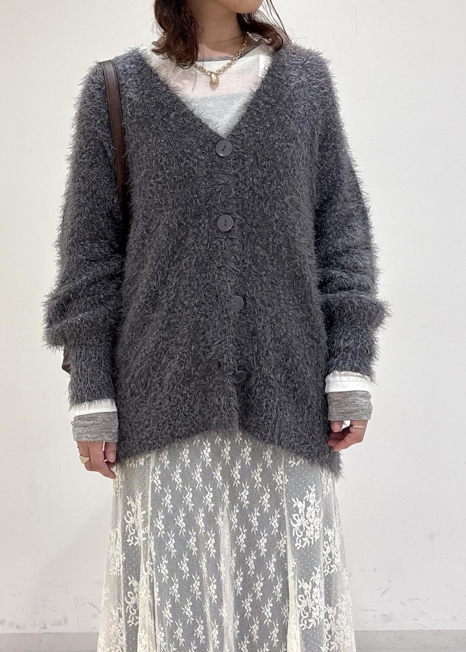 VISポップコーンヤーンラメフェザーニットカーディガン/WEB限定FSサイズスミクロ / F¥5,271レビュー160cm着用でヒップが隠れる丈感です◎