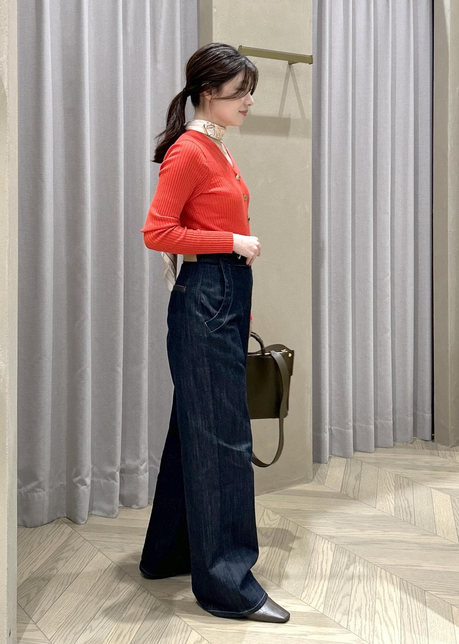 ROPÉストレッチデニム セーラーパンツ/イージーケアネイビー系 / 36¥30,800レビュー身長151㎝の私が着用して、約5㎝程のヒールを履いてギリギリ床に付かない丈感です。