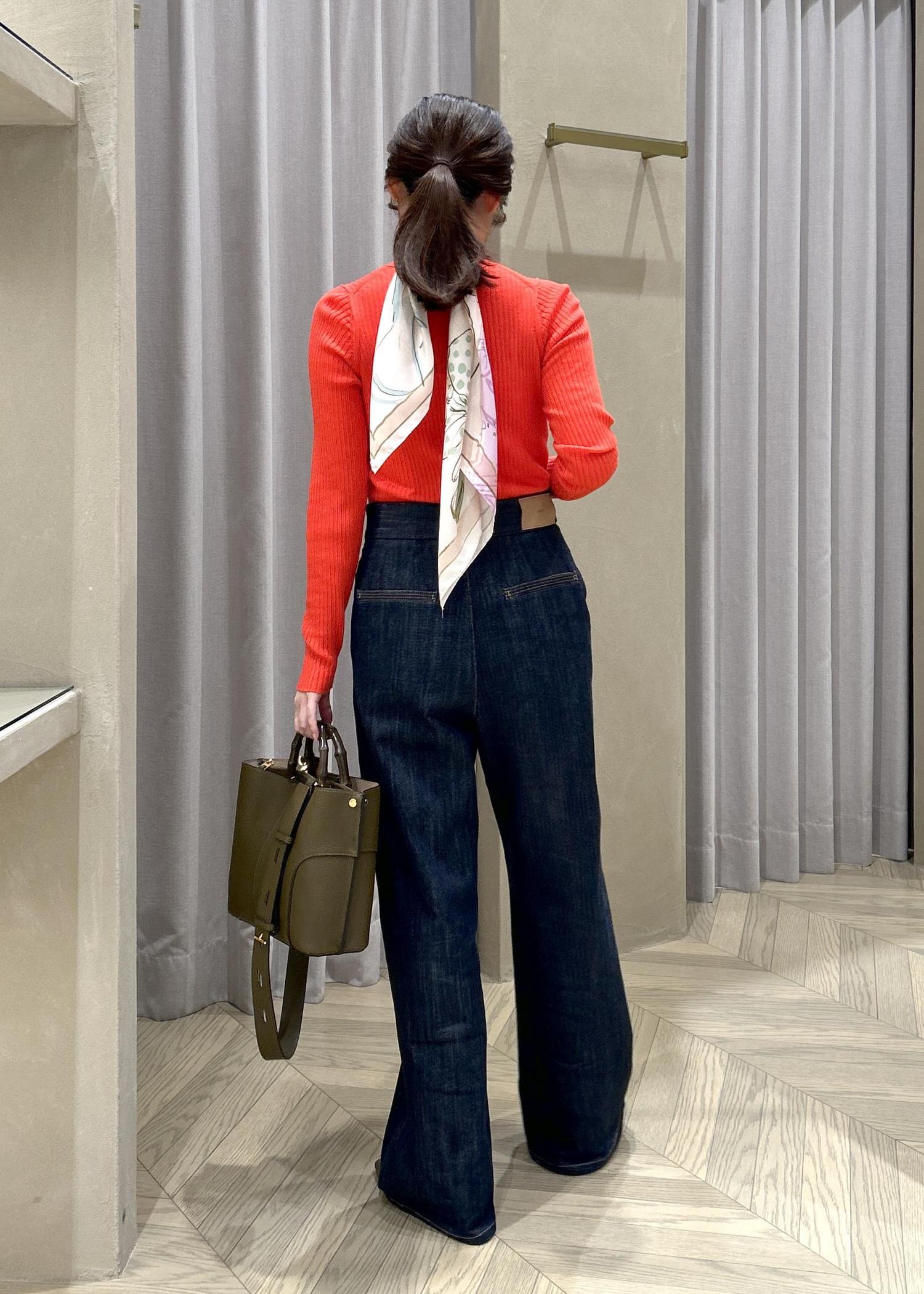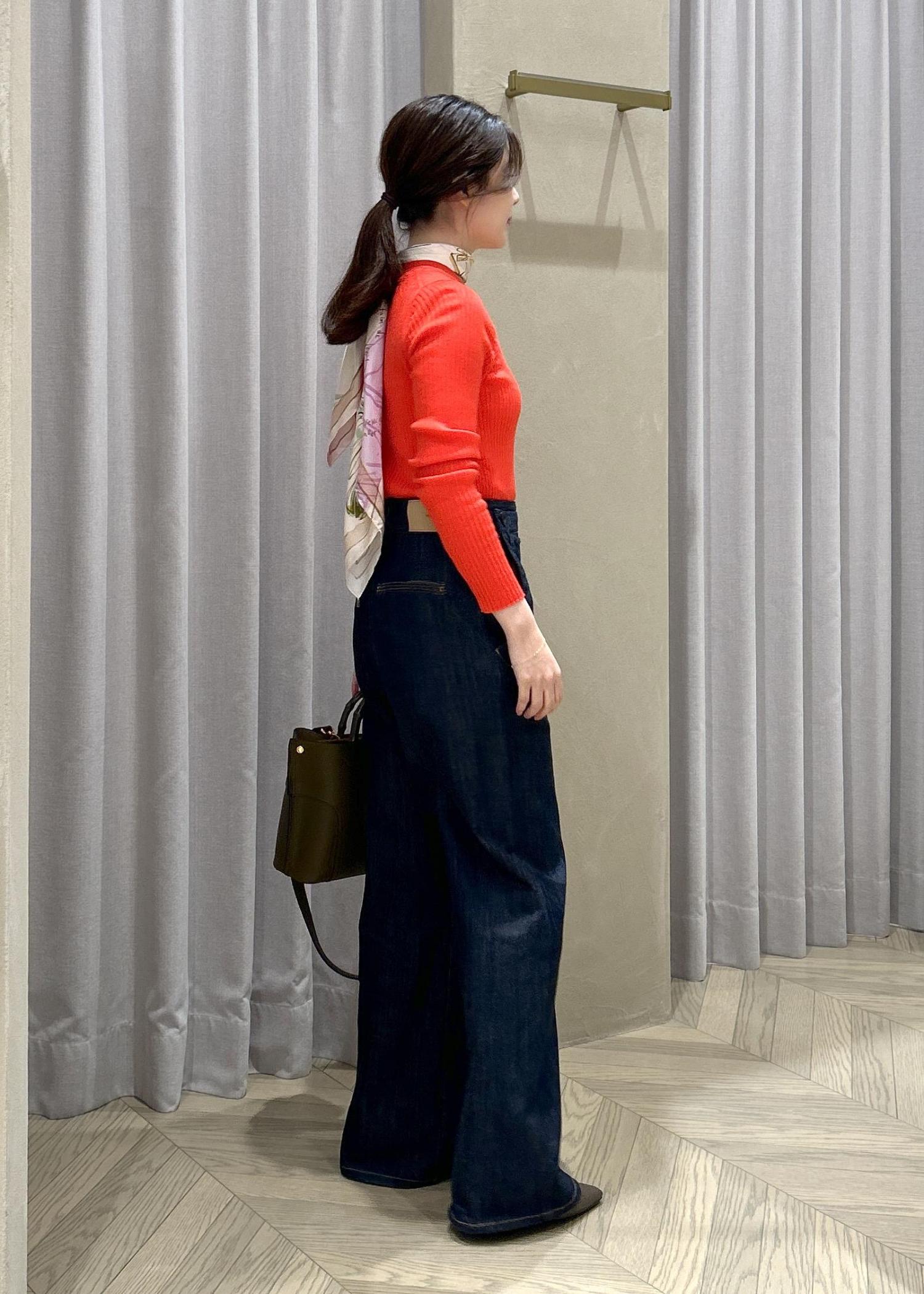 ハイウエストで脚長効果があり、スタイルアップして見えます◎