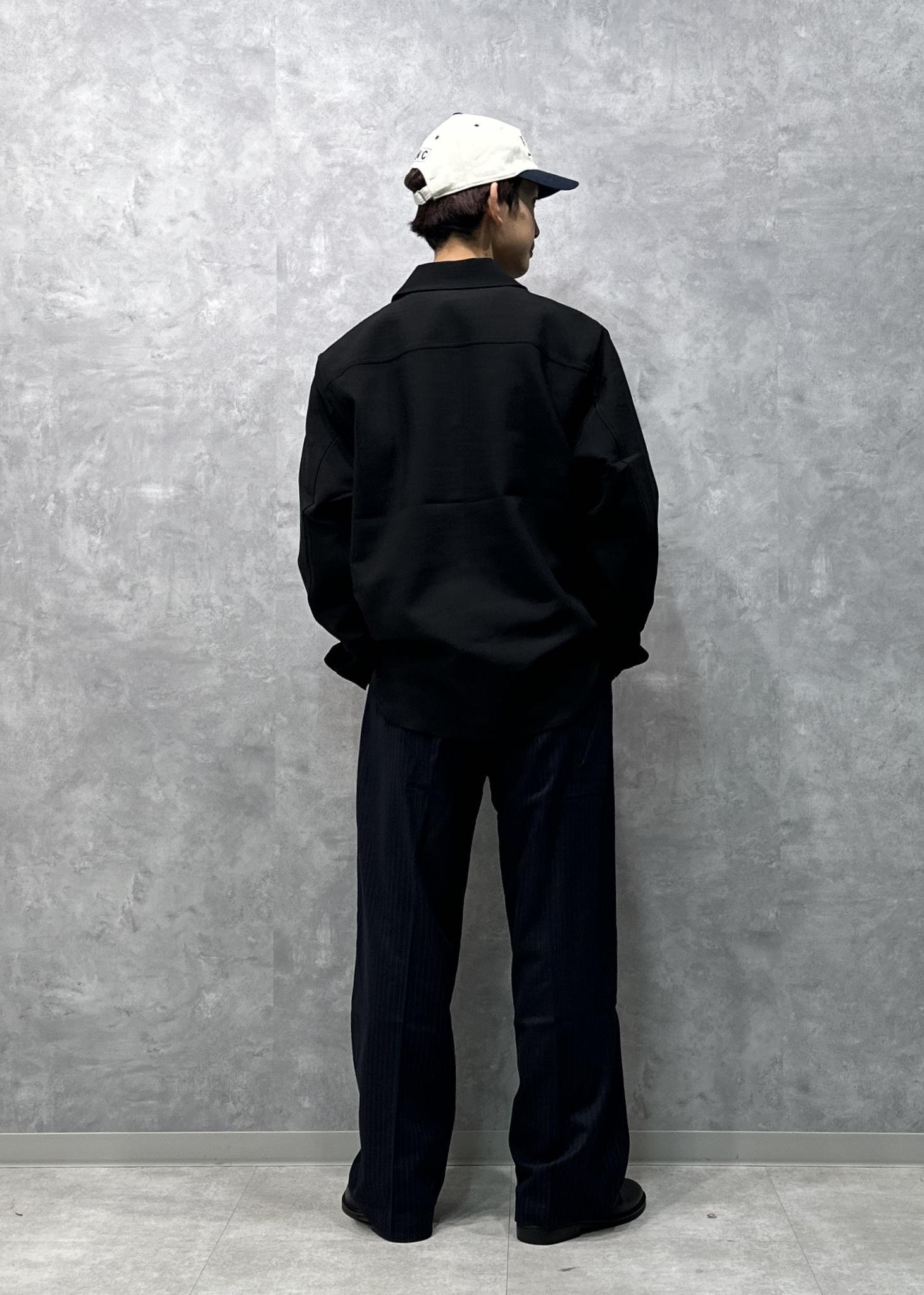 シャツとジャケットの中間の厚さです。羽織りとしても、寒い気温の日はインナーとしても使いやすいアイテムです。気温調節がしやすく汎用性の高さに優れています。ゆとりのあるサイズ感で、丈は長くも短くもないちょうど良い長さです。