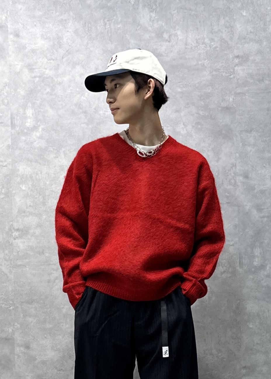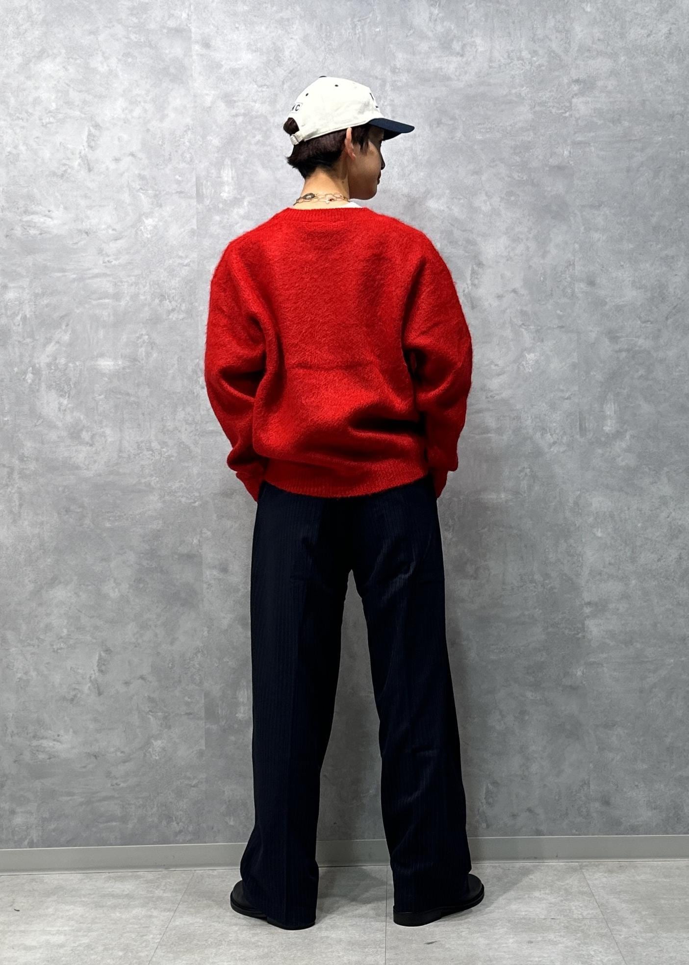 オーバーサイズのVネックニット。一枚で着ても様になるシルエットです。ふわふわで柔らかい生地感で触り心地着心地とても良いです。着ていて温かく、それでいて軽やかです。