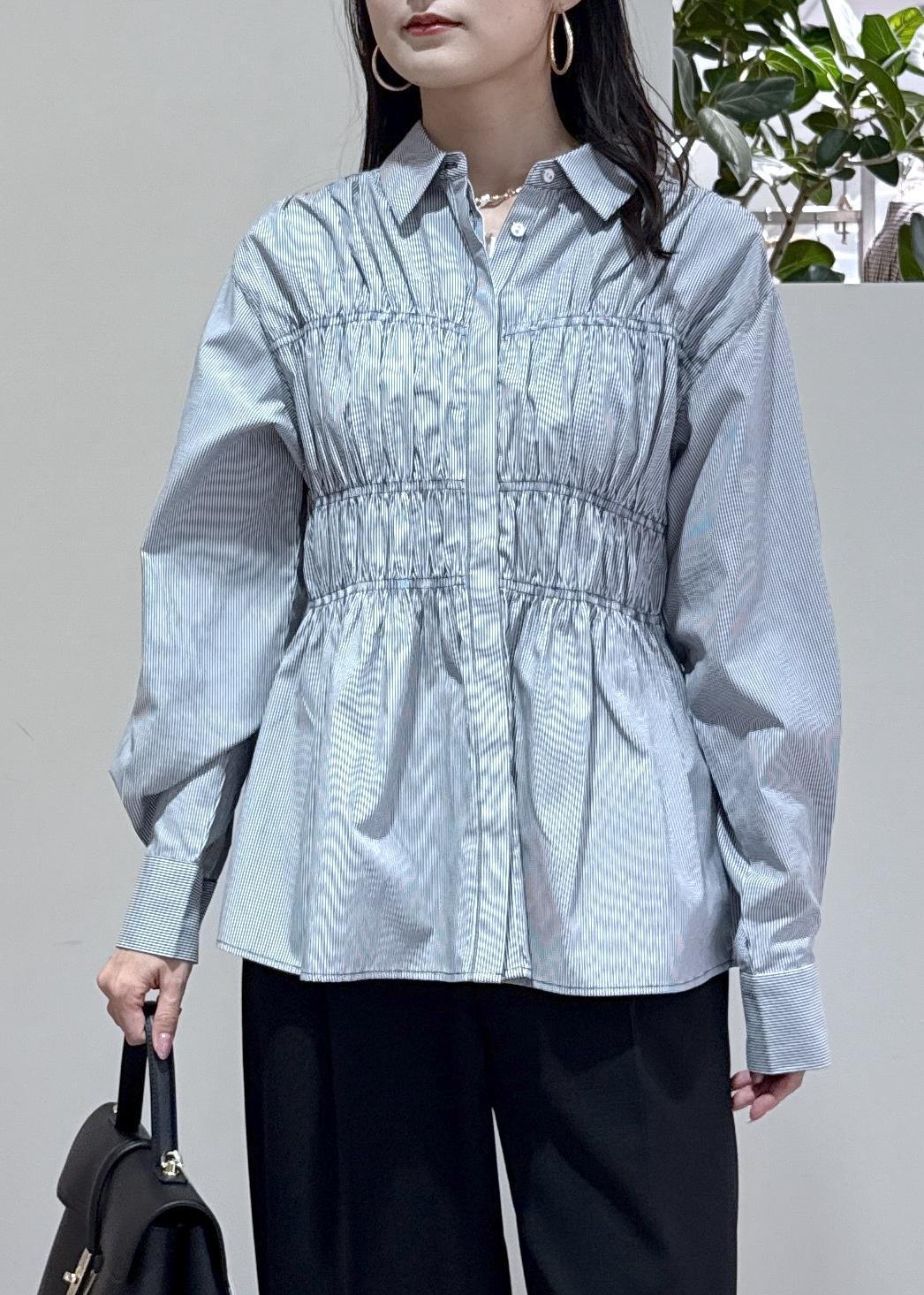 VISシャーリングデザインシャツネイビー系 / F¥5,489レビュー長めの丈ですが、シャーリングデザインですっきり見え◎