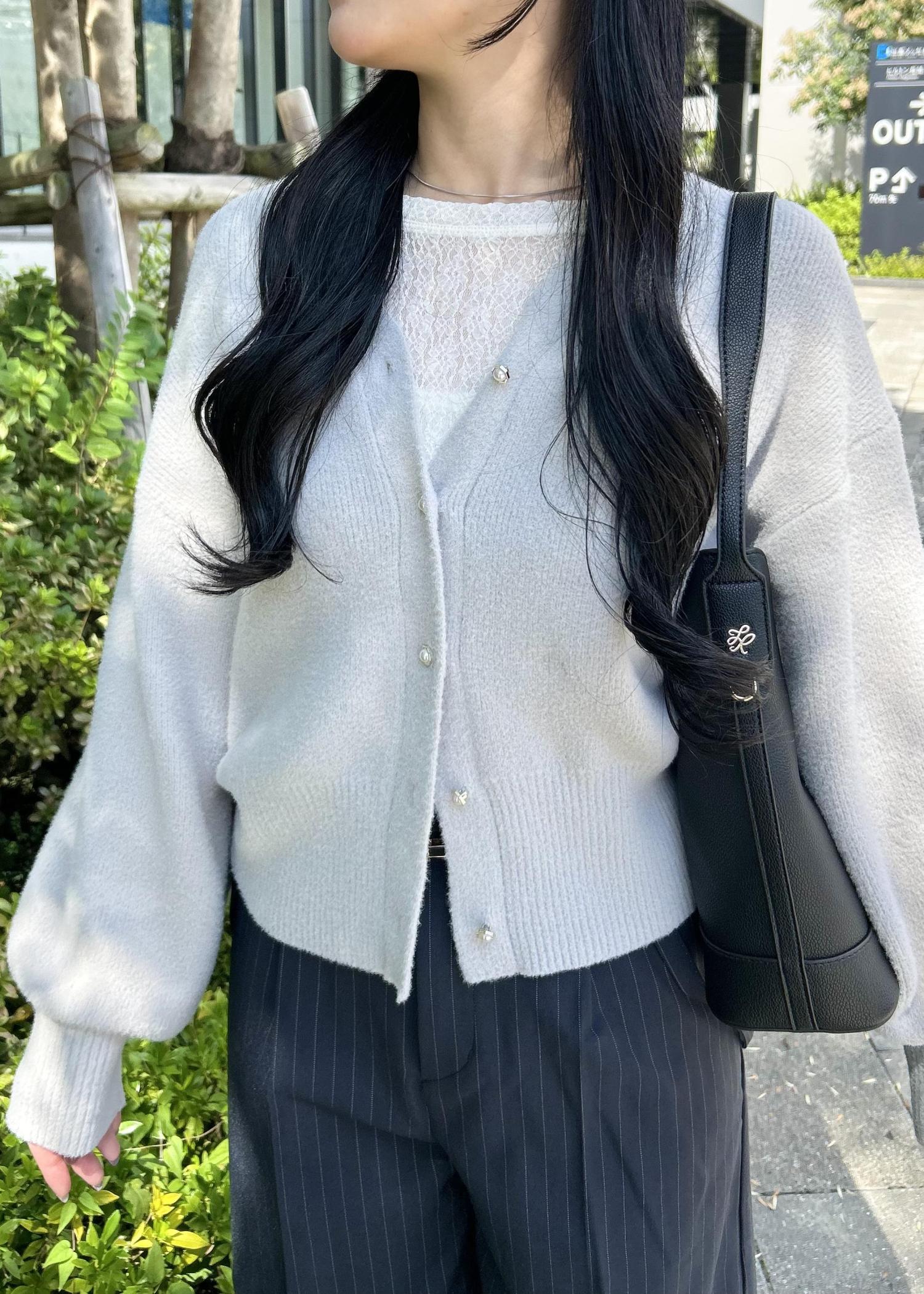 ボタンがパールになっていて、上品さのあるカーディガンです。 -