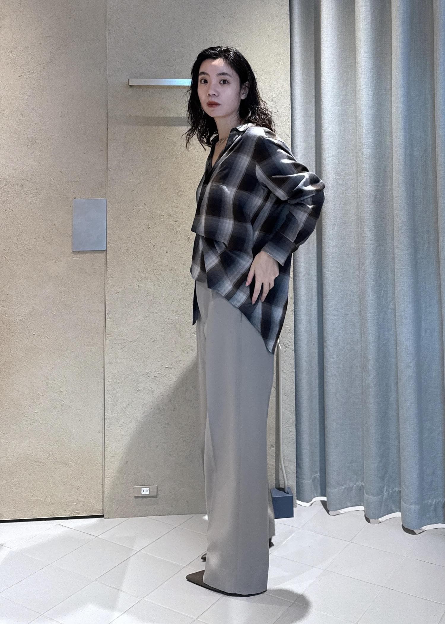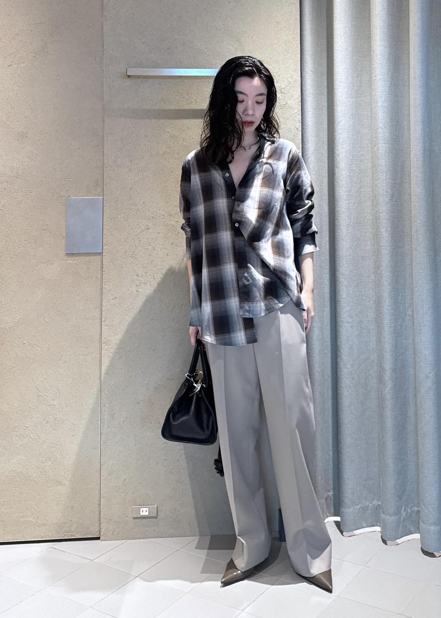 デニムなどカジュアルでまとめるよりも、キレイ目のスラックスや胸元に抜け感をあるスタイリングでシックやフェミニンの要素をプラスするのがおすすめです。