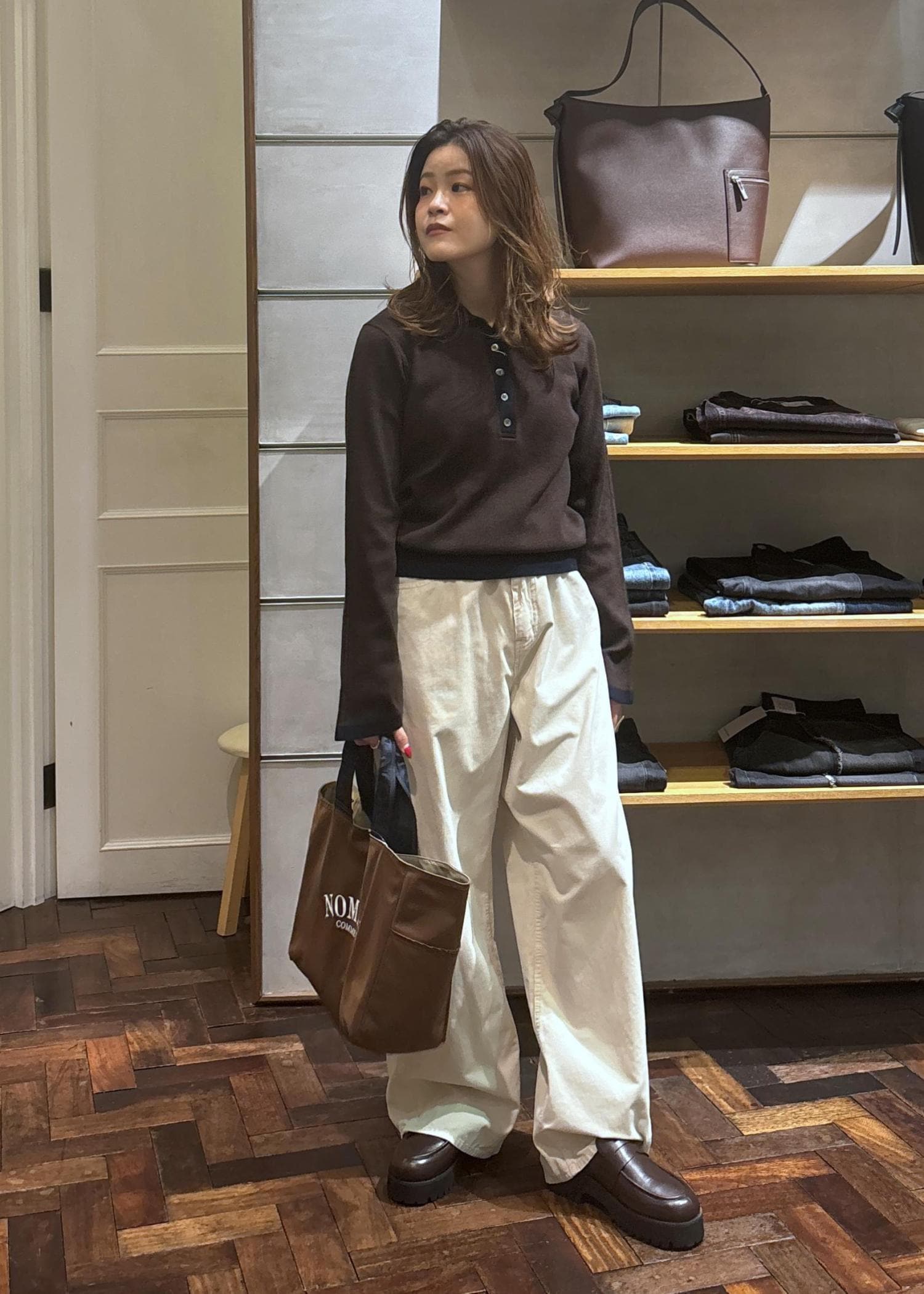 カジュアルかつメンズライクなイメージのあるポロアイテムですが、ニット素材ということもあり綺麗めにもきていただける1枚です!!