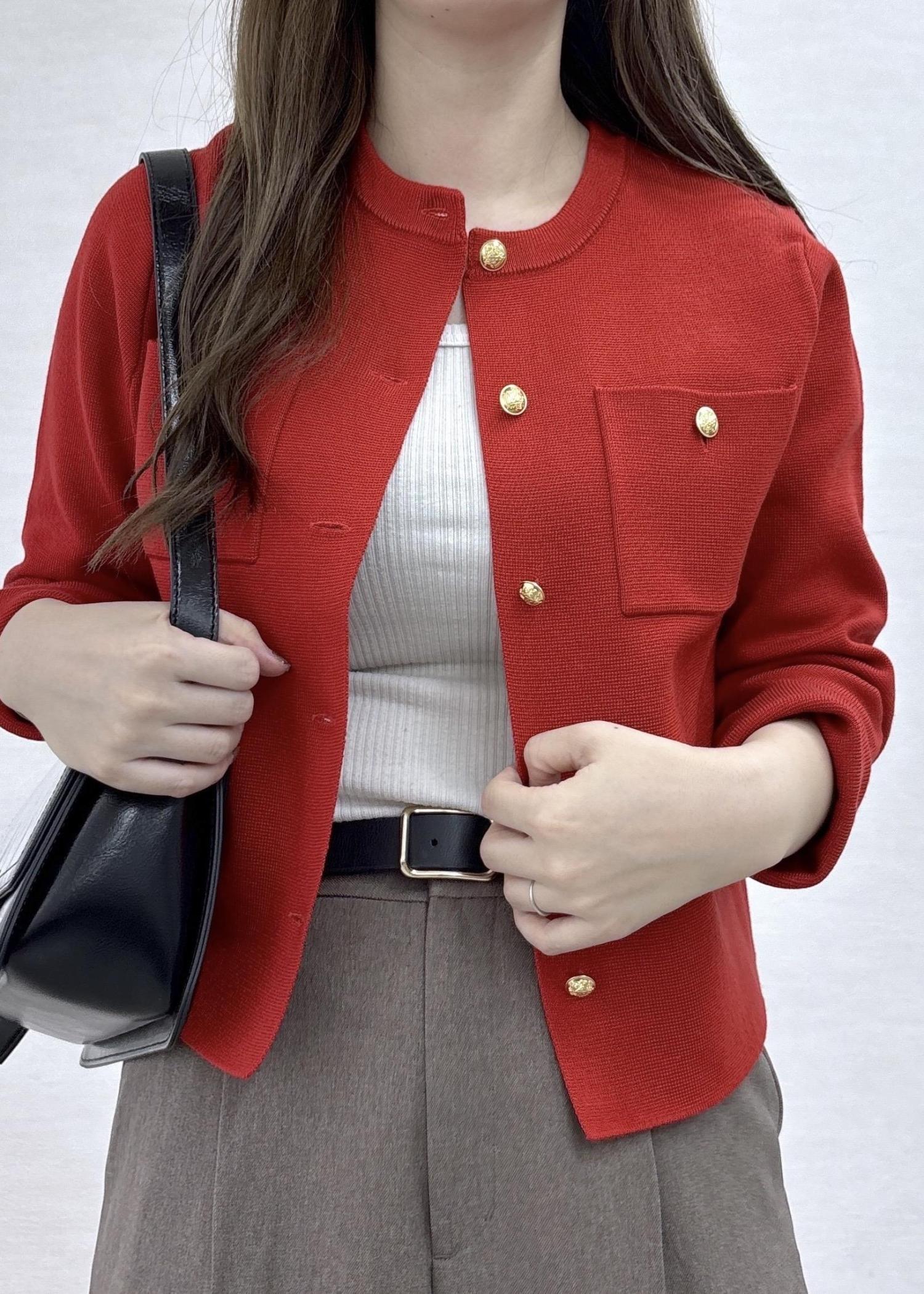 ROPÉ PICNIC【洗濯機OK】ミラノリブニットカーディガンレッド / M¥4,994レビュー【素材感】