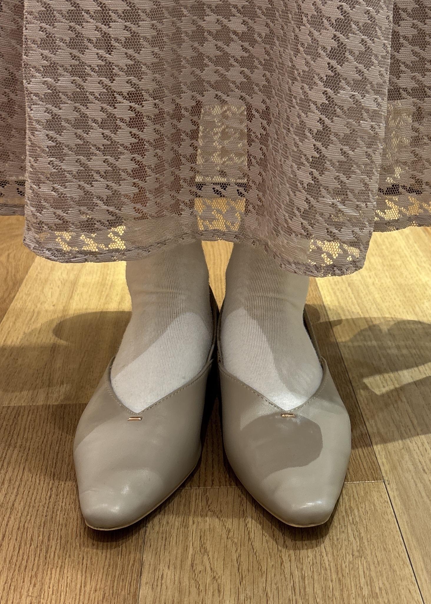 パンプスは柔らかい印象になるようにベージュを合わせました。