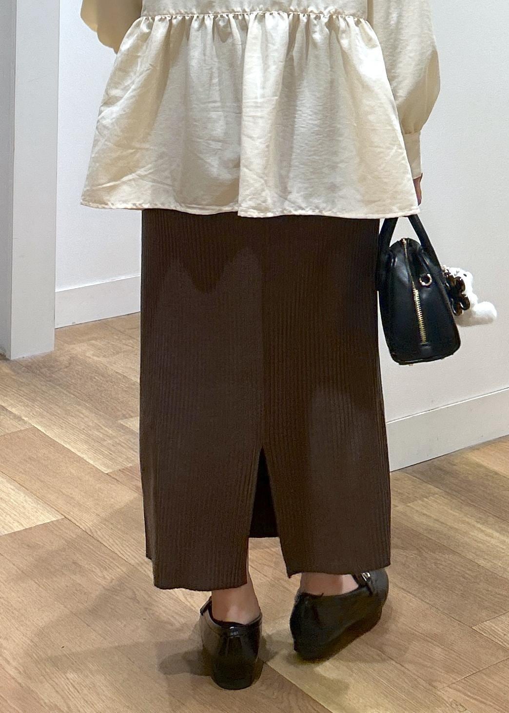 ROPÉ PICNICトタンテレコ Iラインリブニットスカートカーキ系 / 36¥4,499レビューウエストゴムですが締め付け感がなく足捌きもいい、かつ伸縮性のある素材で履き心地がとても良いです。