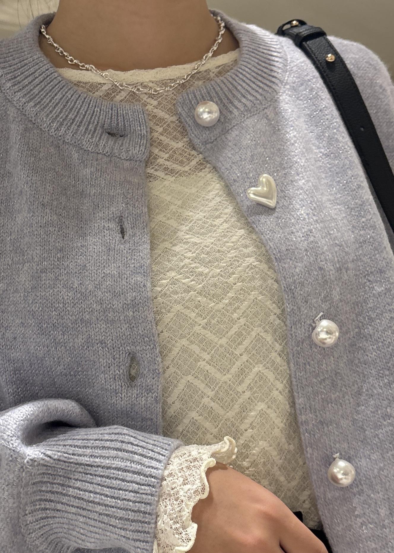 ハートアソートパール釦ラメミックスカーディガン/イージーケア・一部WEB限定カラー