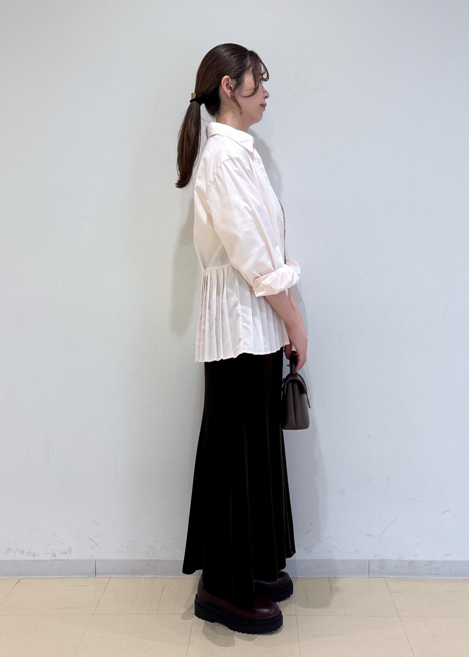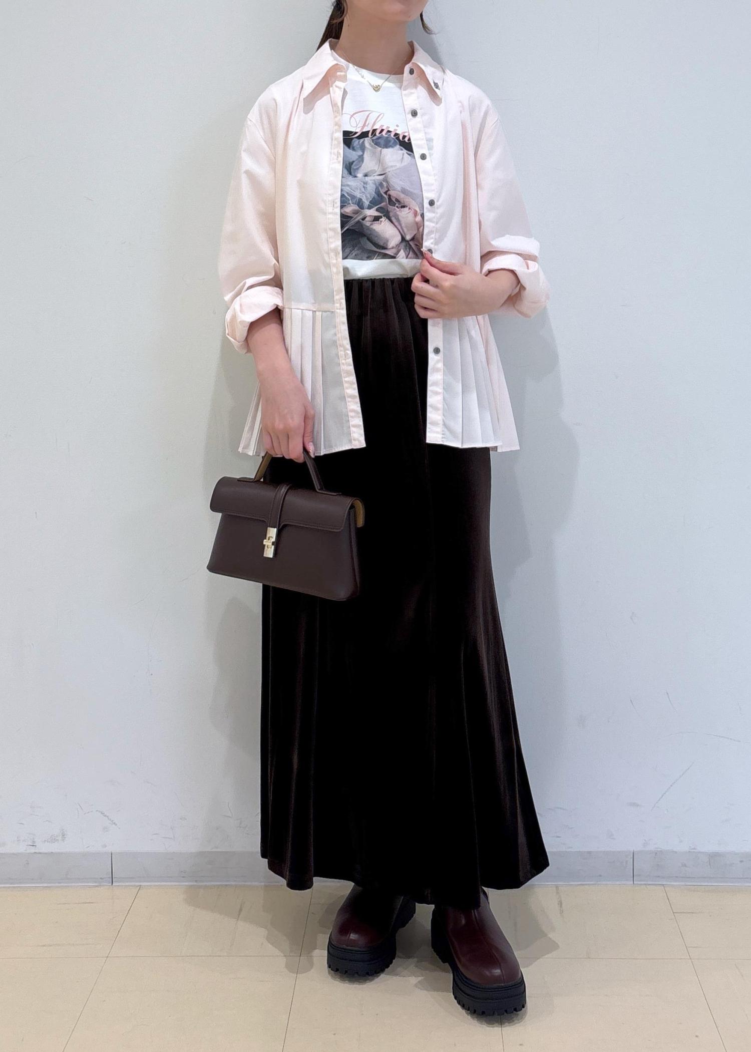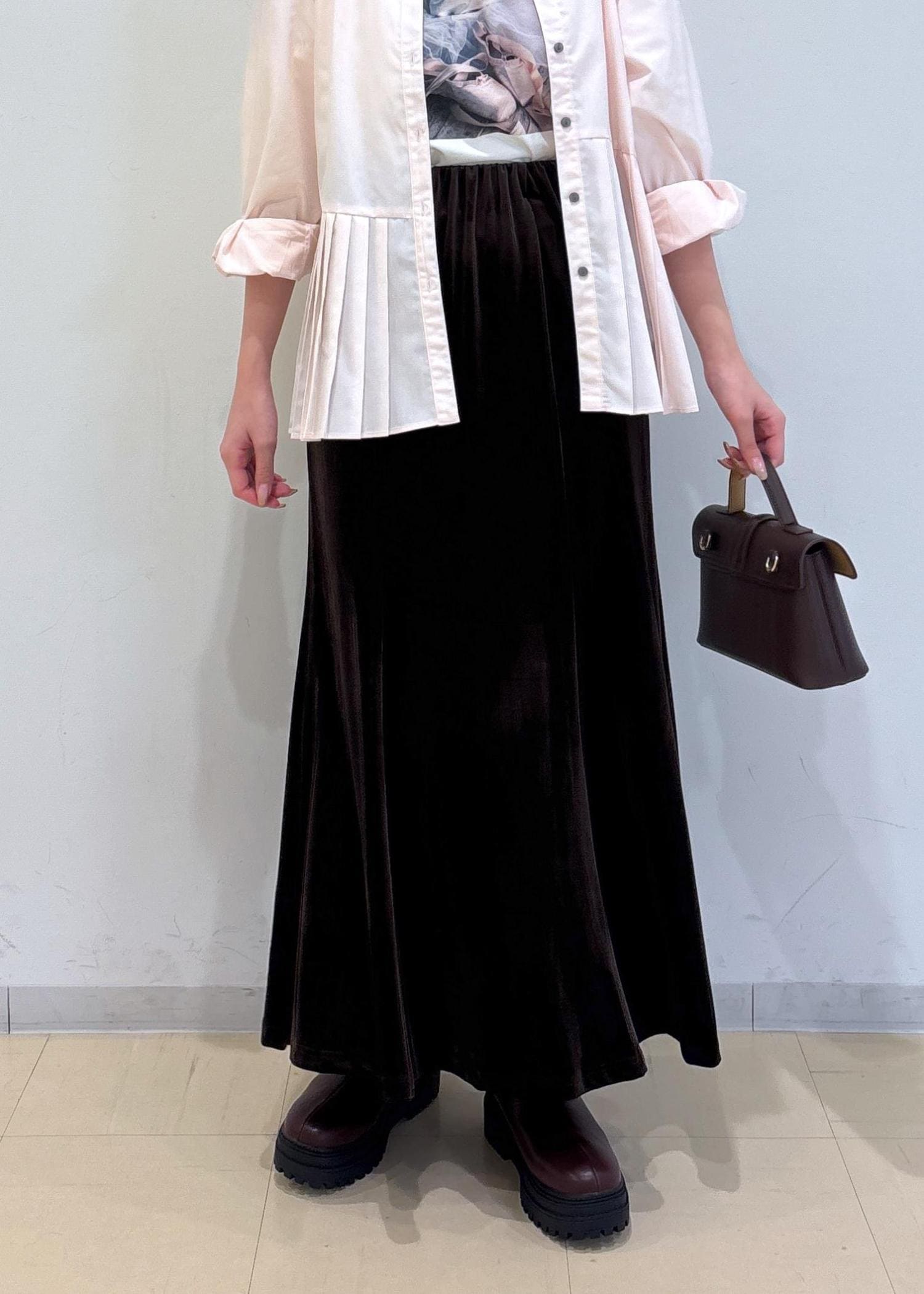 ベロア素材のスカートが女性らしい印象で華やかに見せてくれます♪