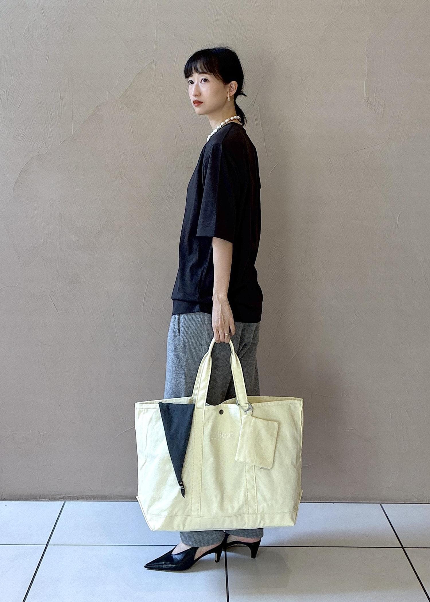 SALON adam et ropé【L.L.Bean for SALON(エル・エル・ビーン)】別注グローサリー・トート&チャームポーチイエロー系 / F¥7,920レビューかなり大判のトートバッグ。
