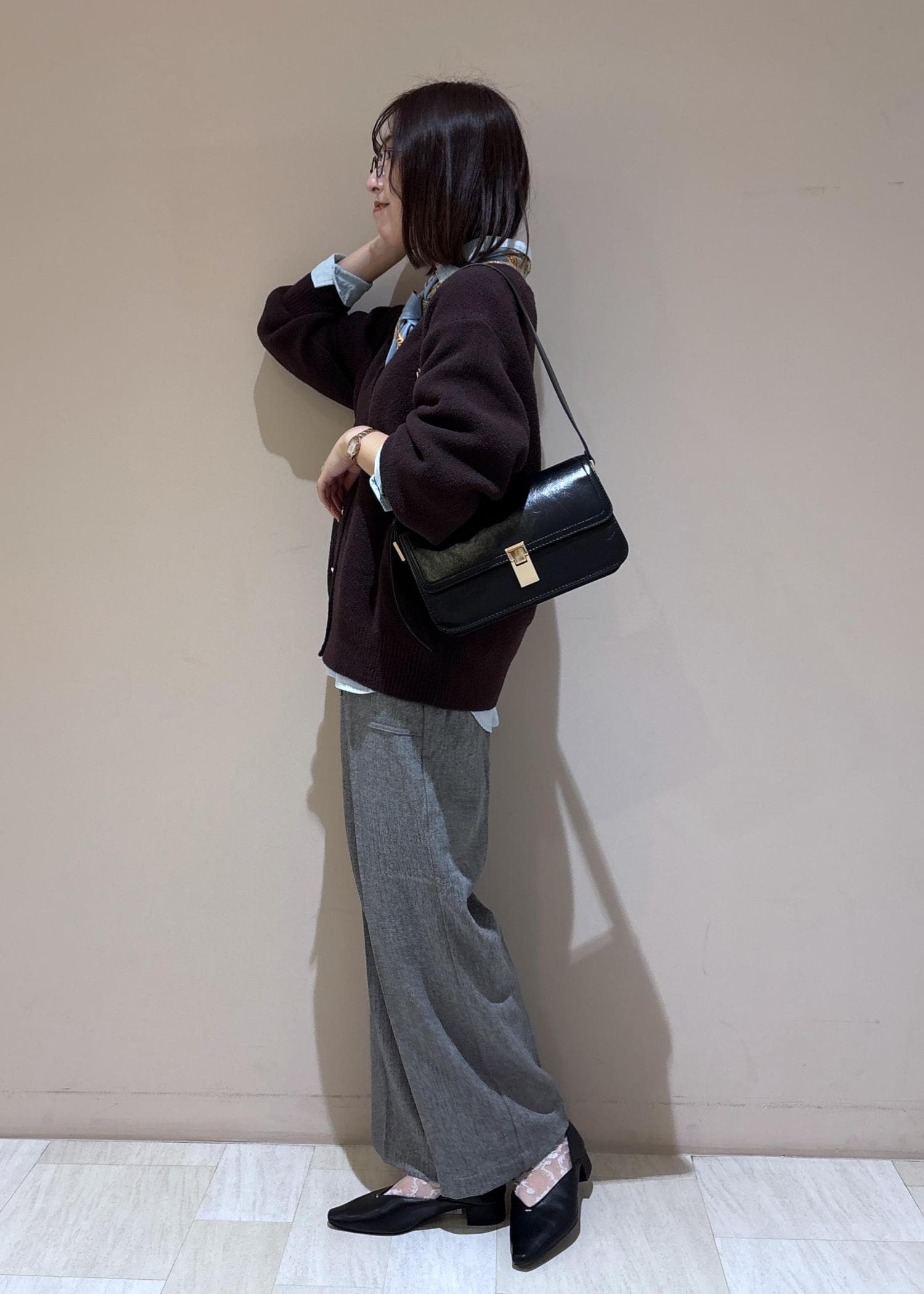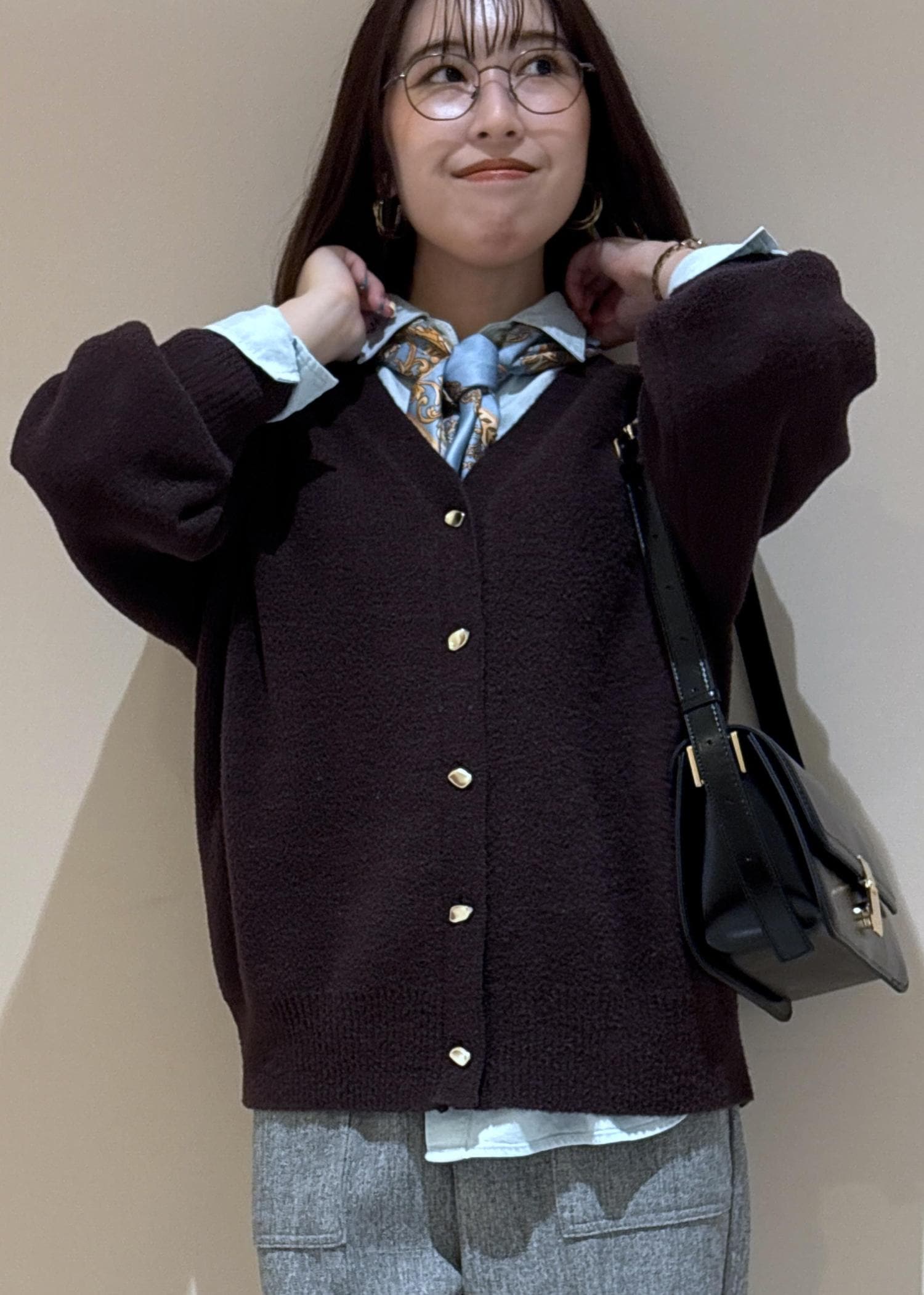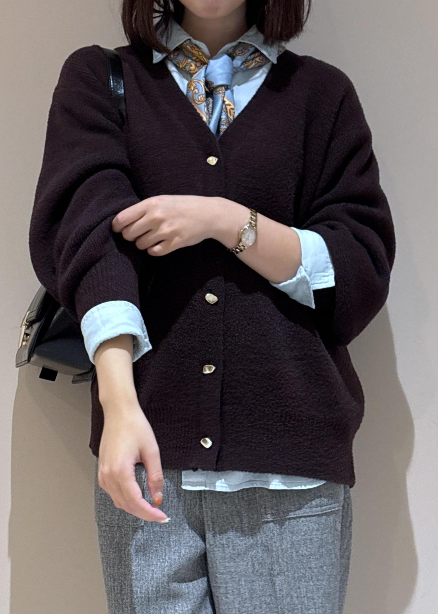 もちふわカーディガン×スカーフアレンジコーデ