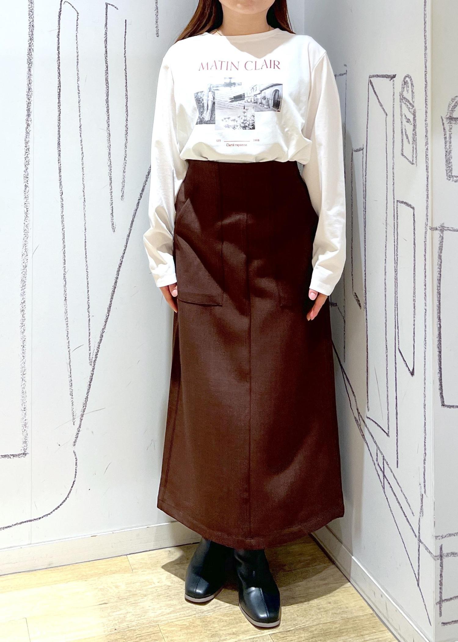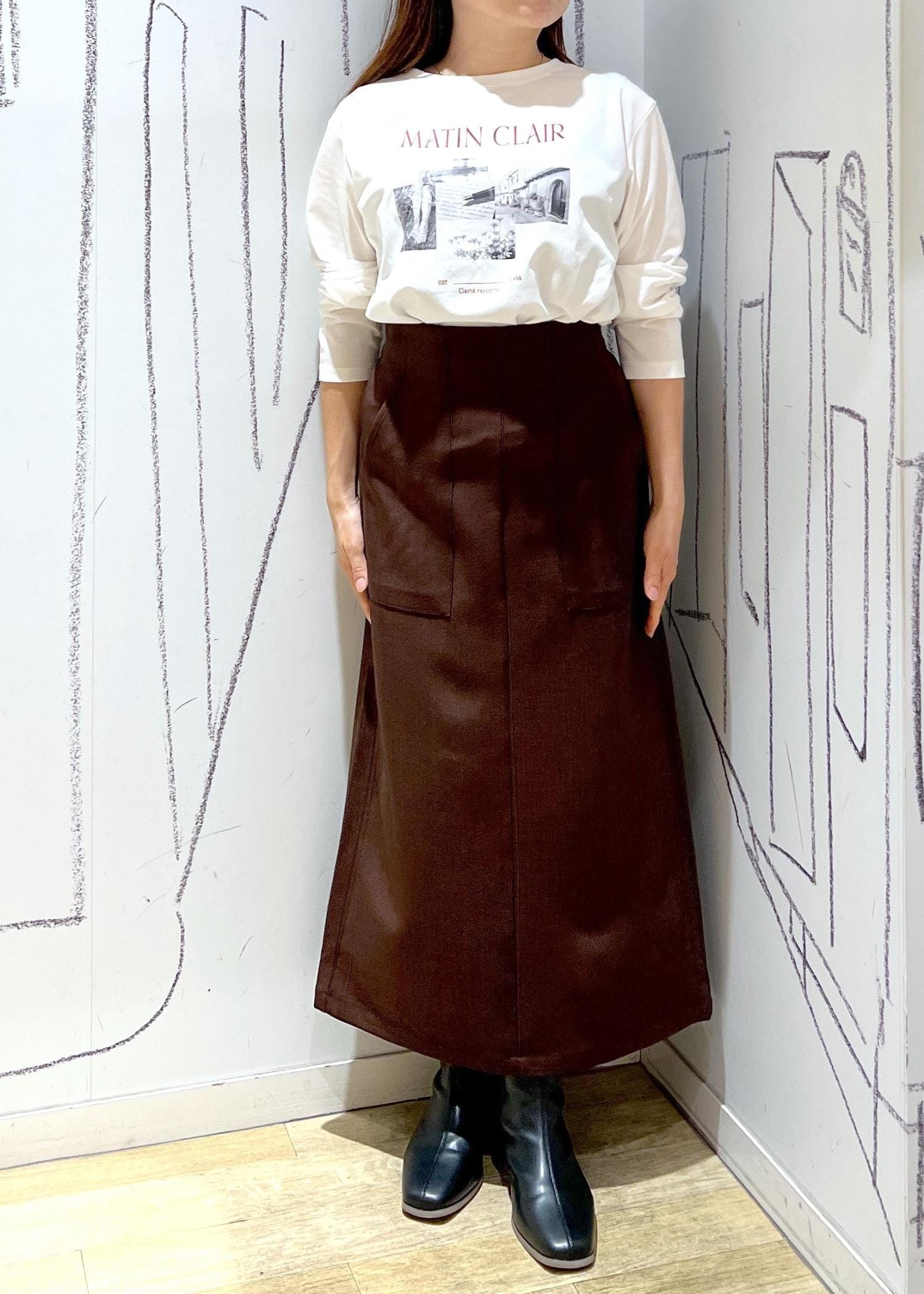 ROPÉ PICNICフロントポケットアイラインスカートダークブラウン / 36¥3,842レビューアイラインスカートは大きなポケットがあることで腰の張りが目立たず、縦のラインが強調されるセンターラインで小柄さんにもオススメです。お腹周り気になる私でもスッキリ響かず着れるのが嬉しいです◎