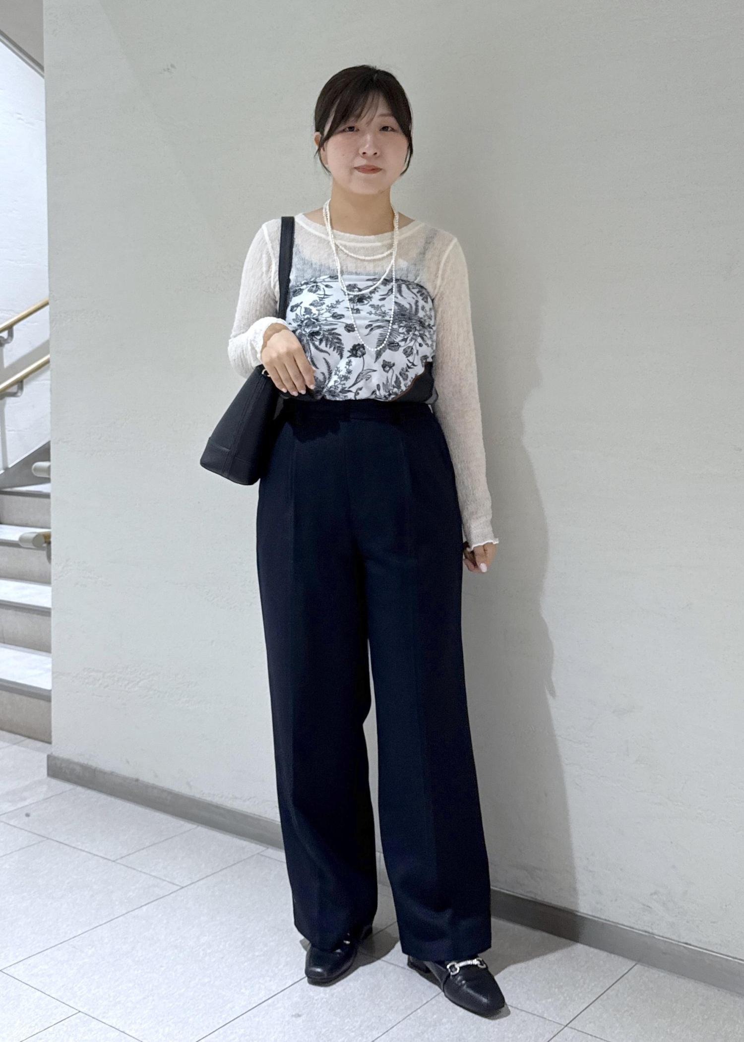 今まで丈がジャストより少し短く感じていたので、余計に下半身が太く見えてしまうのが悩みでしたが、ズルっと着れる丈感で脚が長く見せれます。