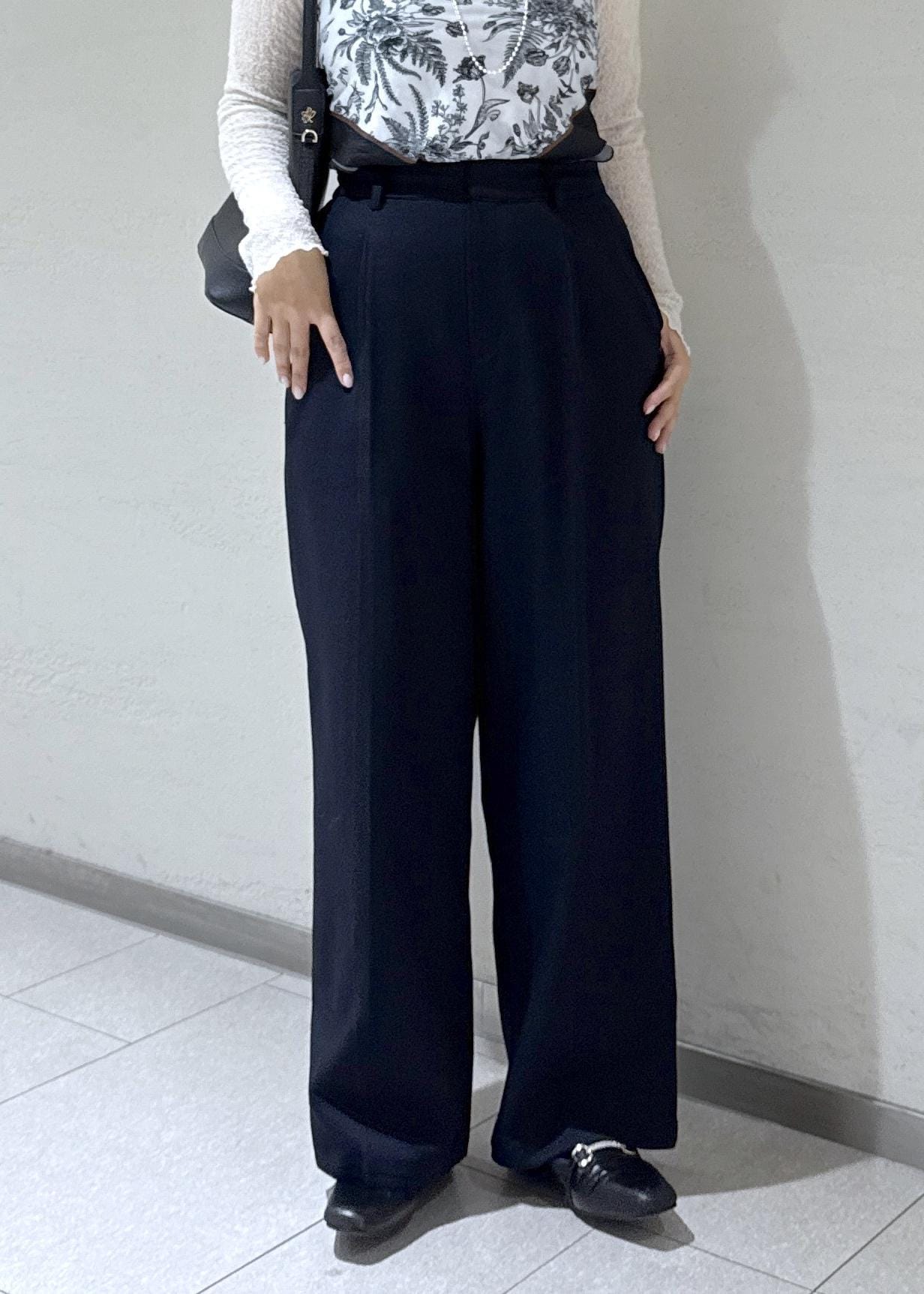 ROPÉ PICNIC【WEB限定・丈長め】レディハンサムシリーズ ウールライクウエストタックセミワイドパンツネイビー / LT¥5,489レビュー高身長さんに嬉しい着丈の長いタイプ。