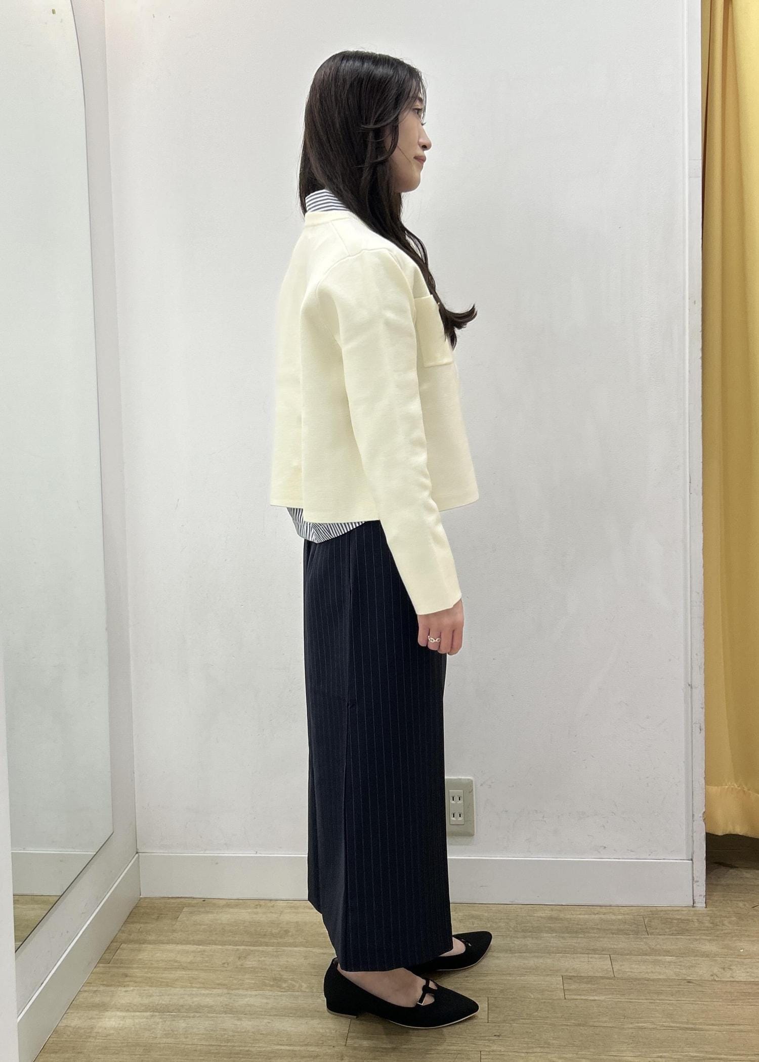 程よくゆとりがあり着丈が短めでスッキリシルエットです。
