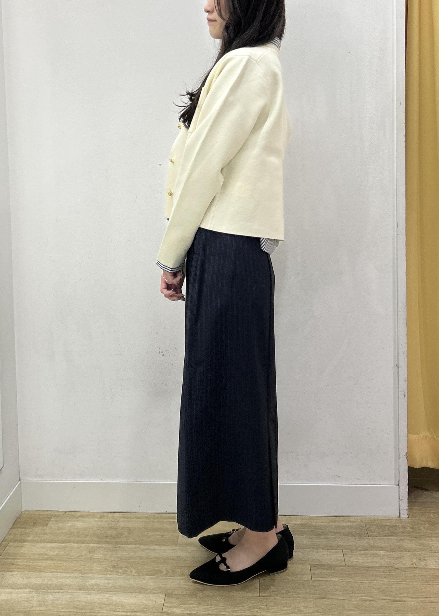 36サイズは着丈が短めでふくらはぎが隠れる長さです。