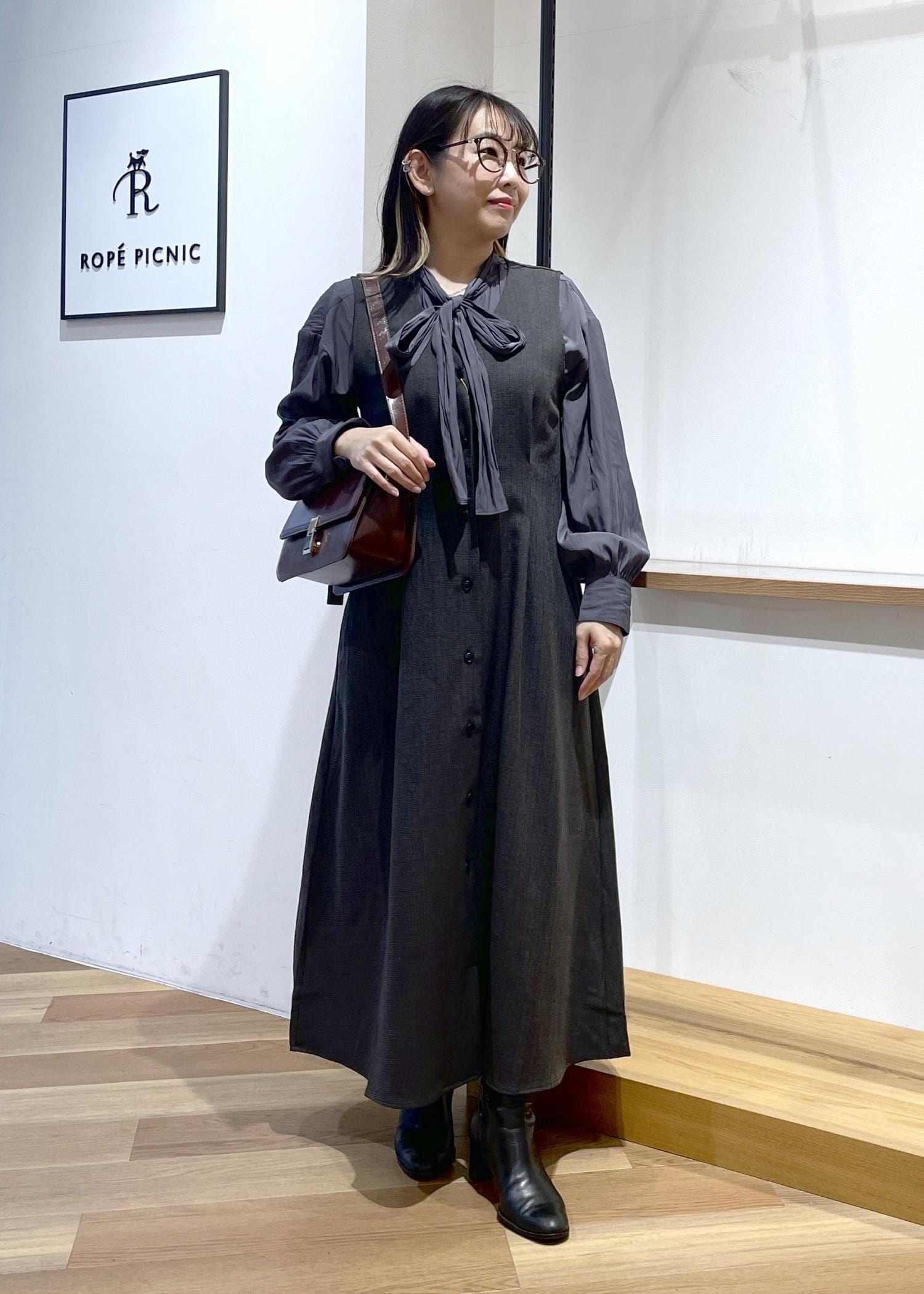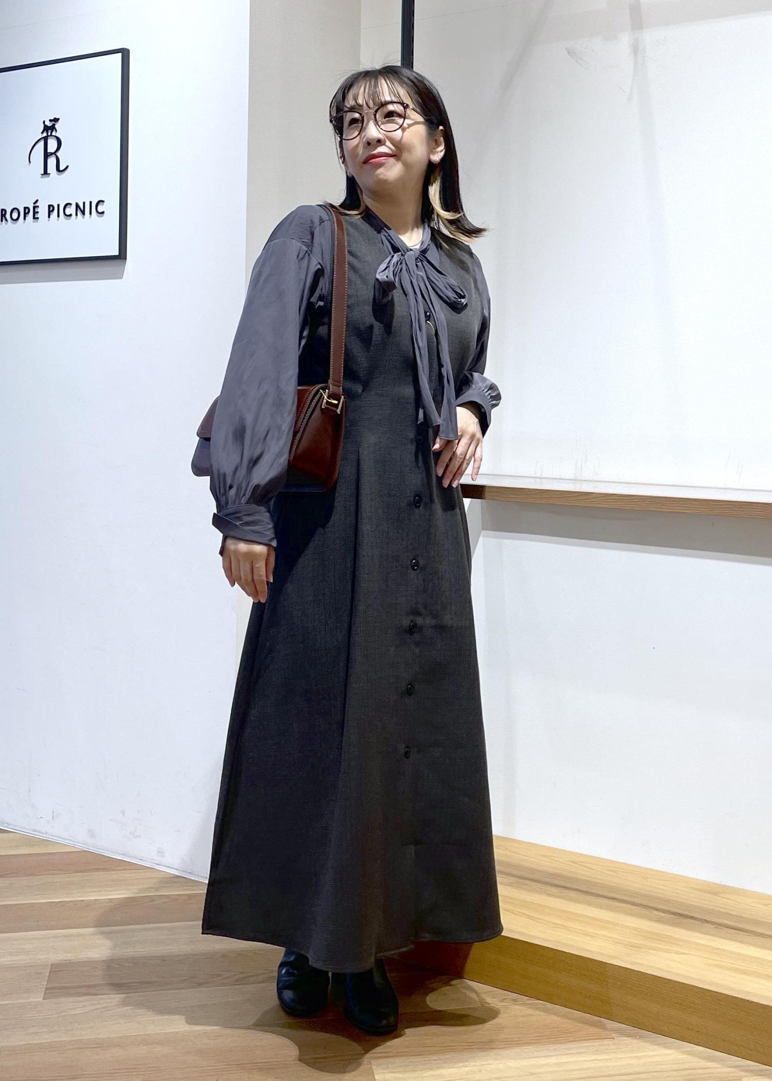 ROPÉ PICNICカッセンリボンブラウスチャコール / F¥3,842レビューリボンが可愛いブラウスです。1枚着でももんろんですが、これからの季節はレイヤードに大活躍です○