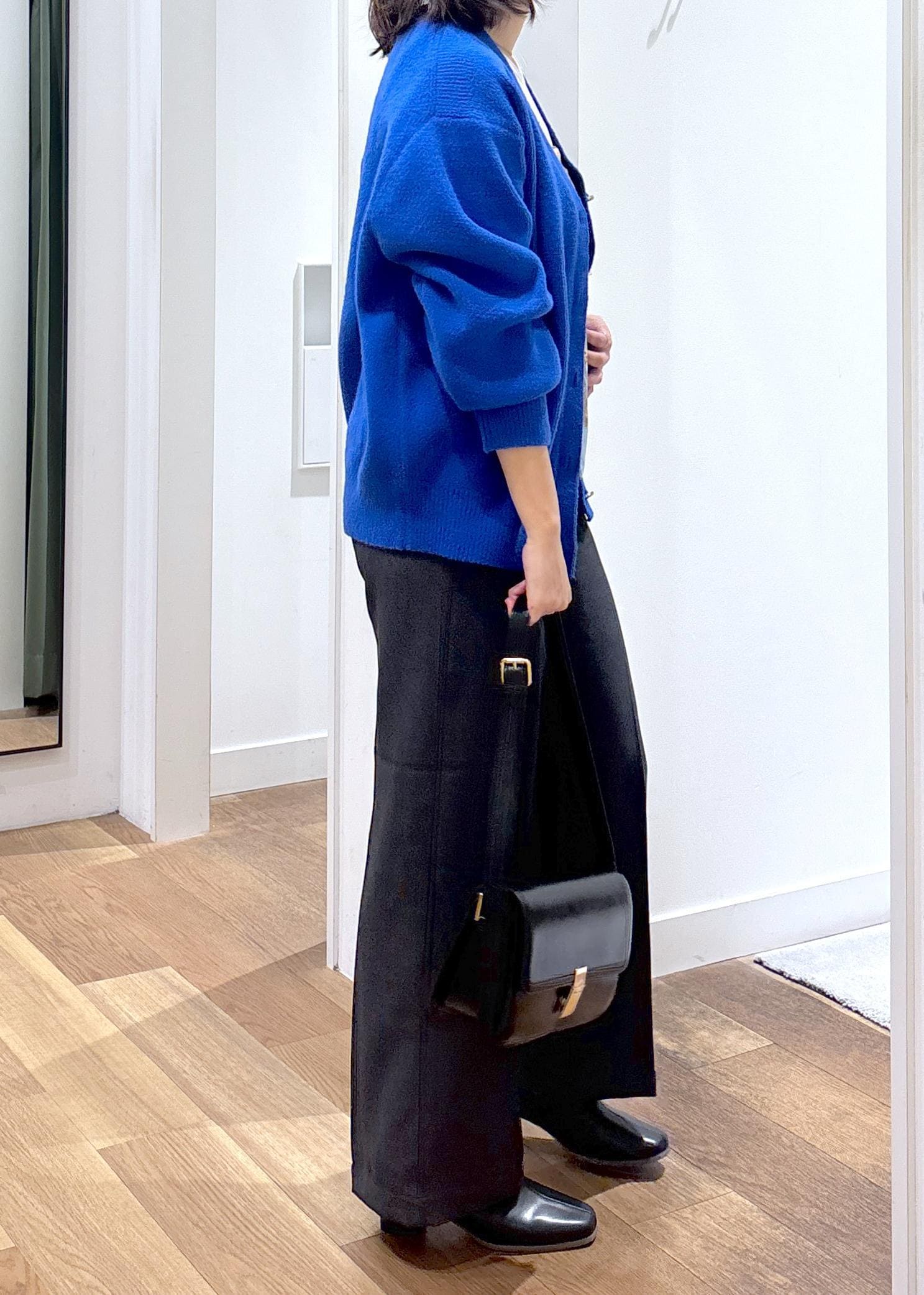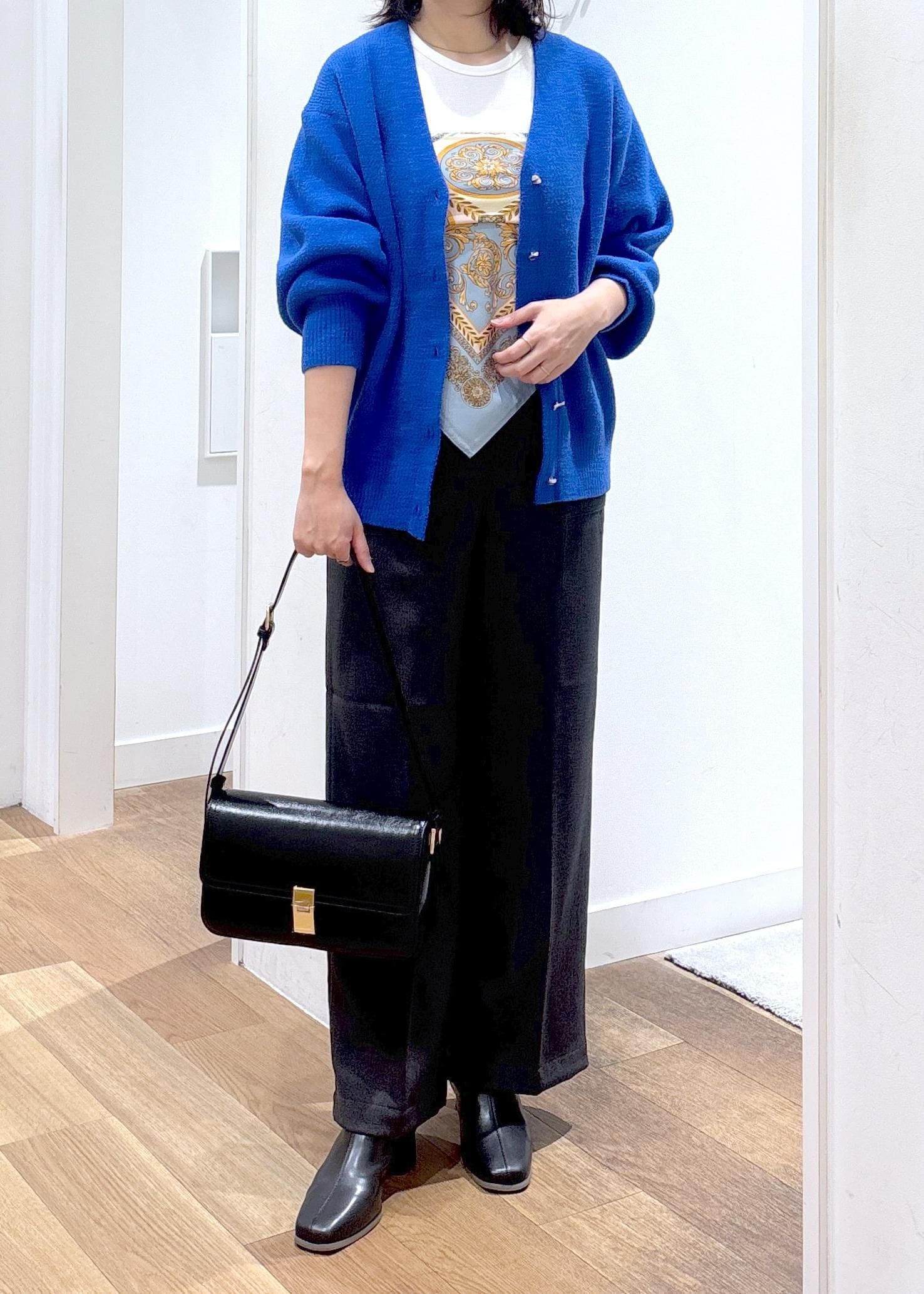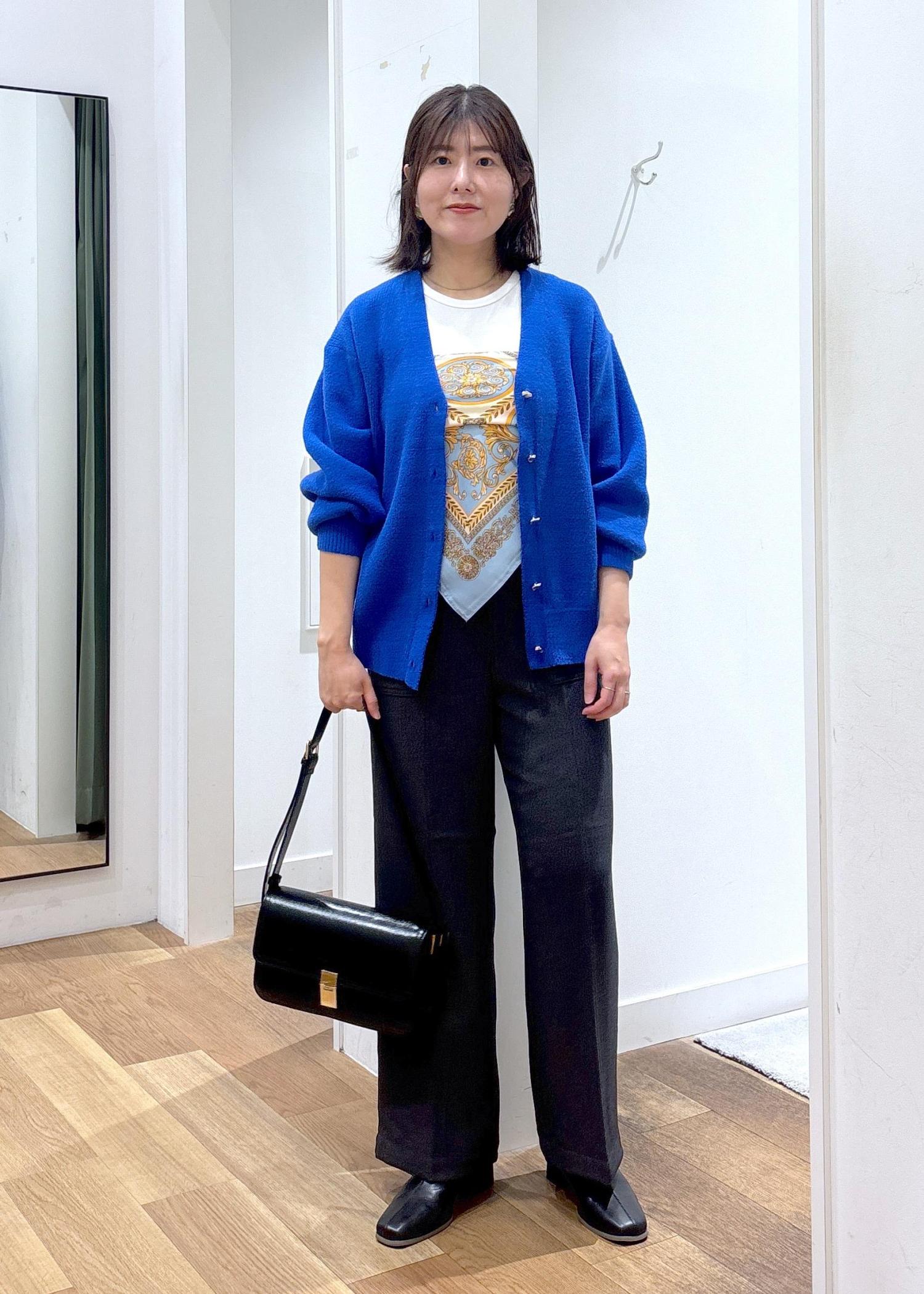 ゆったりとした身幅とお尻にかかるくらいの着丈で、色々なインナーで合わせていただきやすいです。 -