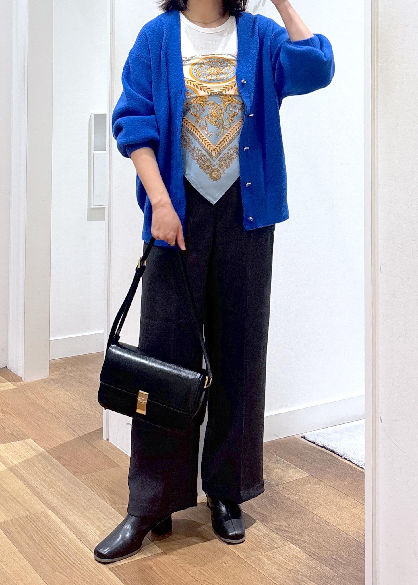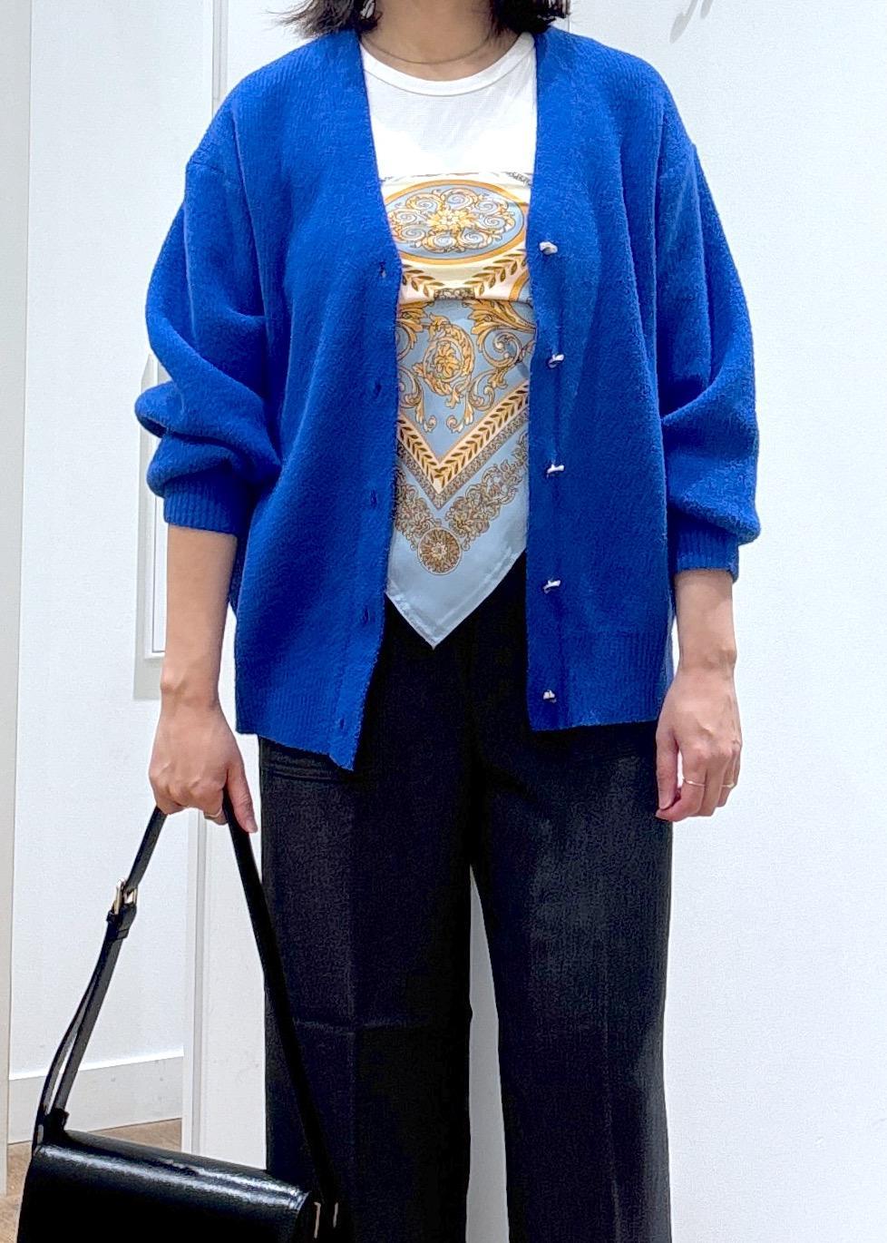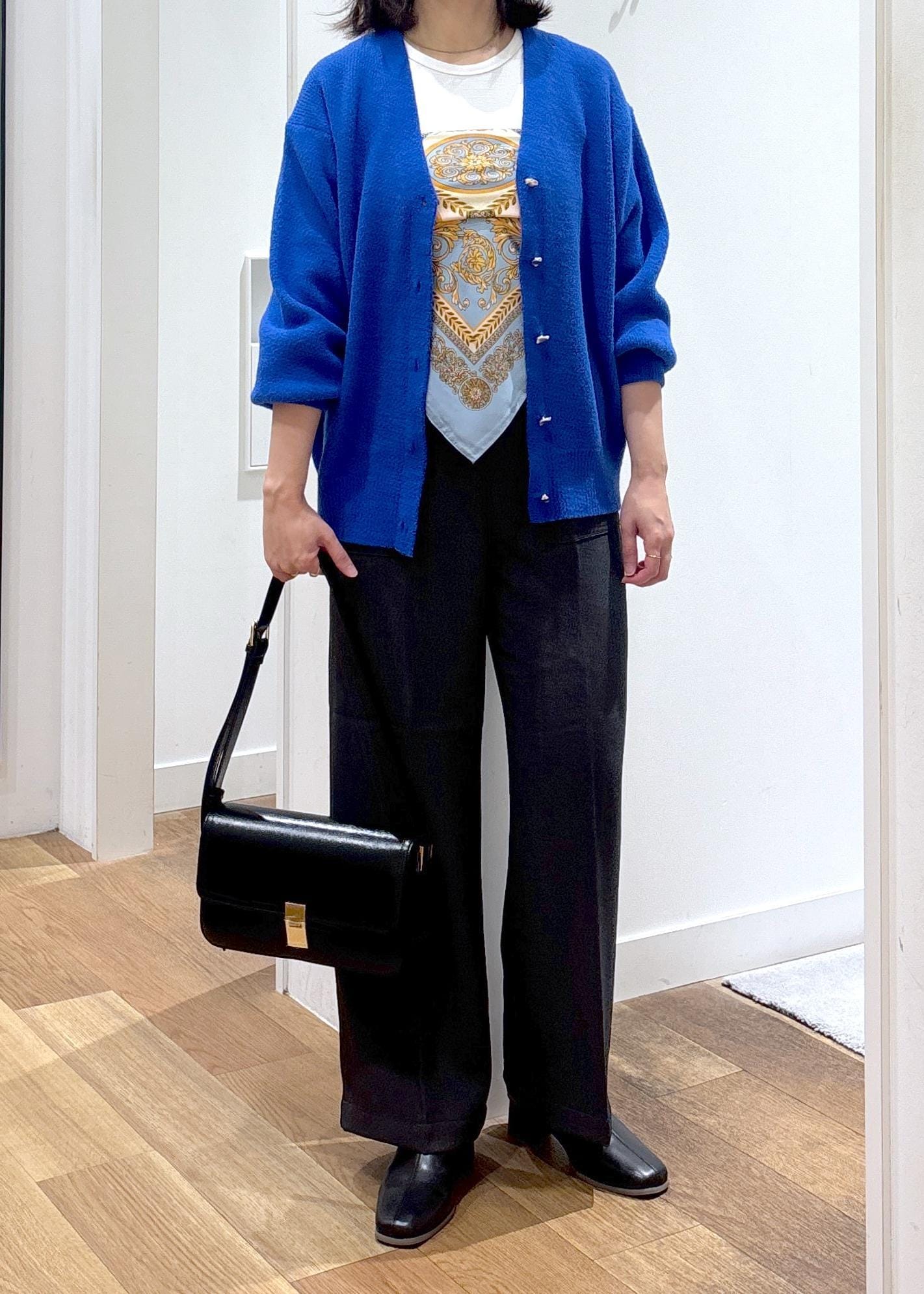 ゆったりとした身幅とお尻にかかるくらいの着丈で、色々なインナーで合わせていただきやすいです。 -