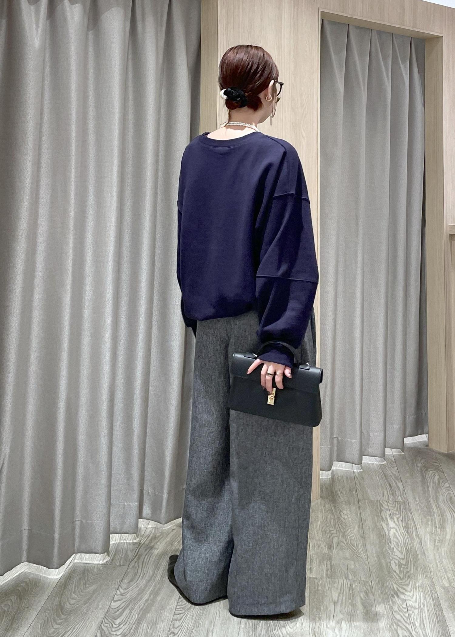 VISツイード2タックワイドパンツチャコール / M¥4,612レビュー身長159cm/Mサイズ着用、全体的にゆるっと履けるトレンド感あるサイズでした◎しっかり太めなワイドシルエットですがタック入りでスッキリ見え。2タックなのでウエスト周りはゆとりがあり、体型カバーも叶います!