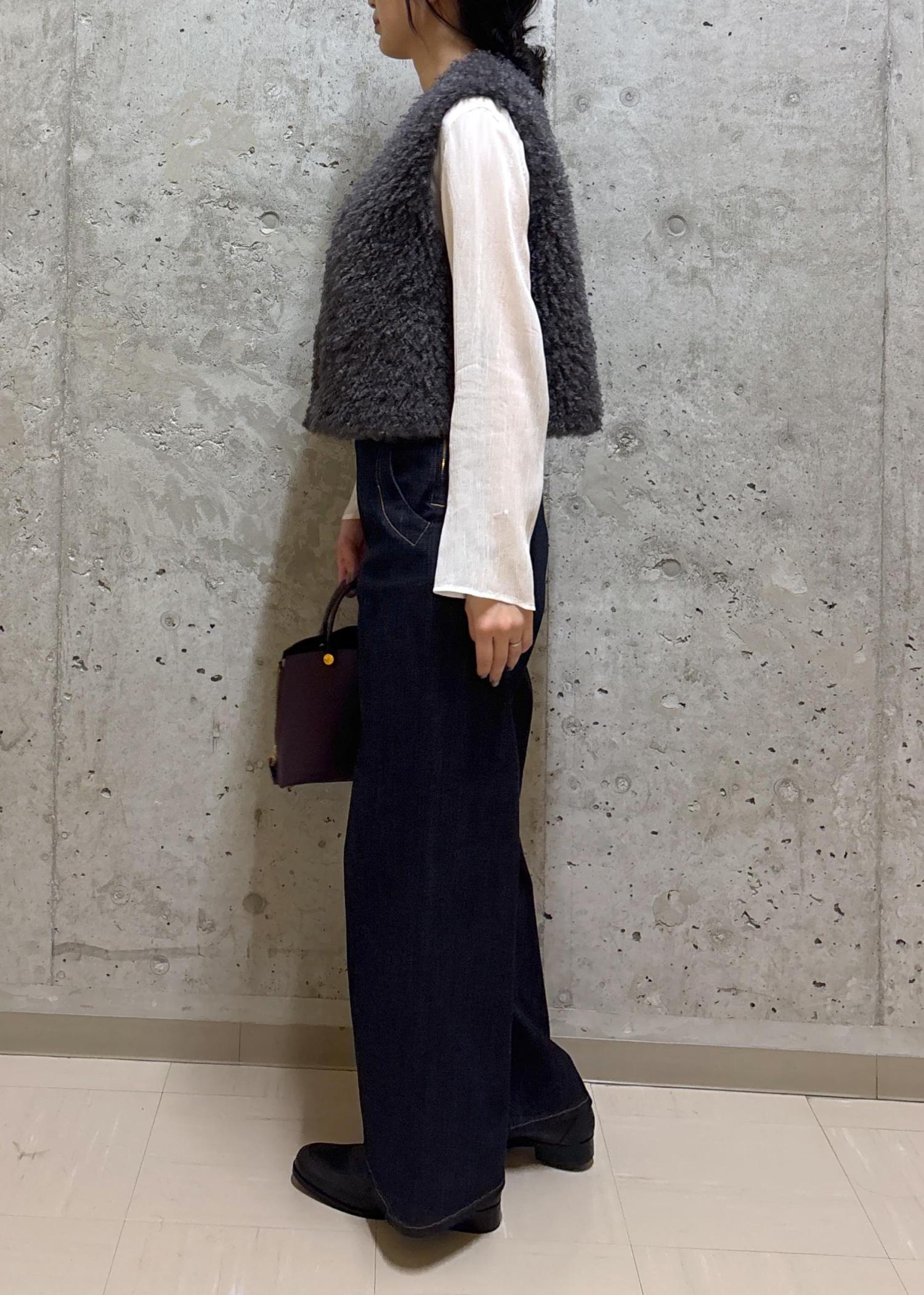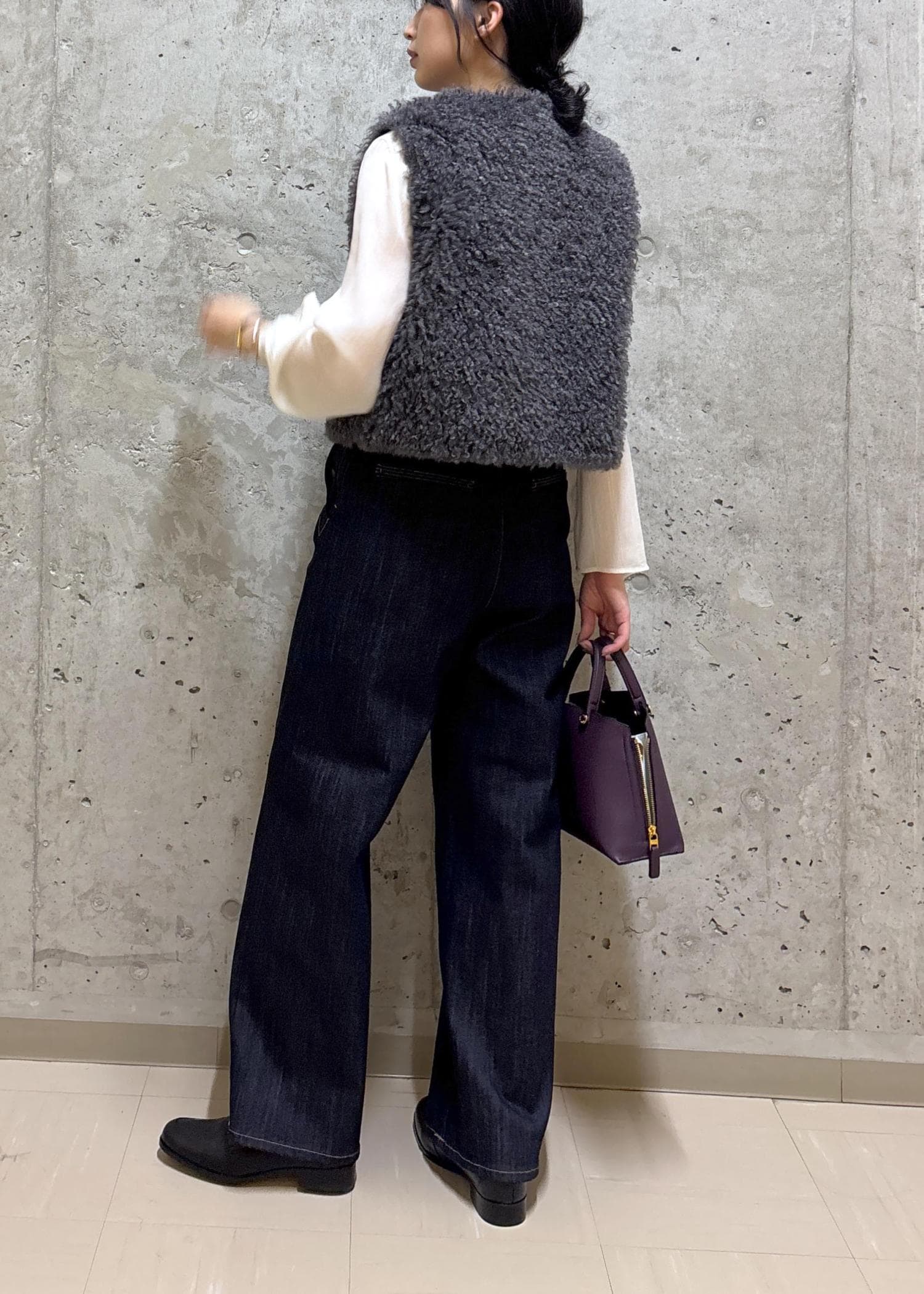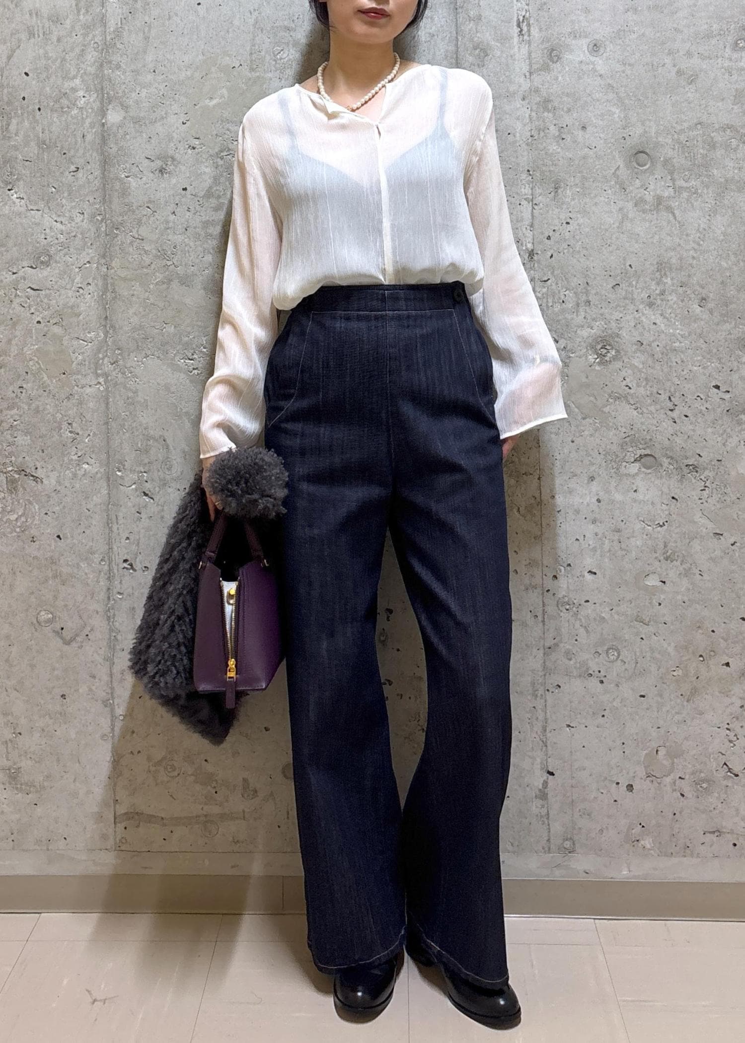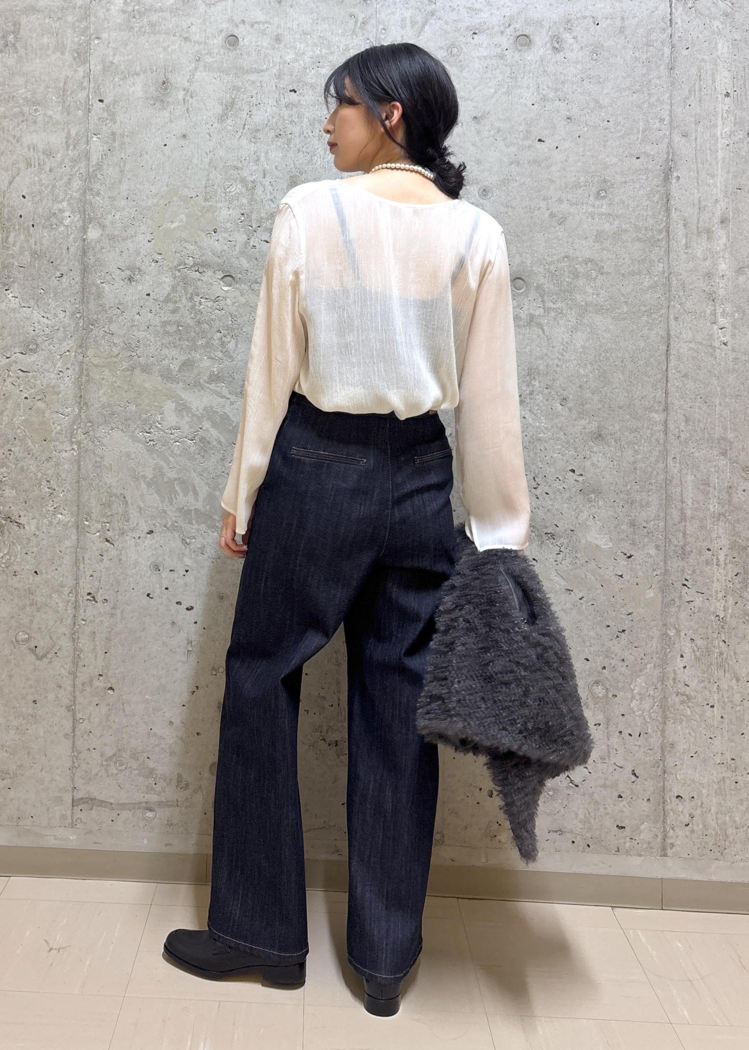 濃紺のワイドデニムできれいめカジュアルに仕上げました。