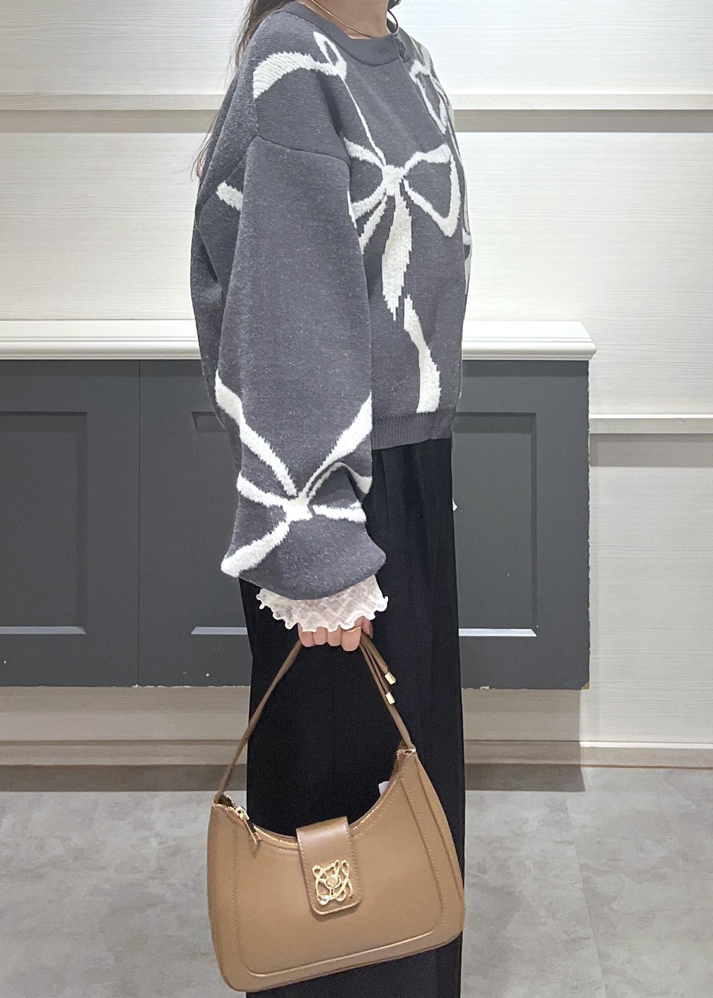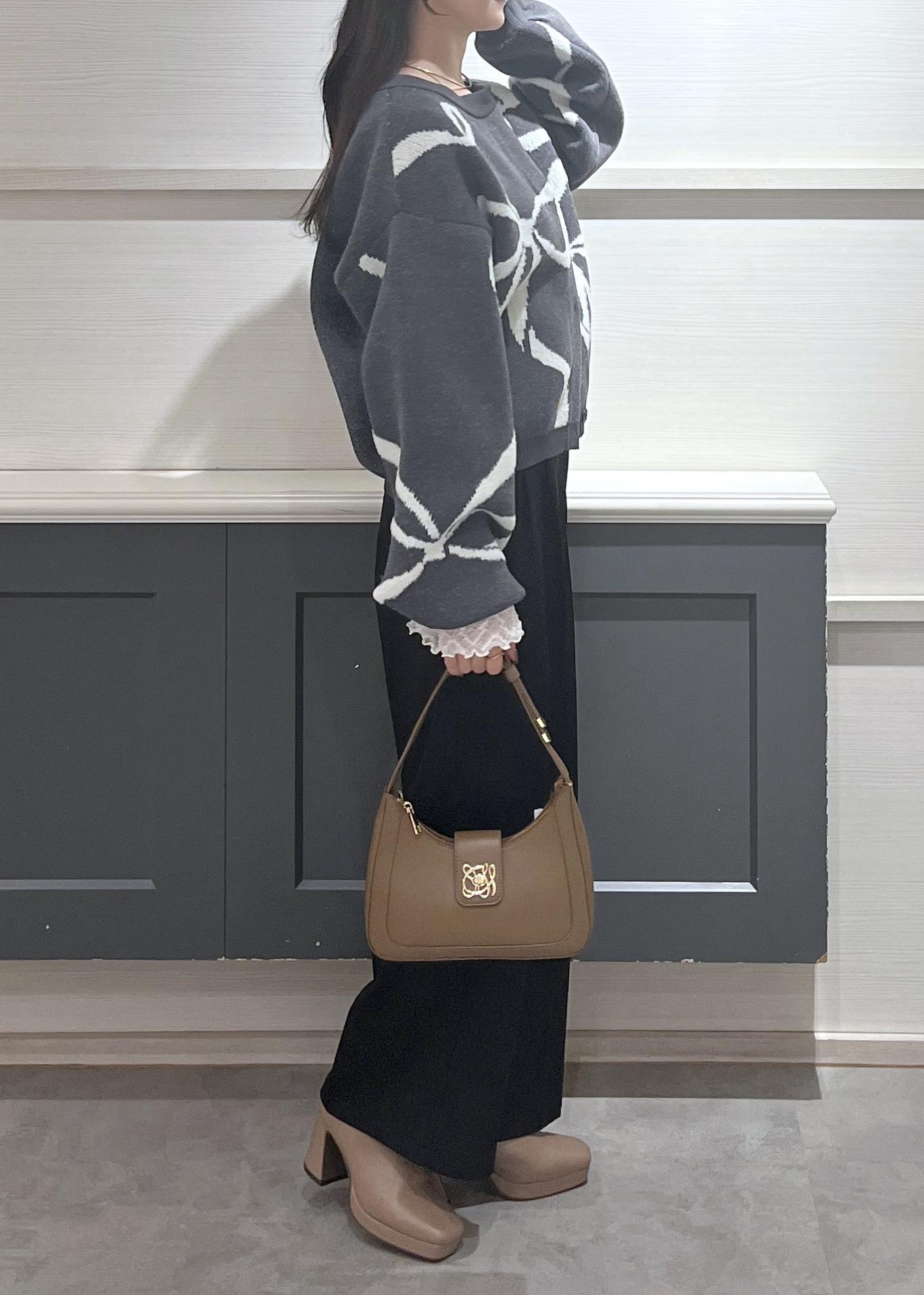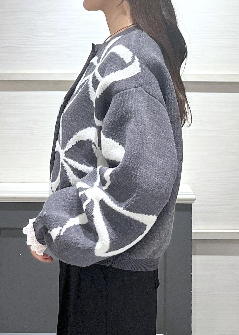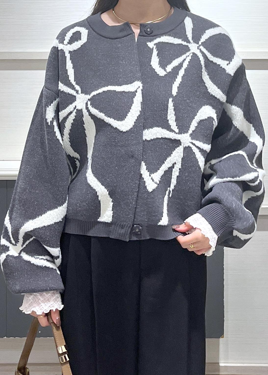 VISリボンモチーフジャガードカーディガン/イージーケアグレー / F¥6,919レビュー156cmでヒップにかかる丈感です。