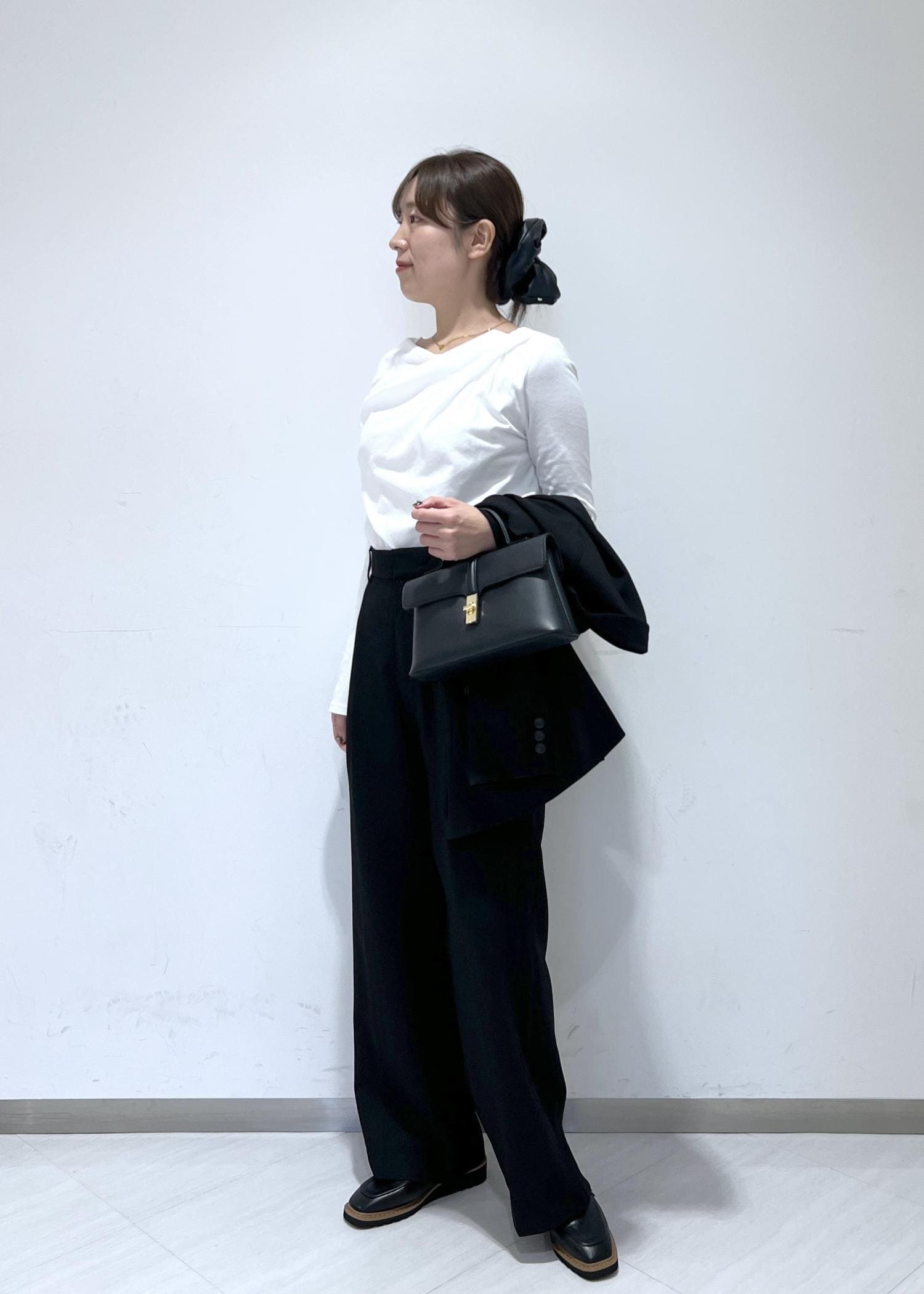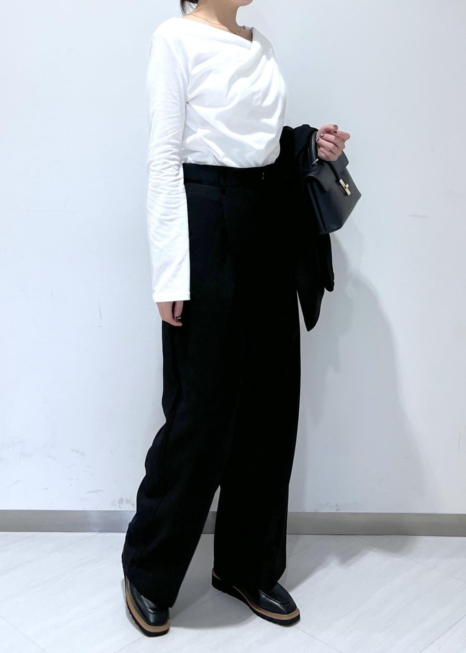 VIS【美easy】ウーリッシュワンタックワイドパンツ【セットアップ対応/洗える】ブラック / L¥6,589レビュー身長164cm、ゆったりめに履きたくLサイズを着用。靴のヒールは約4cmで、床に付かないくらいの丈感で履けました!